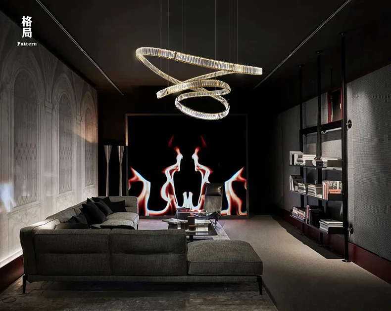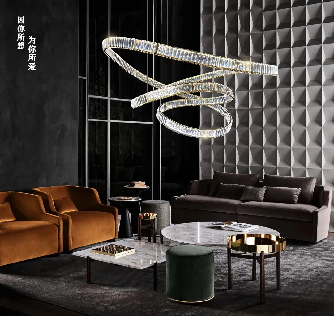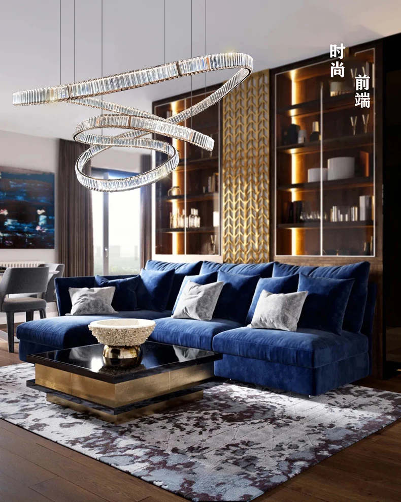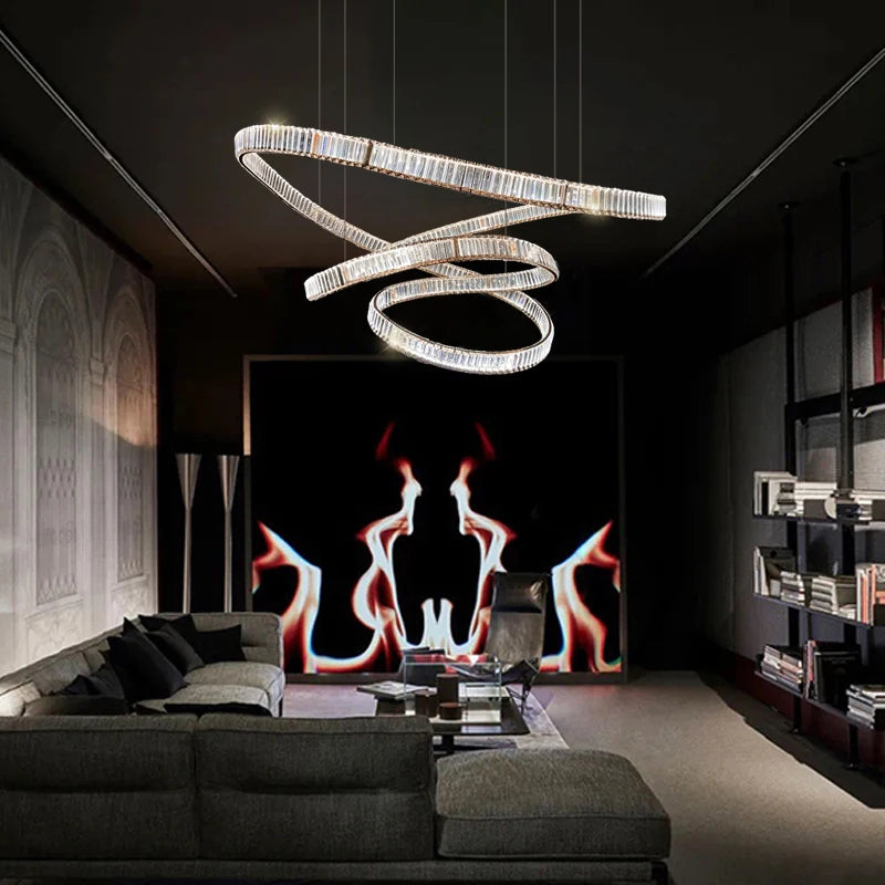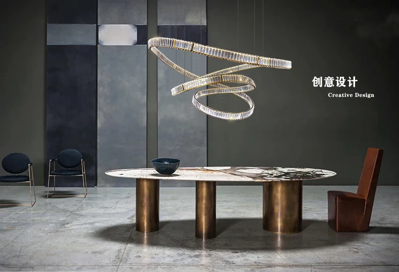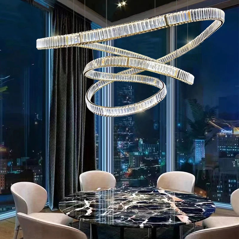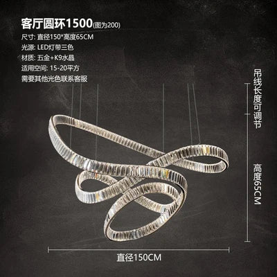 Postmodern light luxury crystal chandelier living room lamp simple atmosphere villa duplex creative design ring restaurant lamp