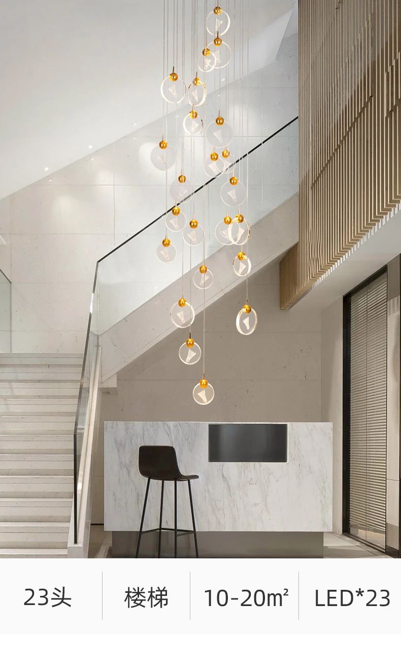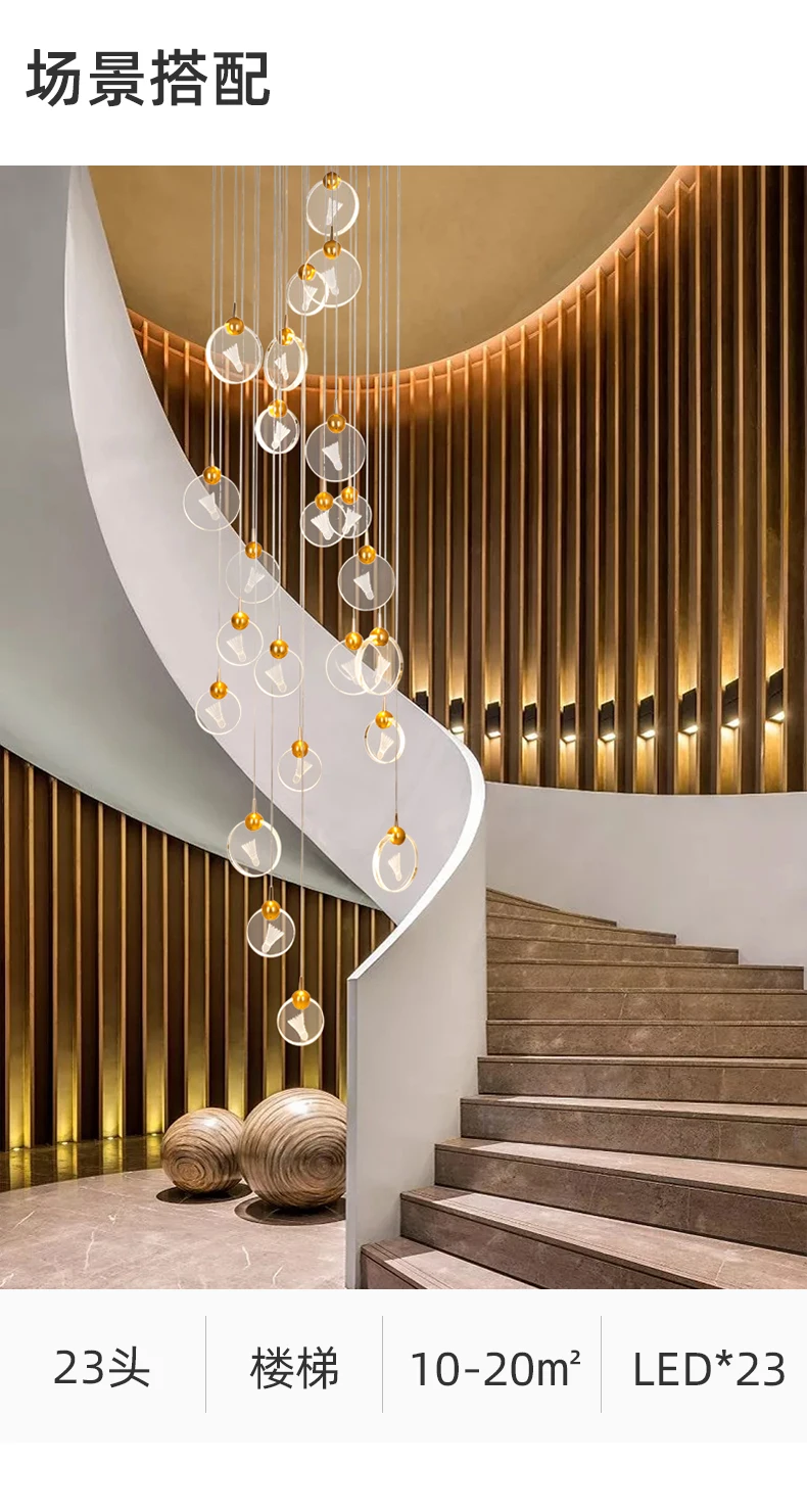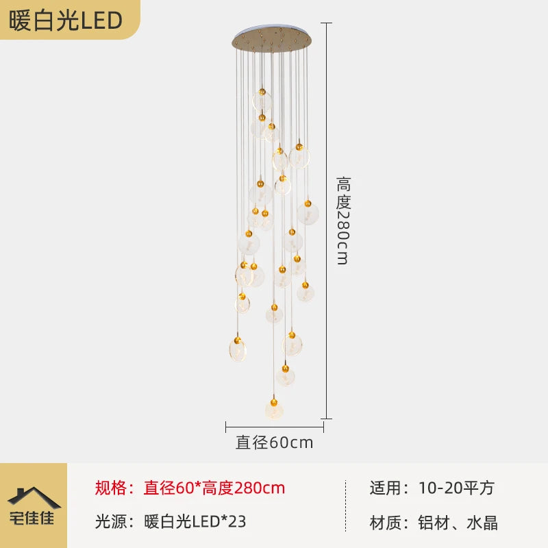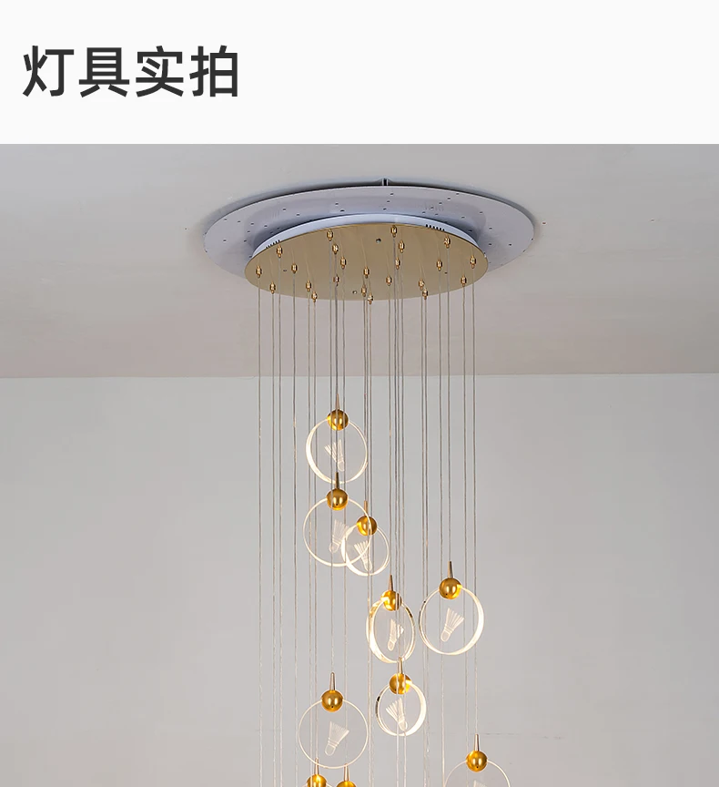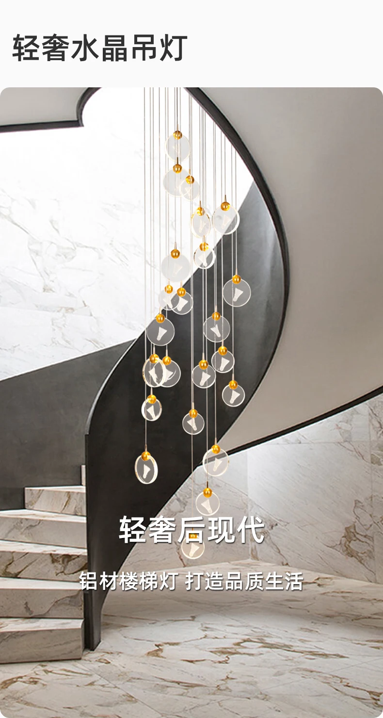 Postmodern light luxury crystal chandelier villa duplex building simple double-story spiral staircase long chandelier