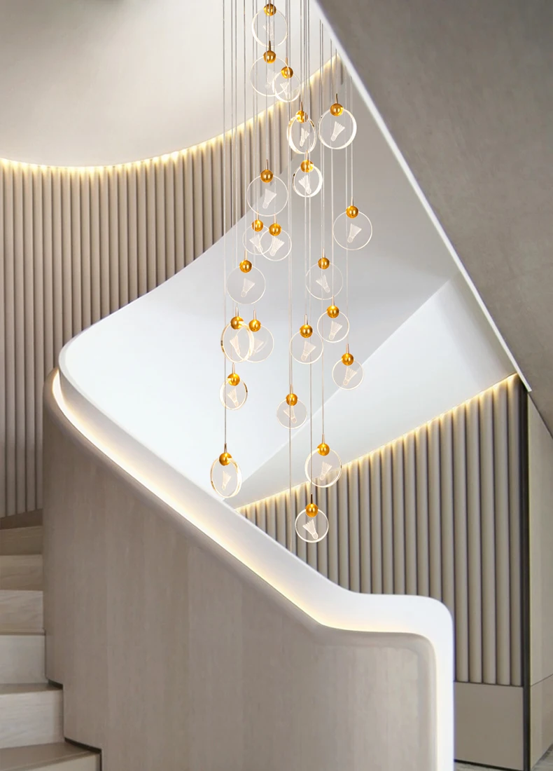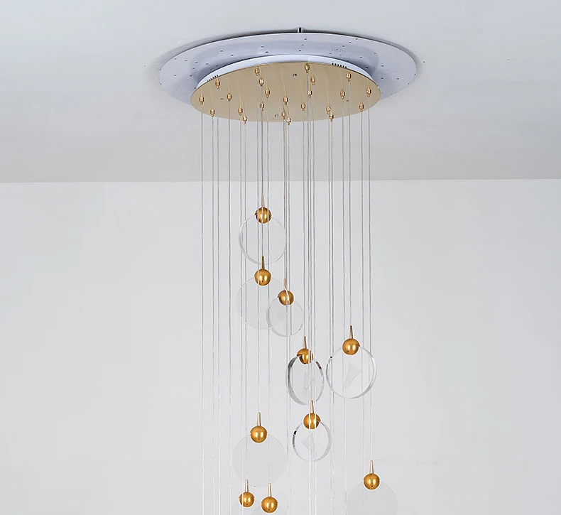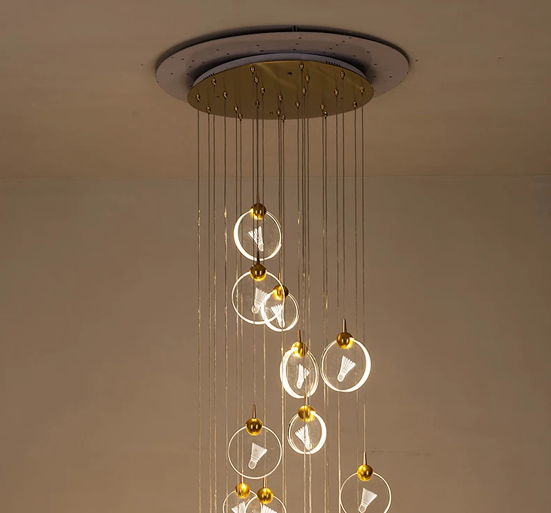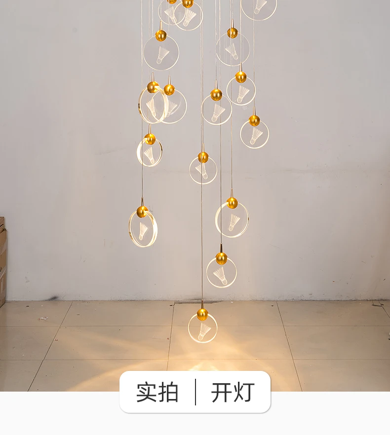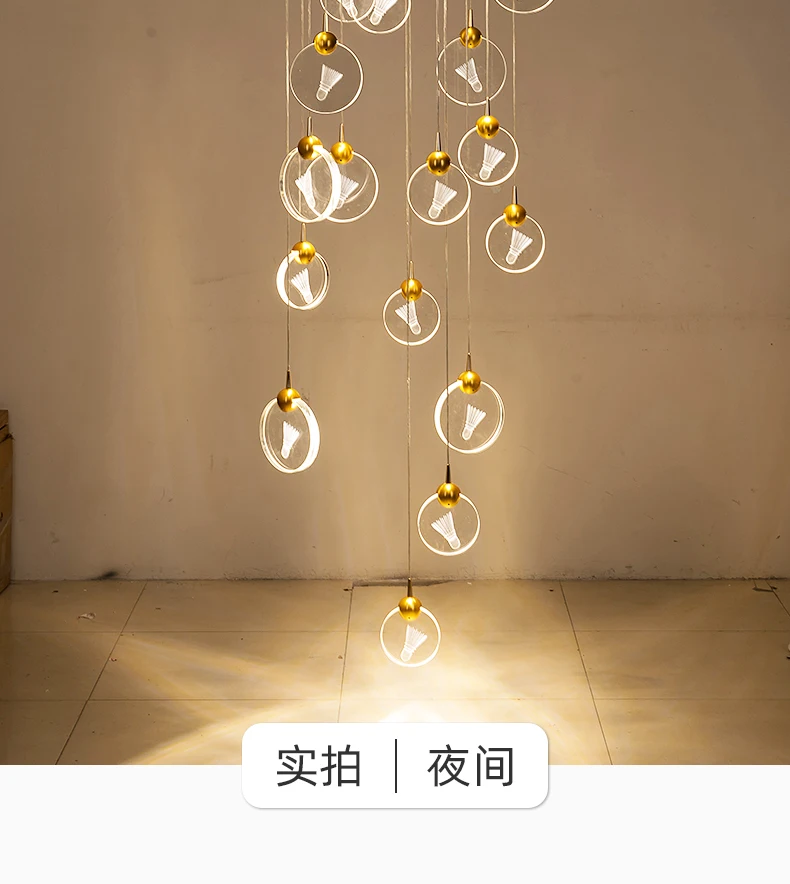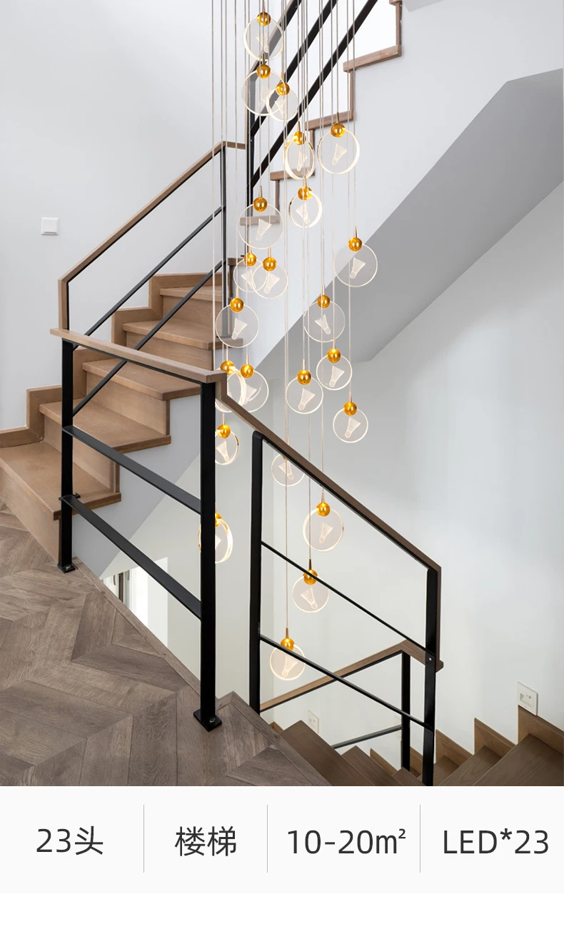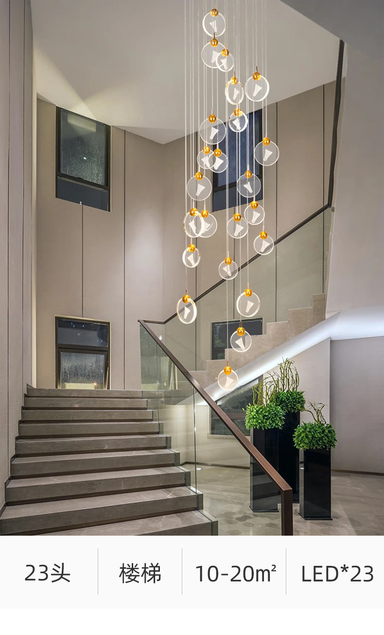 Postmodern light luxury crystal chandelier villa duplex building simple double-story spiral staircase long chandelier