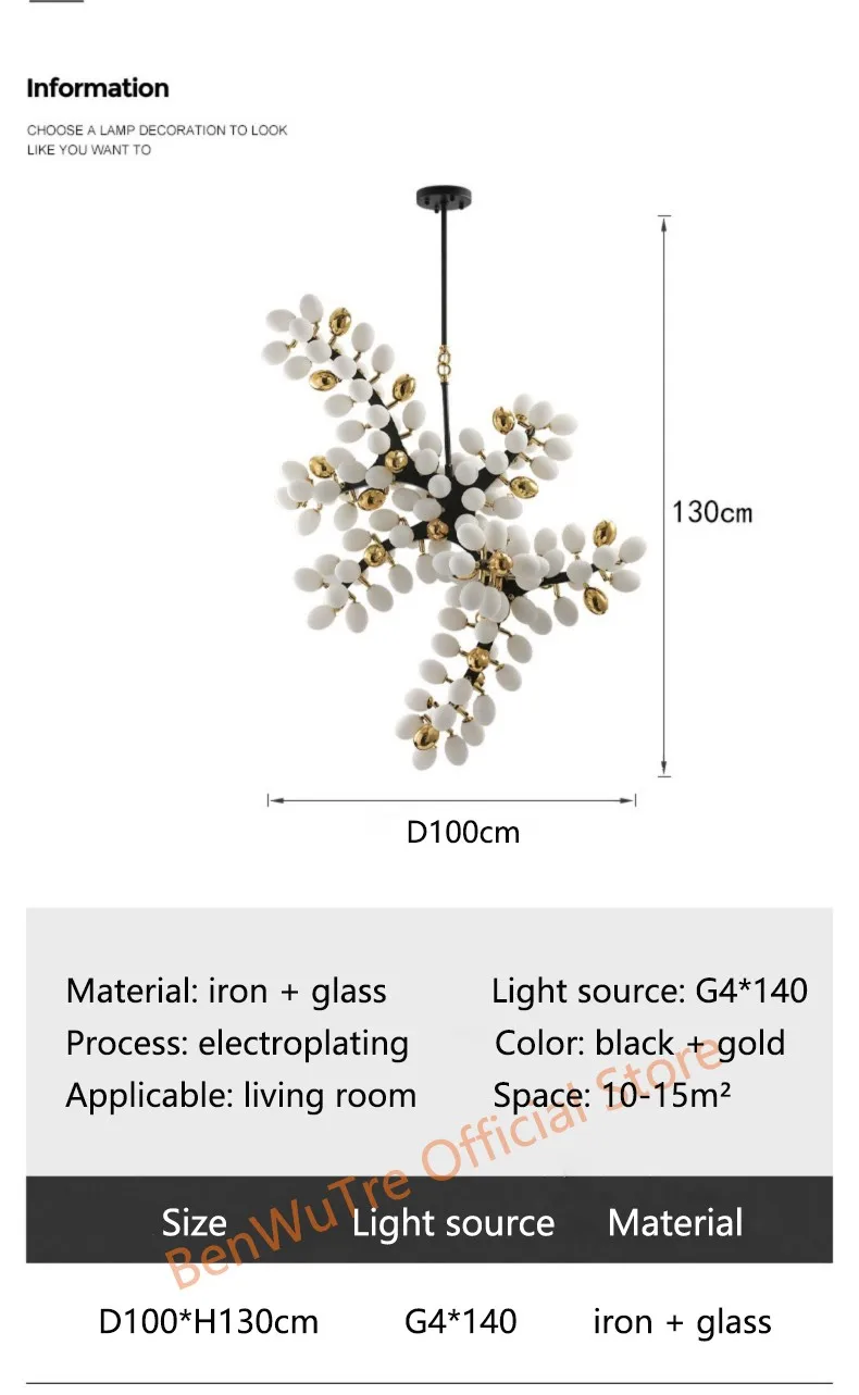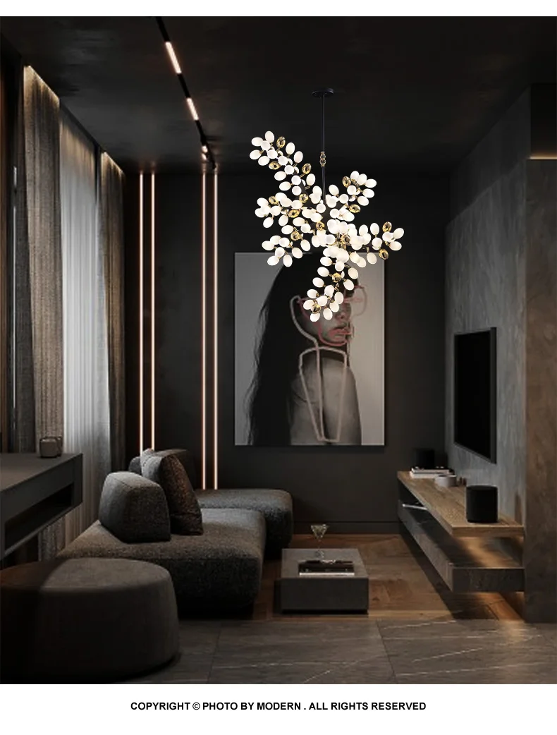 Postmodern Luxury LED Chandelier lighting Living room Grape String Large Hanging Lamp Lobby Villa Home Deco Glass Fixtures G4
