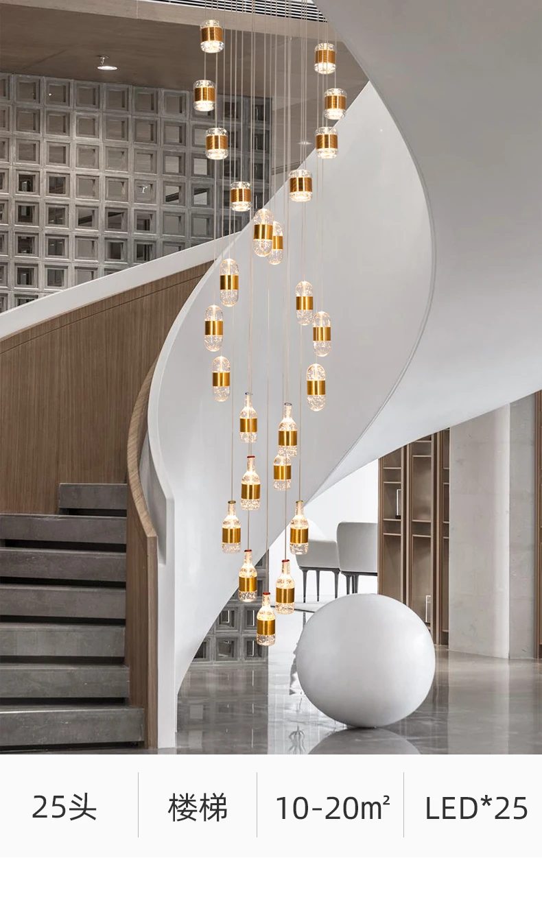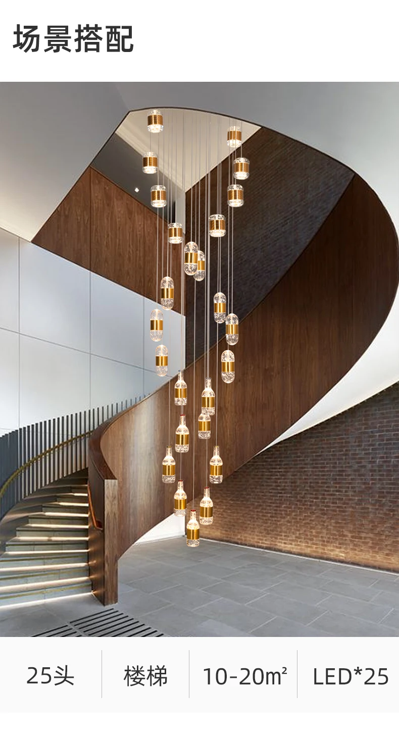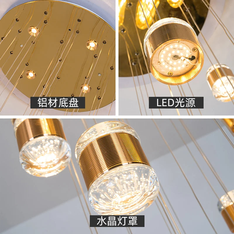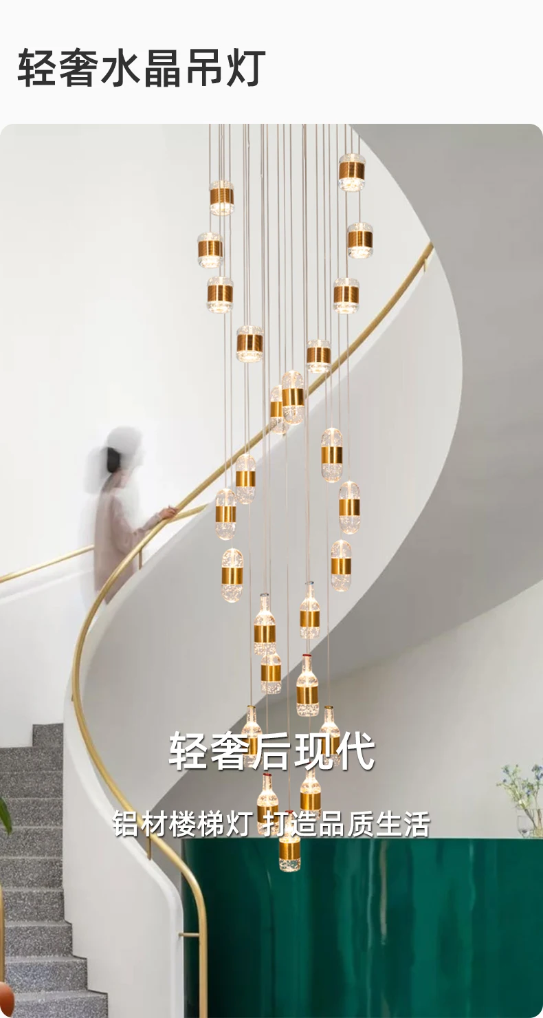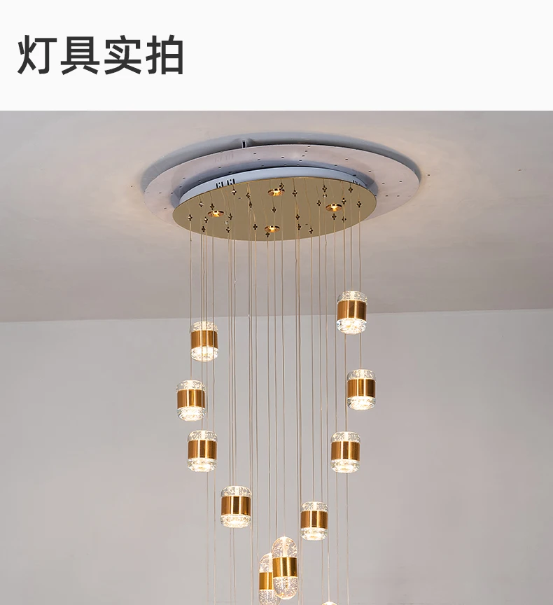 Postmodern minimalist light luxury villa duplex building chandelier Nordic crystal spiral staircase light