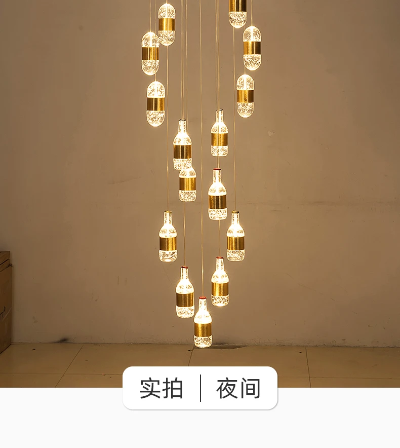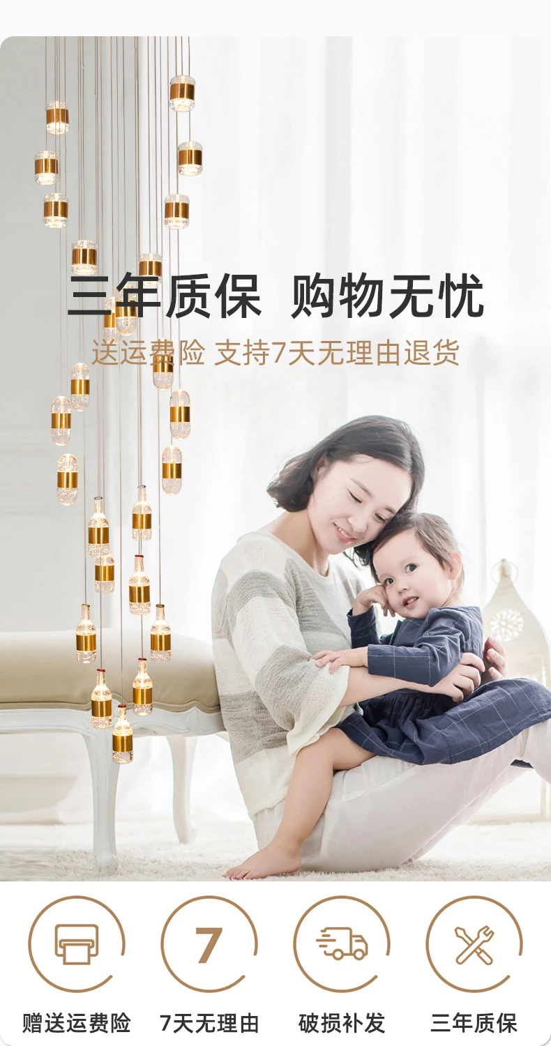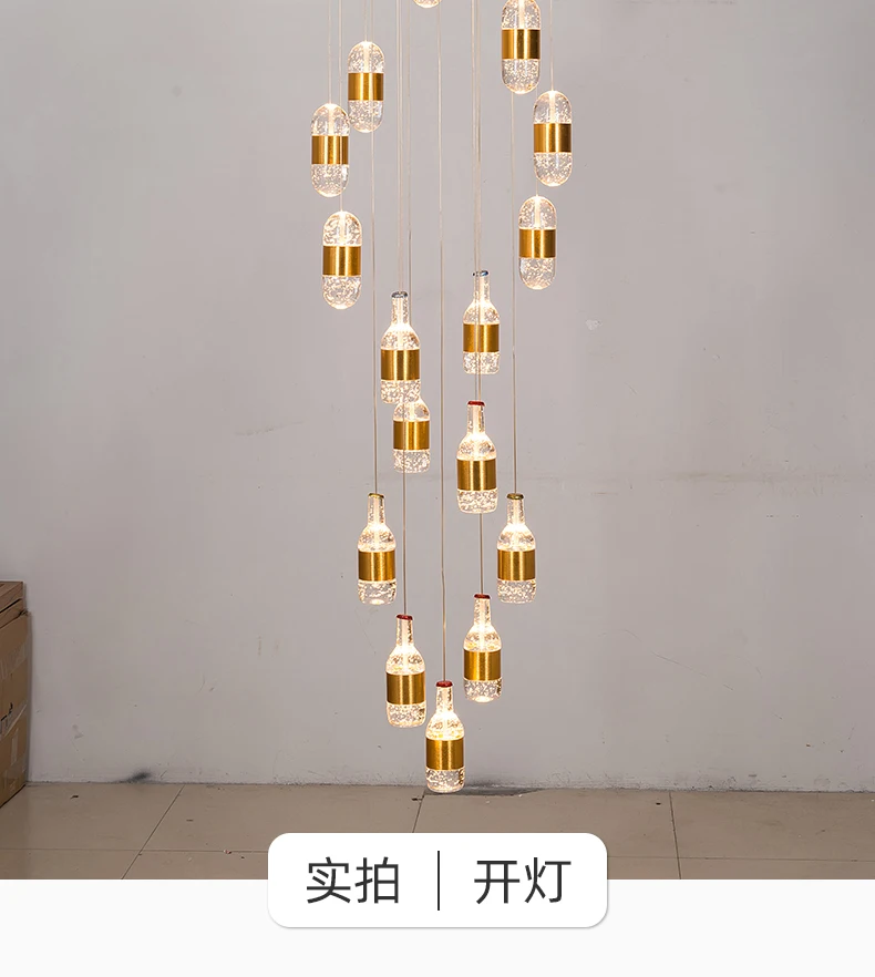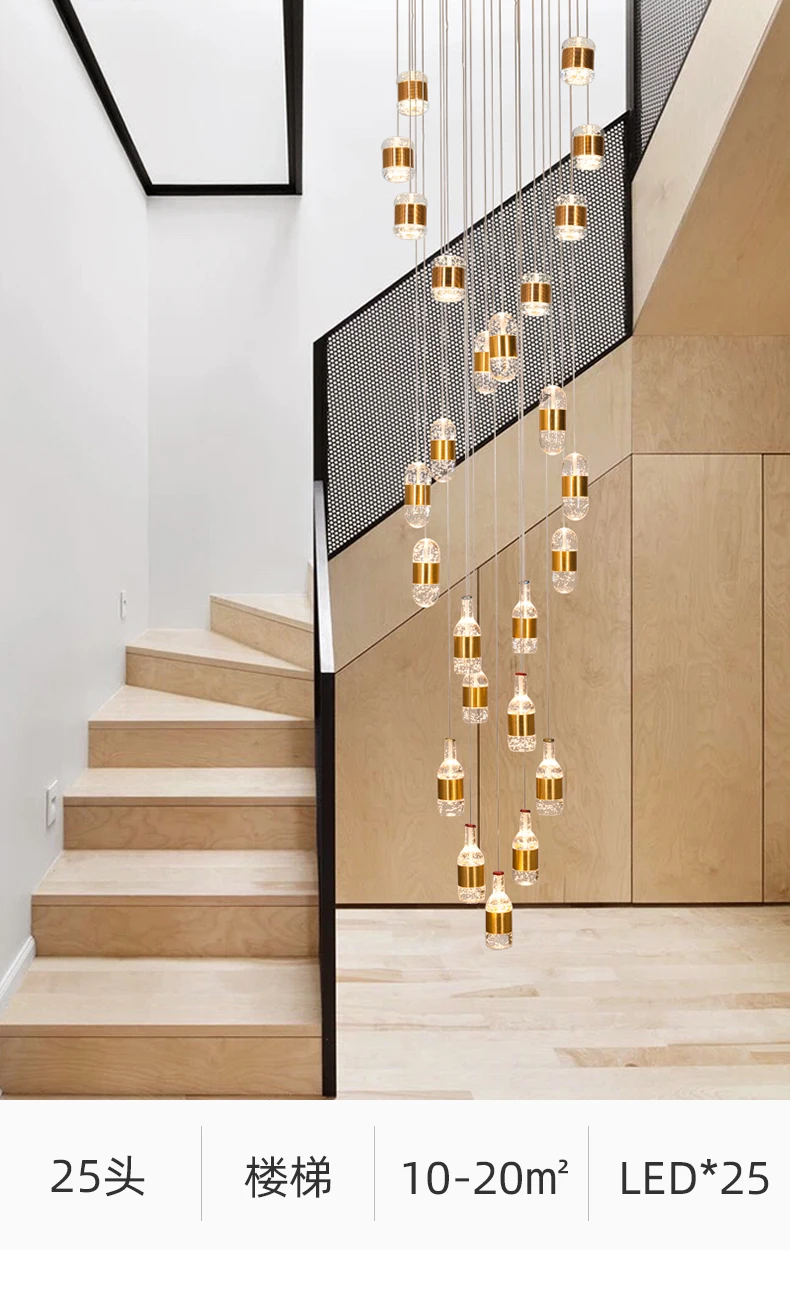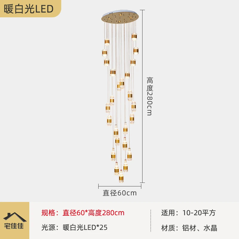 Postmodern minimalist light luxury villa duplex building chandelier Nordic crystal spiral staircase light