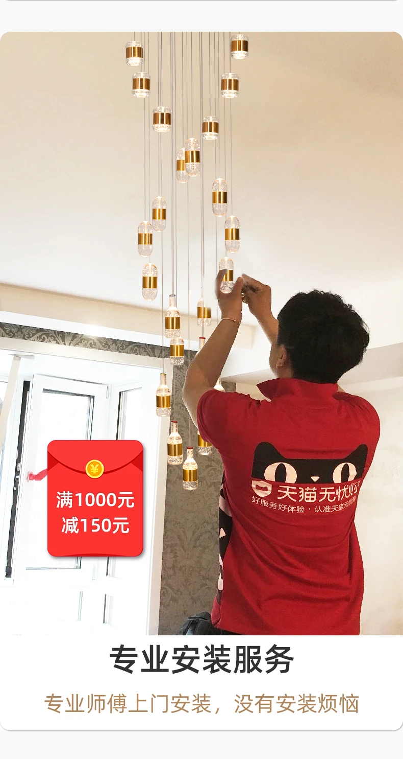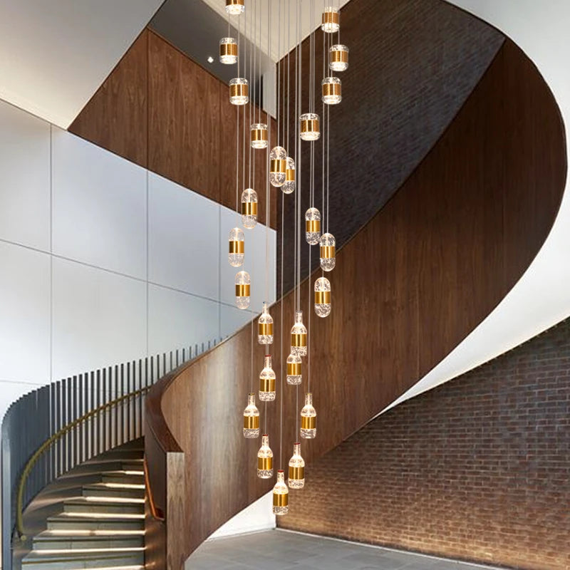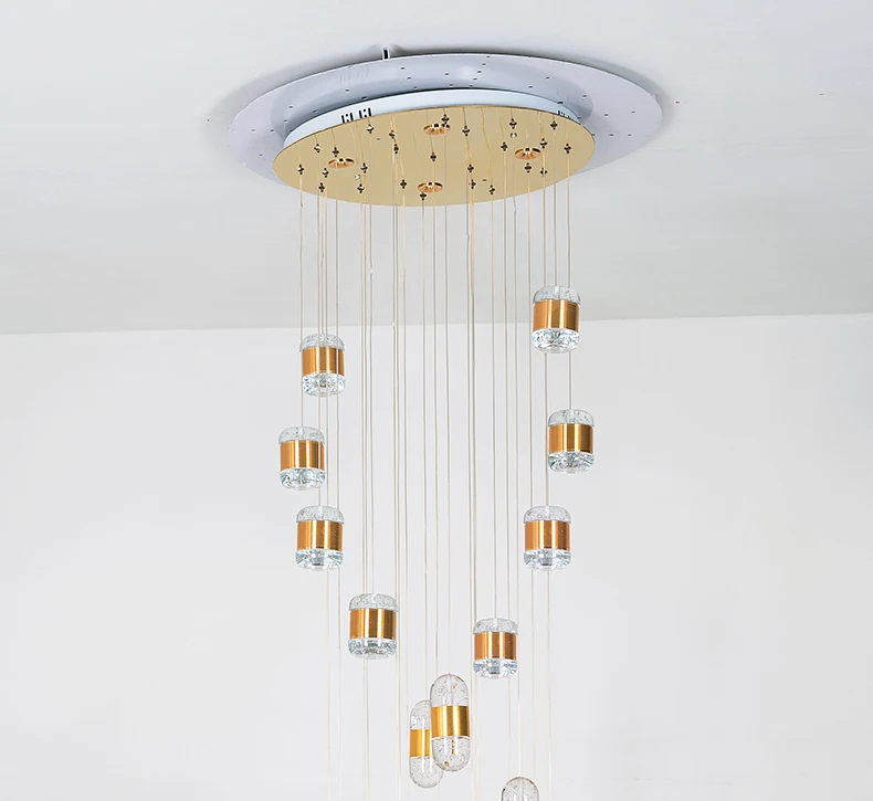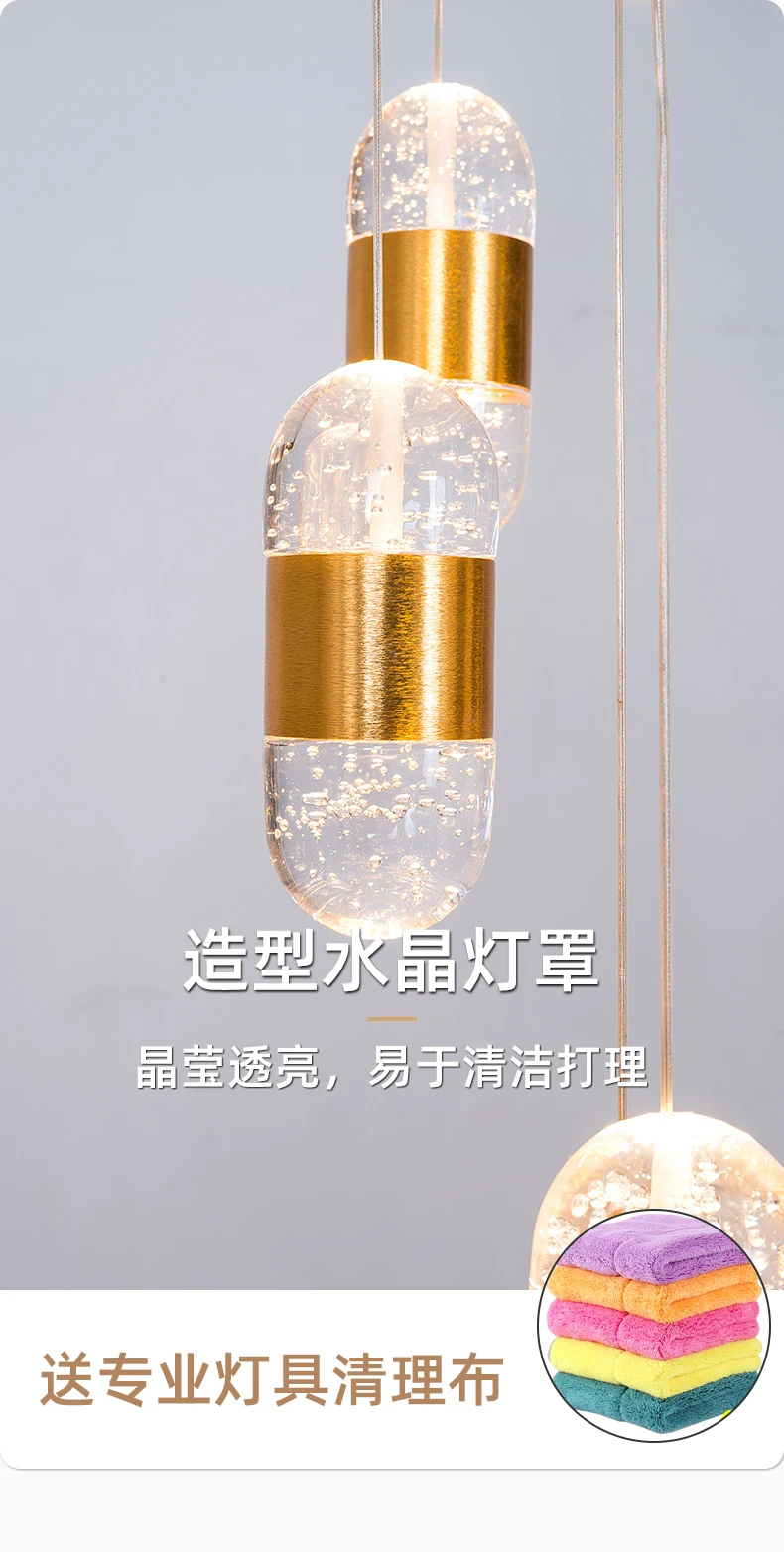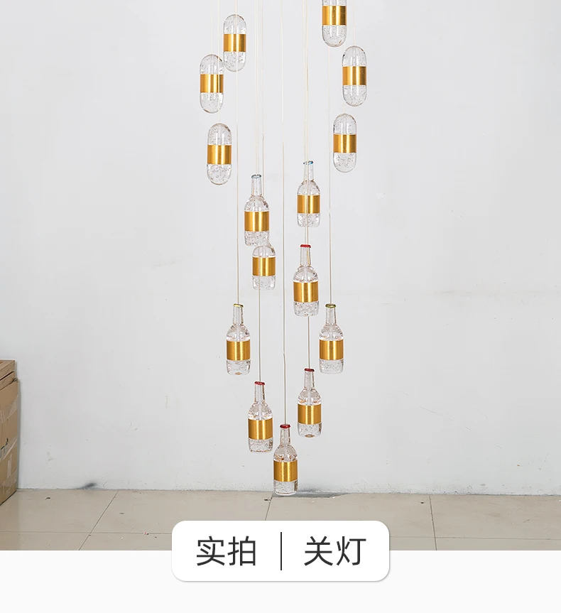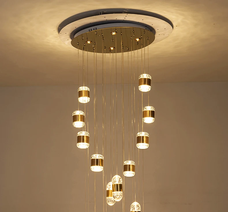Postmodern minimalist light luxury villa duplex building chandelier Nordic crystal spiral staircase light