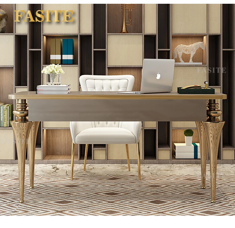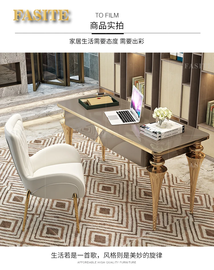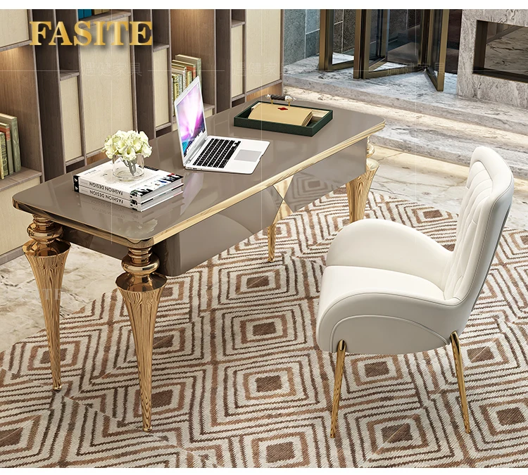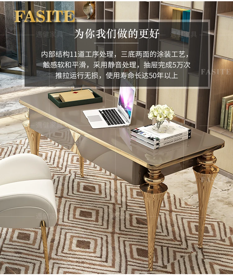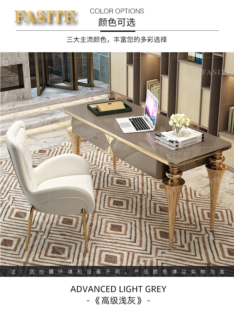 Postmodern minimalist office desk, stainless steel painted computer desk, consulting desk