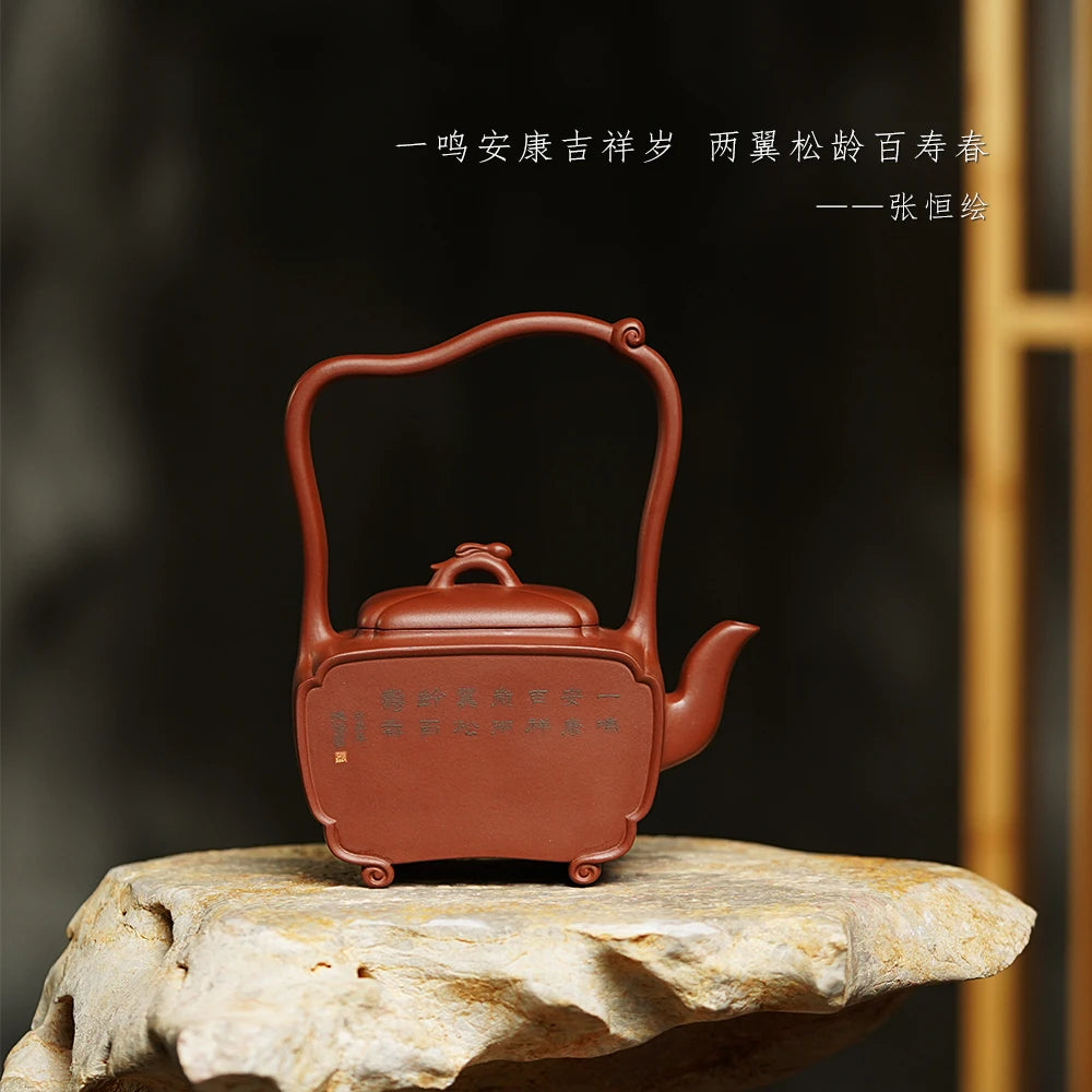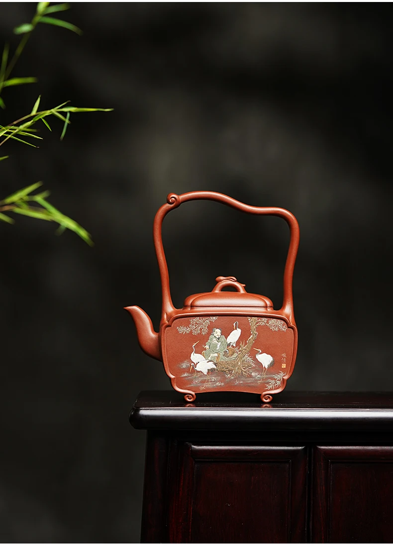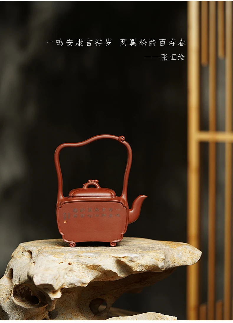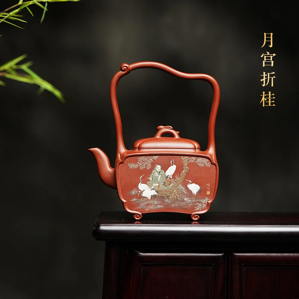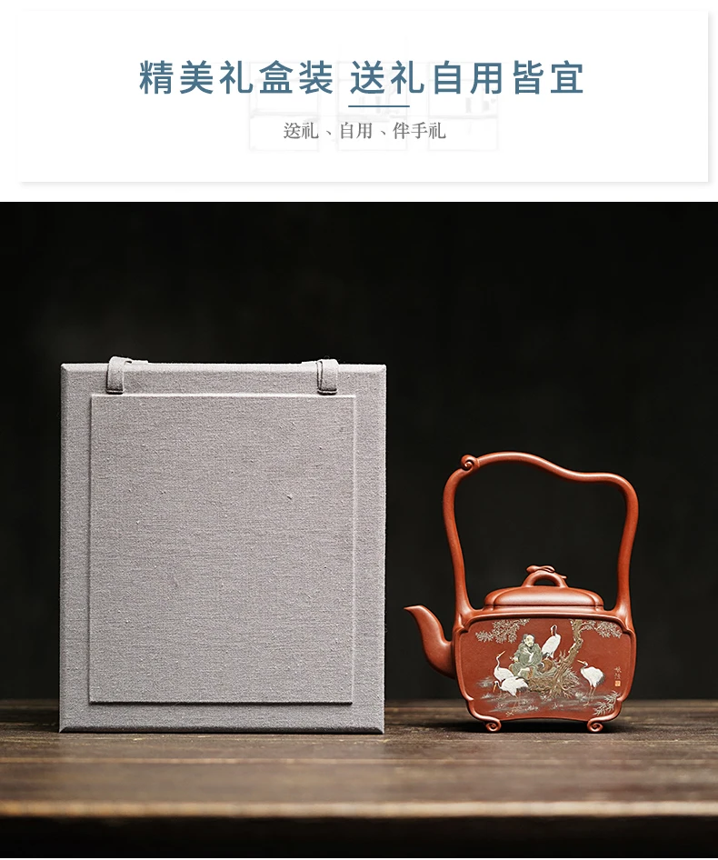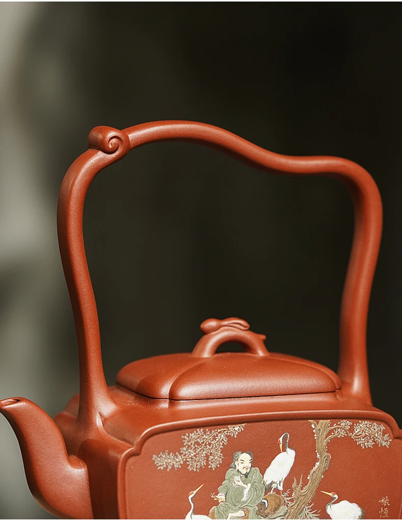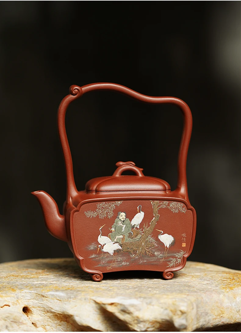 |pot famous national worker fan Qianwen pure manual Zhang Heng mud painted raw ore bottom trough lifting beam teapot
