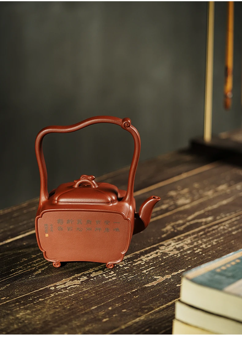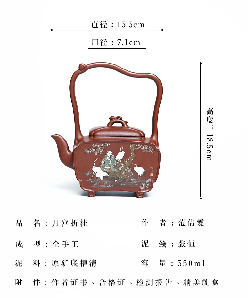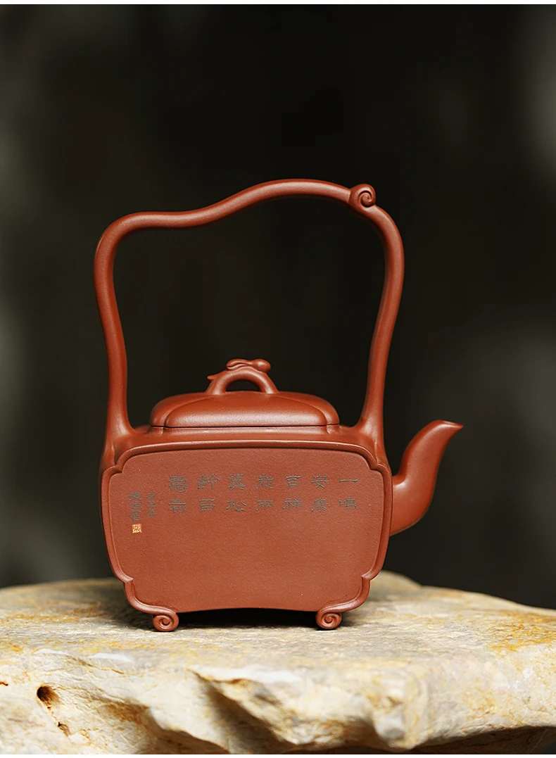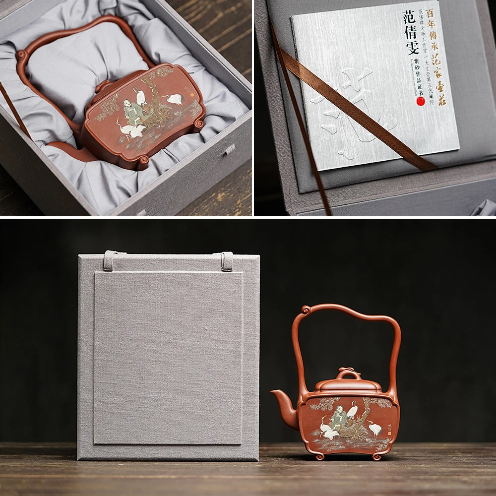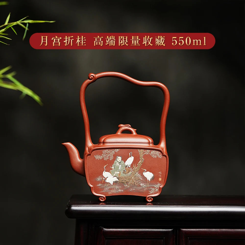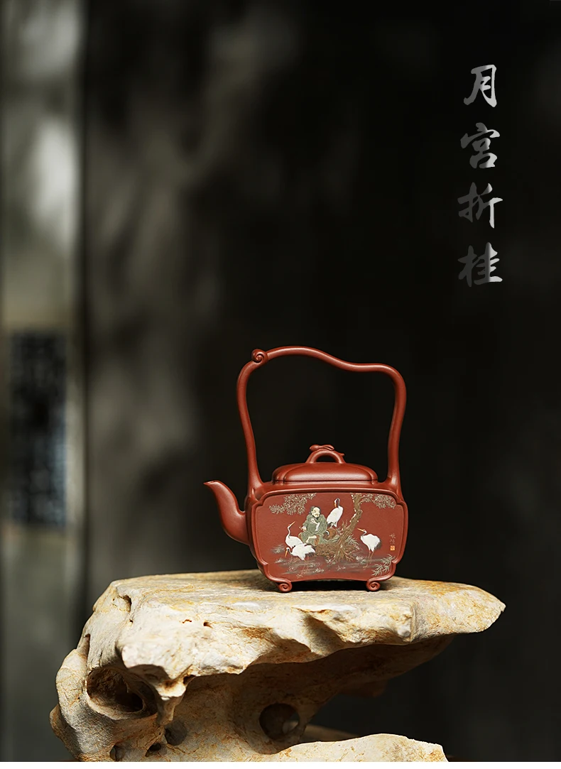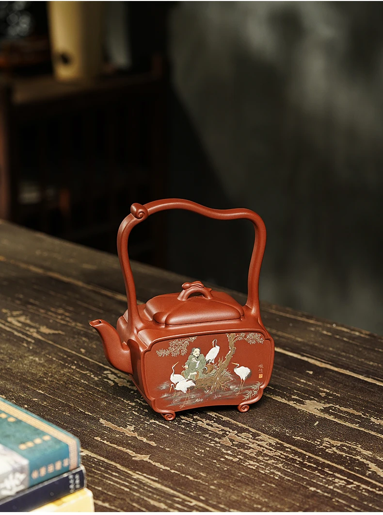 |pot famous national worker fan Qianwen pure manual Zhang Heng mud painted raw ore bottom trough lifting beam teapot