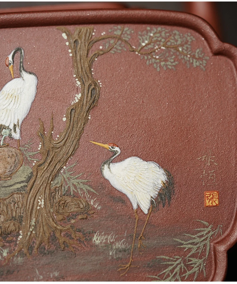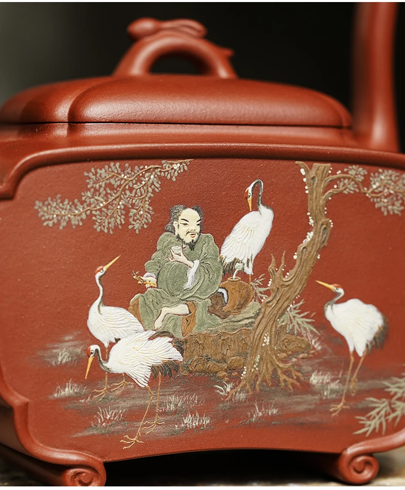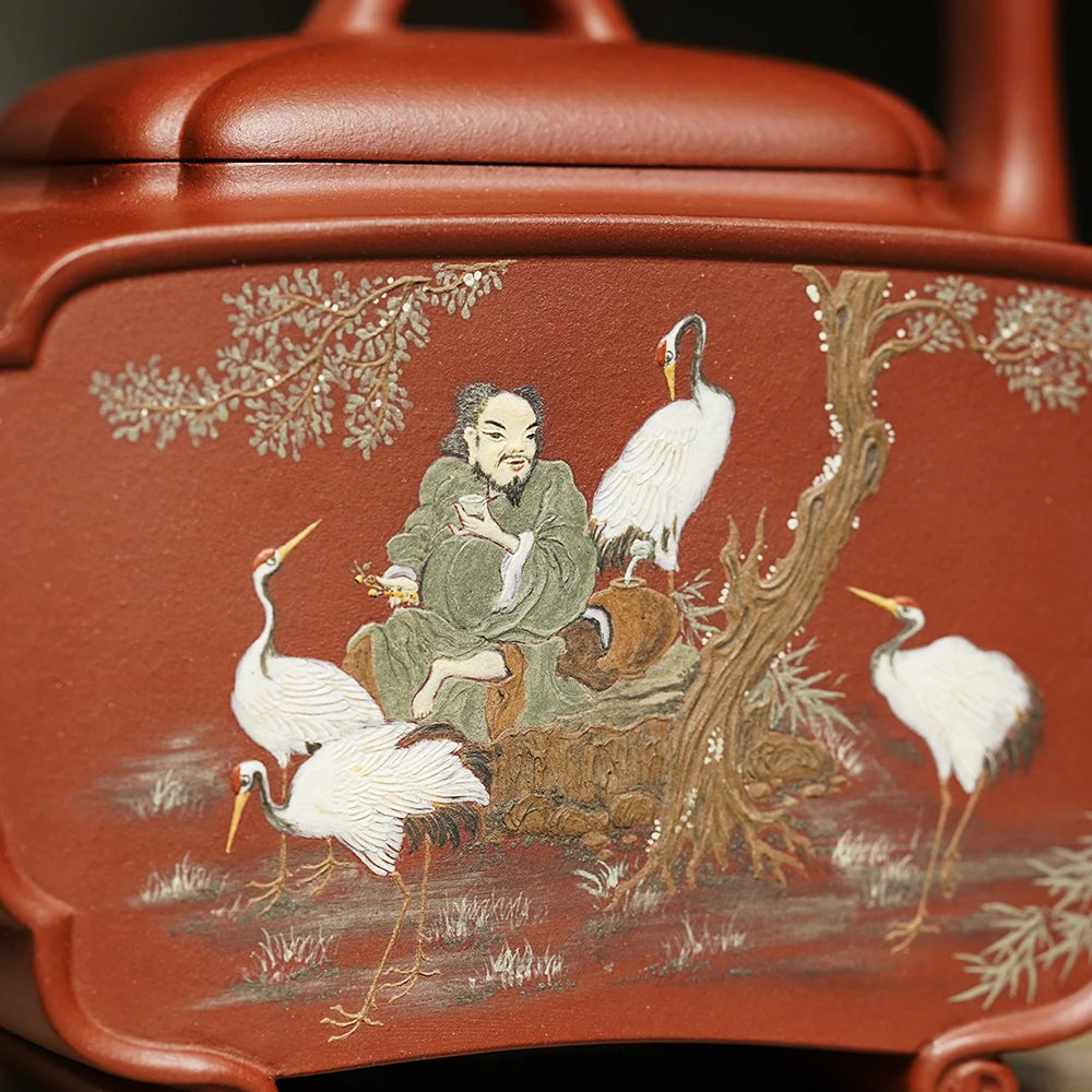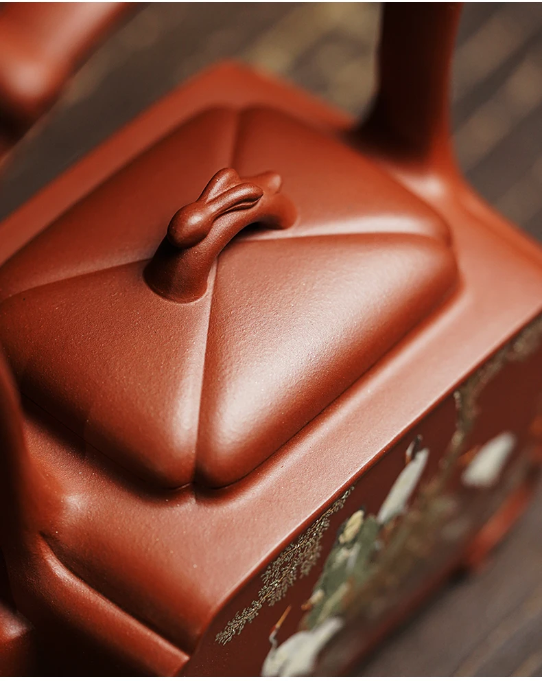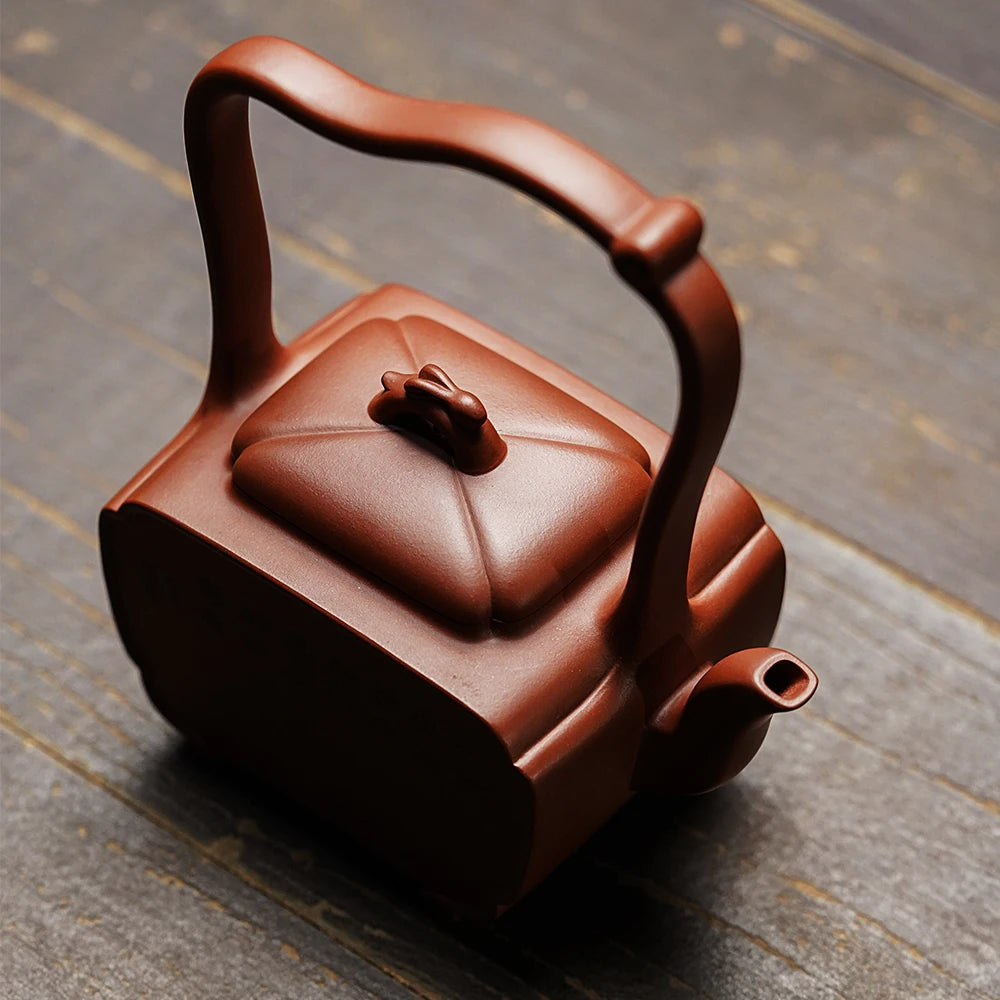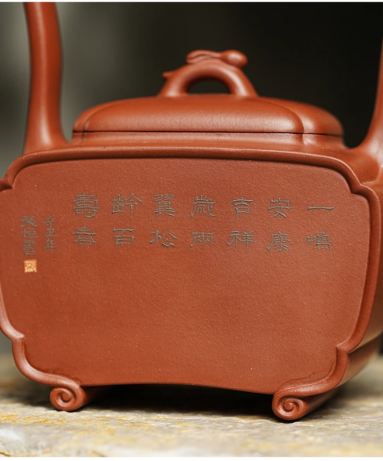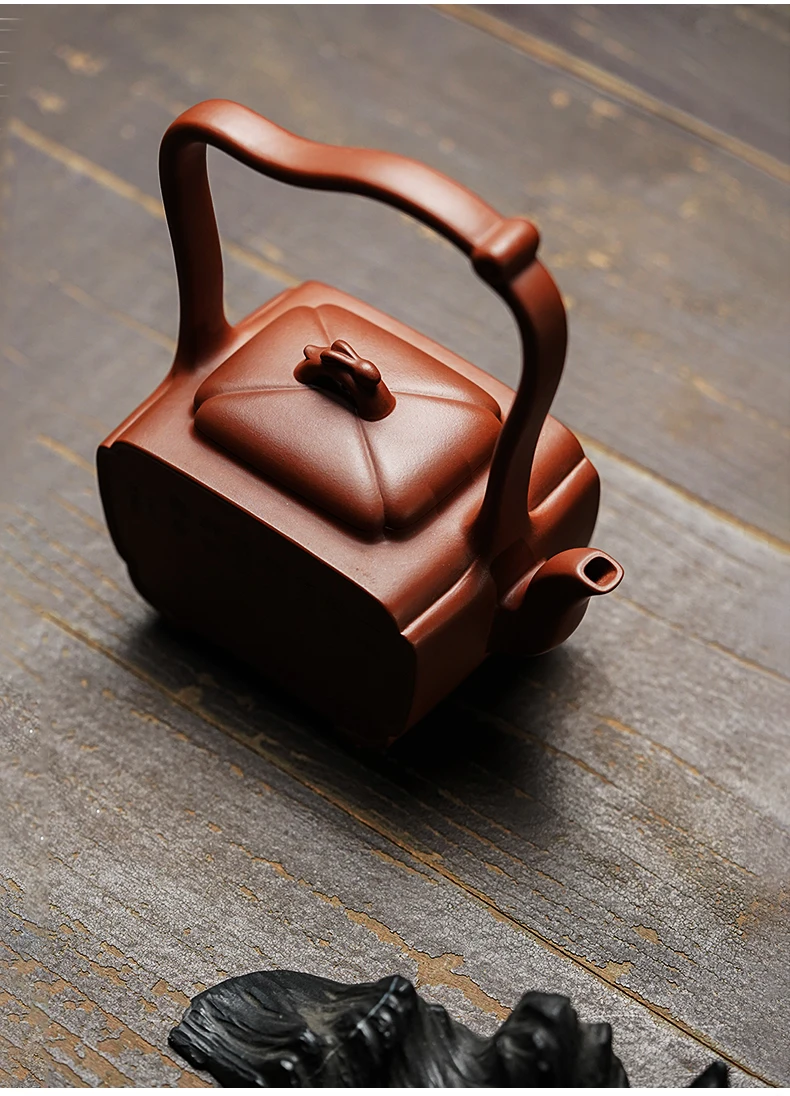 |pot famous national worker fan Qianwen pure manual Zhang Heng mud painted raw ore bottom trough lifting beam teapot