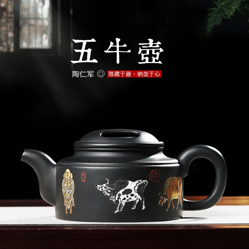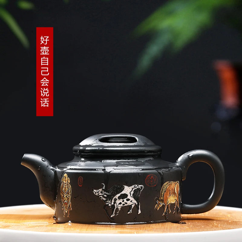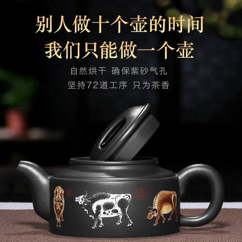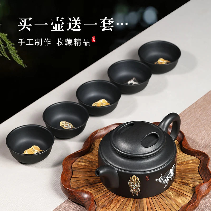 |pot Mingxiang purple clay pot Yixing famous family pure handmade raw ore black clay Wuniu pot Kung Fu Teapot Tea Set