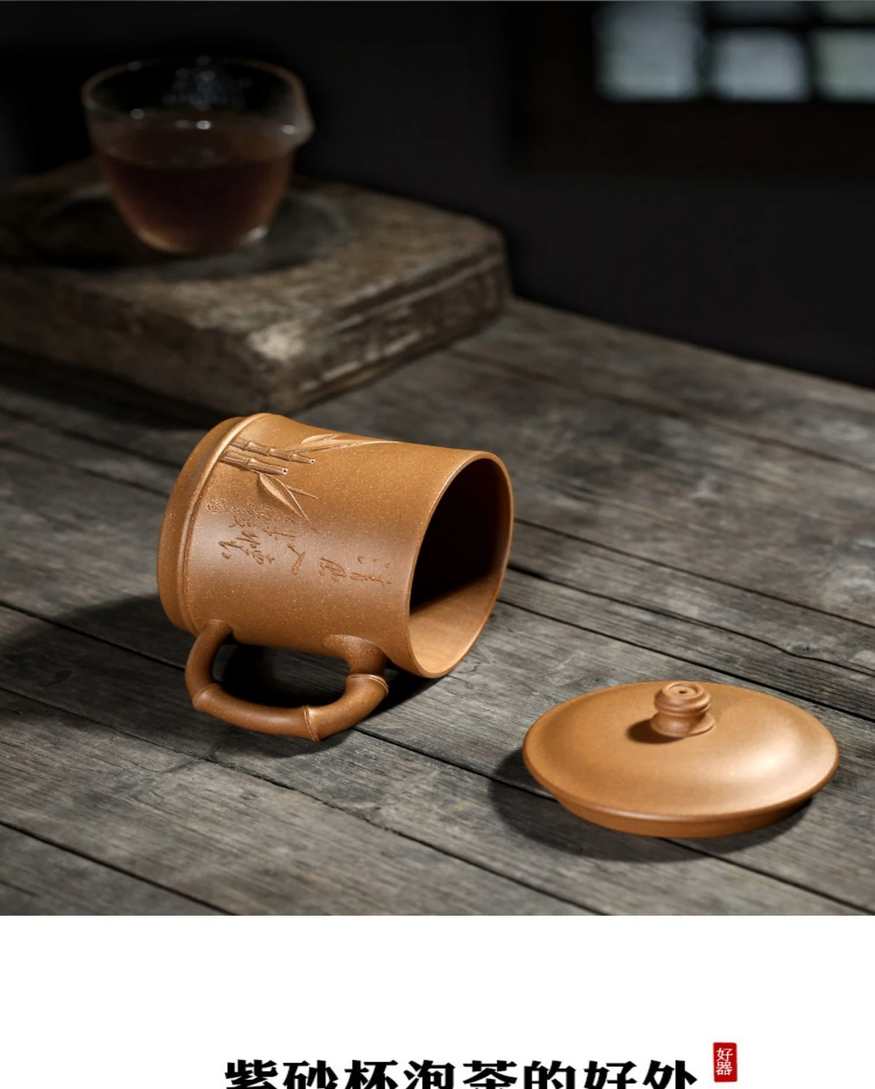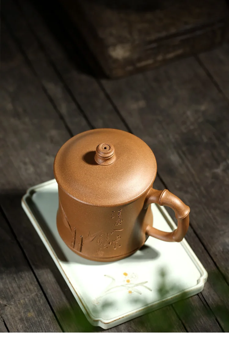 pot 】 yixing purple sand the engineering ChuLiQiang all hand gold bamboo old piece of clay model of the wind in my arms