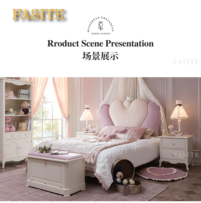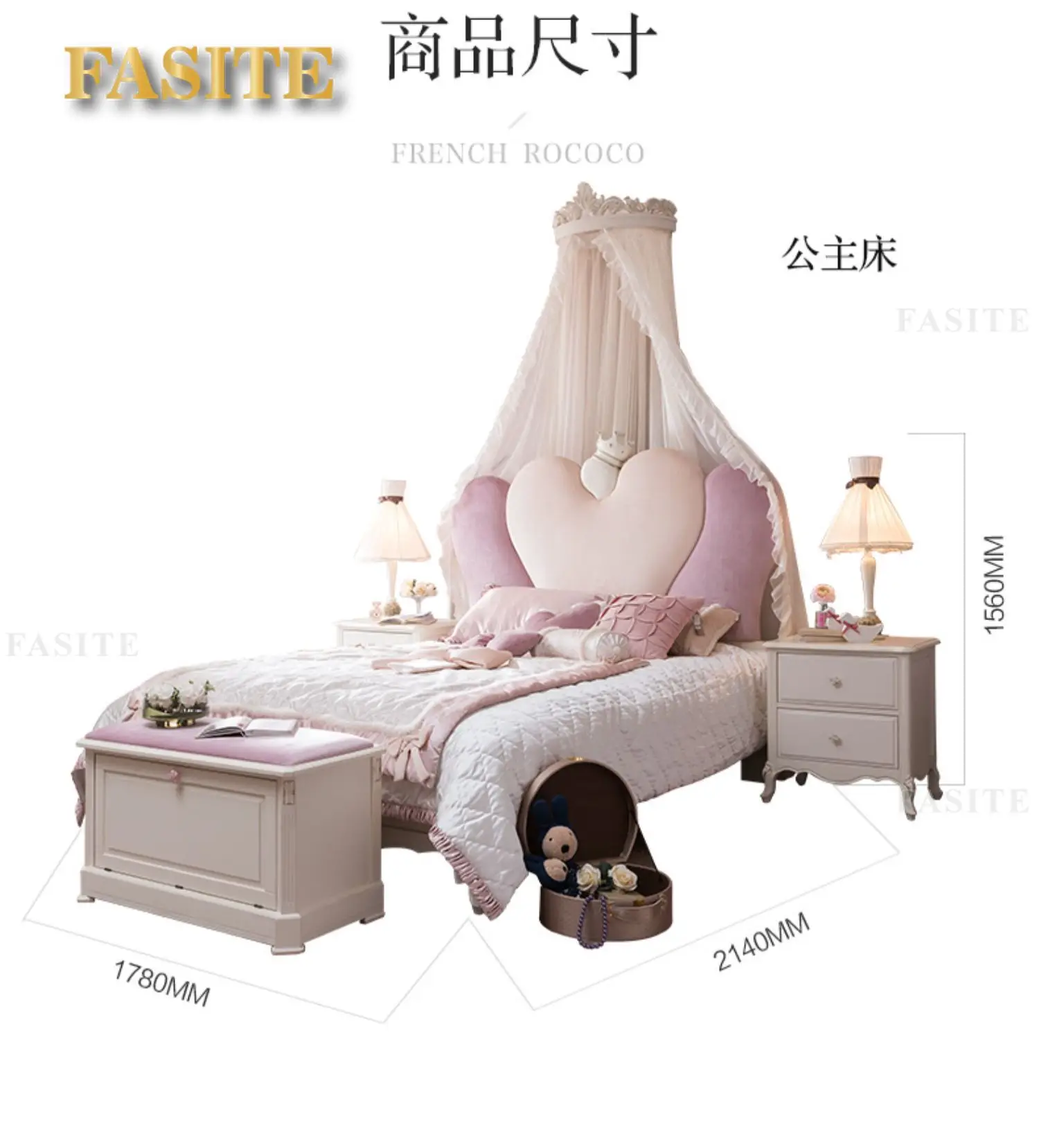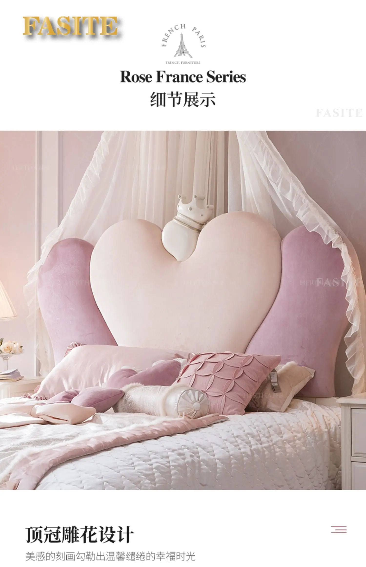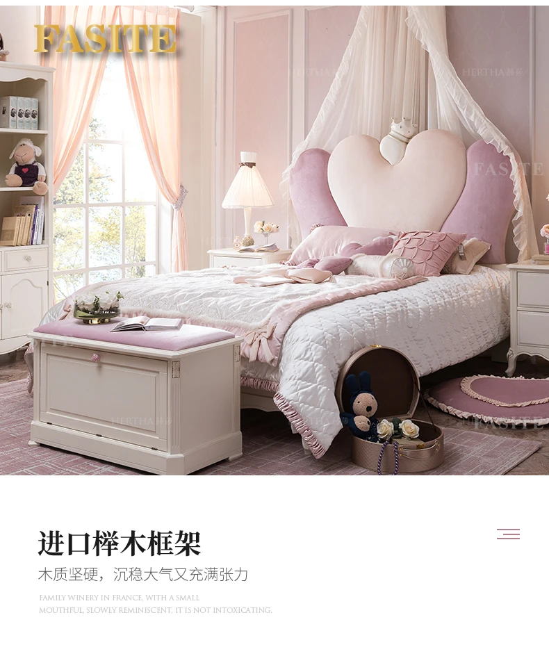 Princess bed 1.5 meters pink European solid wood furniture soft double bed