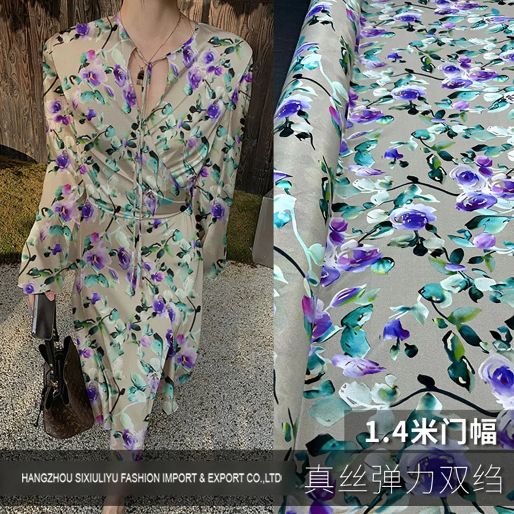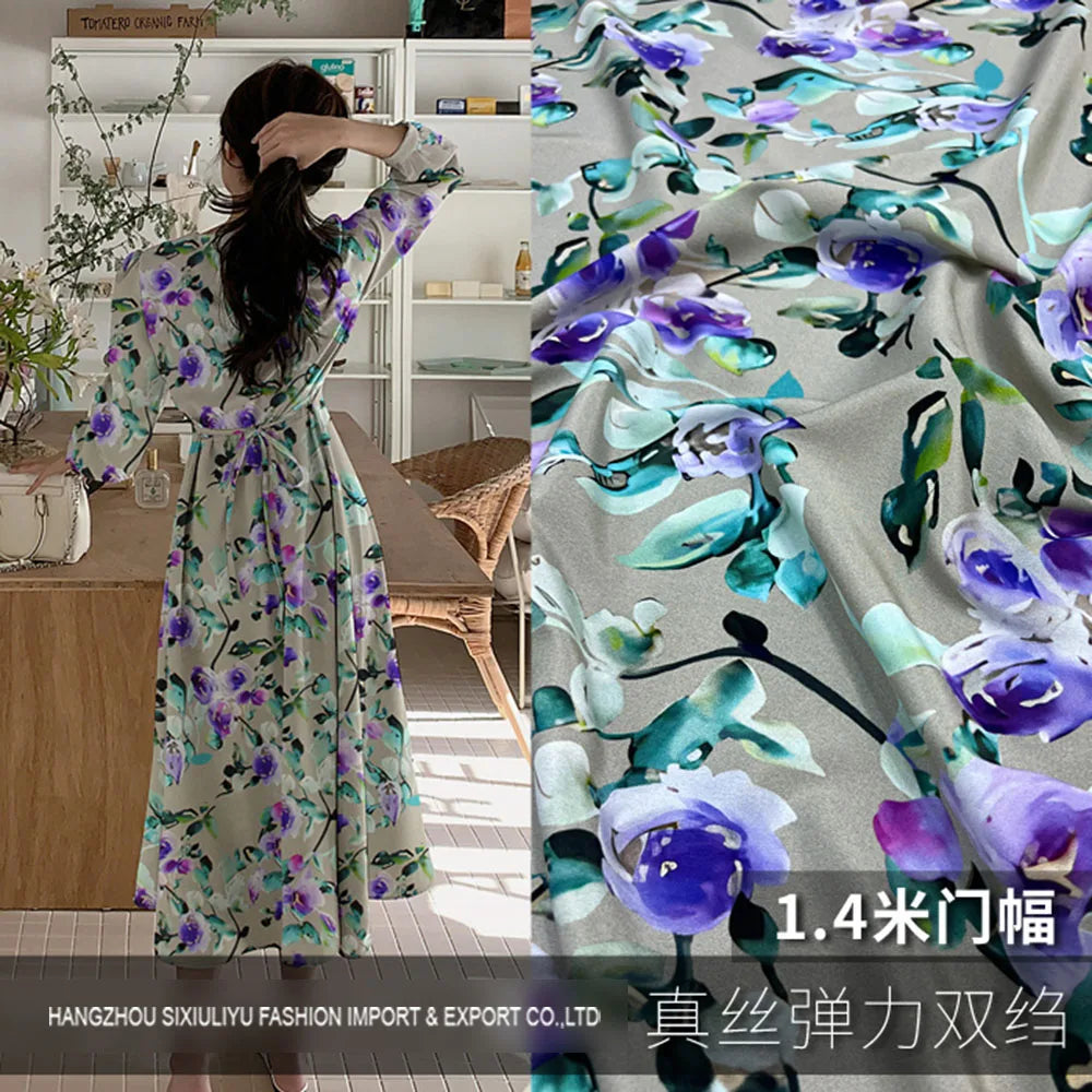 Printed Silk Stretch Crepe Fabric 18momme Width 140cm 100% Pure Silk Material For Shirt And Dresses Wholesale 2330