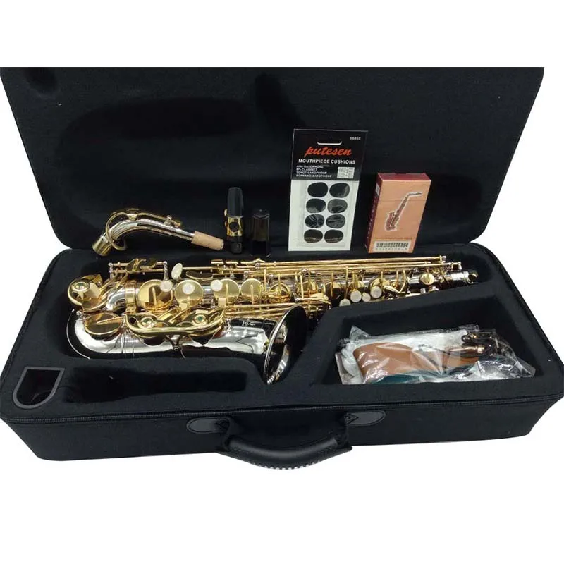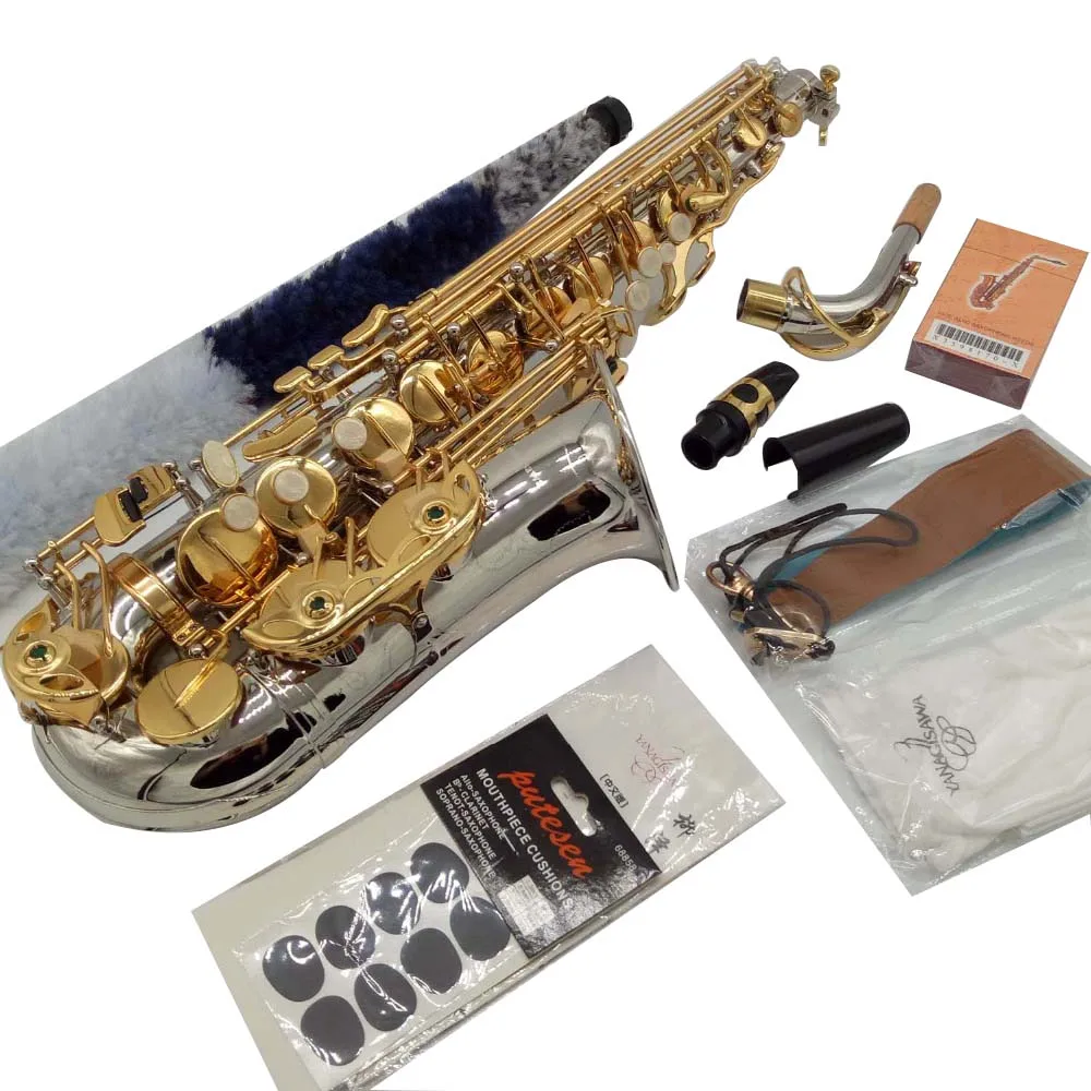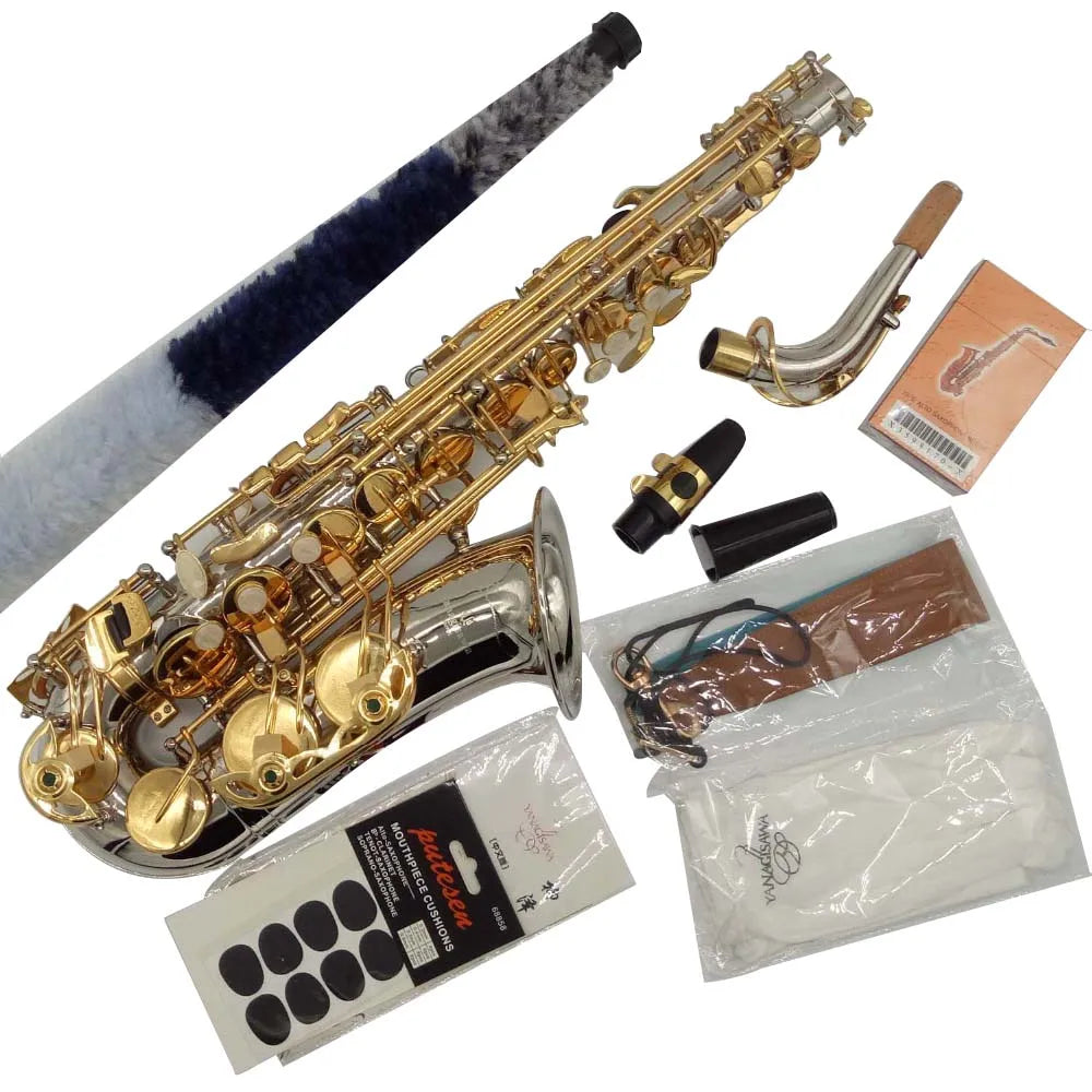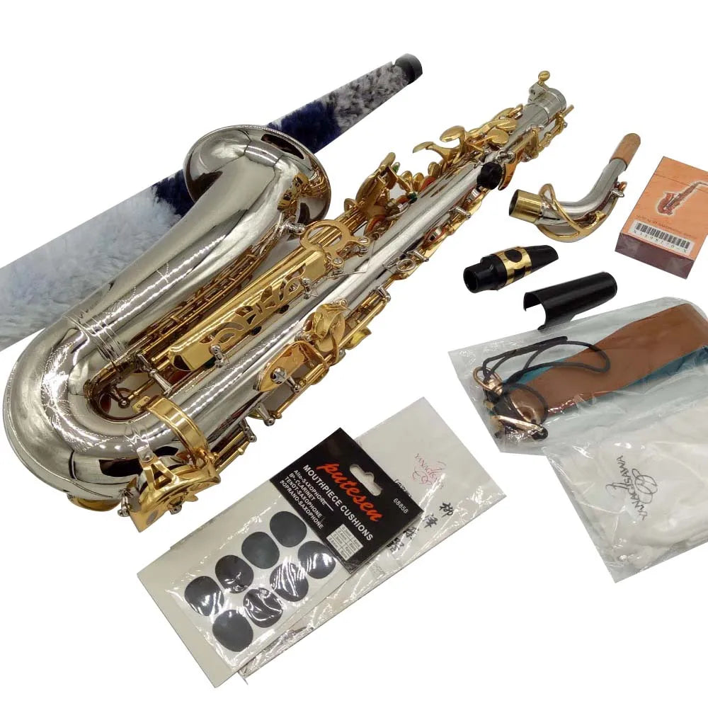 Professional Alto Saxophone A-9937 WO37 Nickel Plated Gold Key Sax Alto Musical Instruments Included Case Mouthpieces