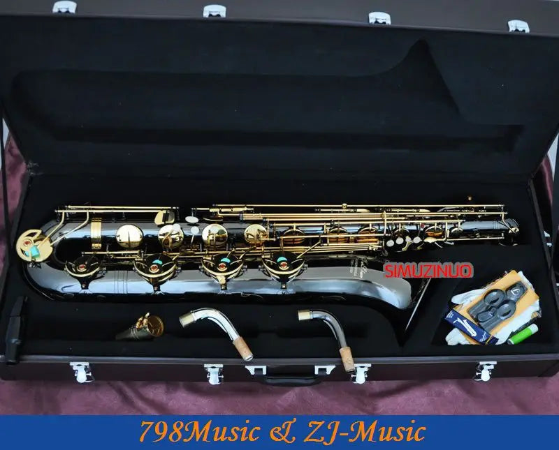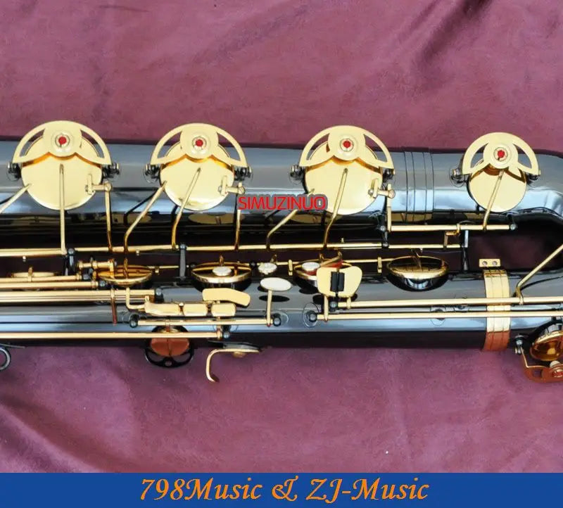 Professional Baritone Saxophone Black Nickel Gold sax High F# With Case