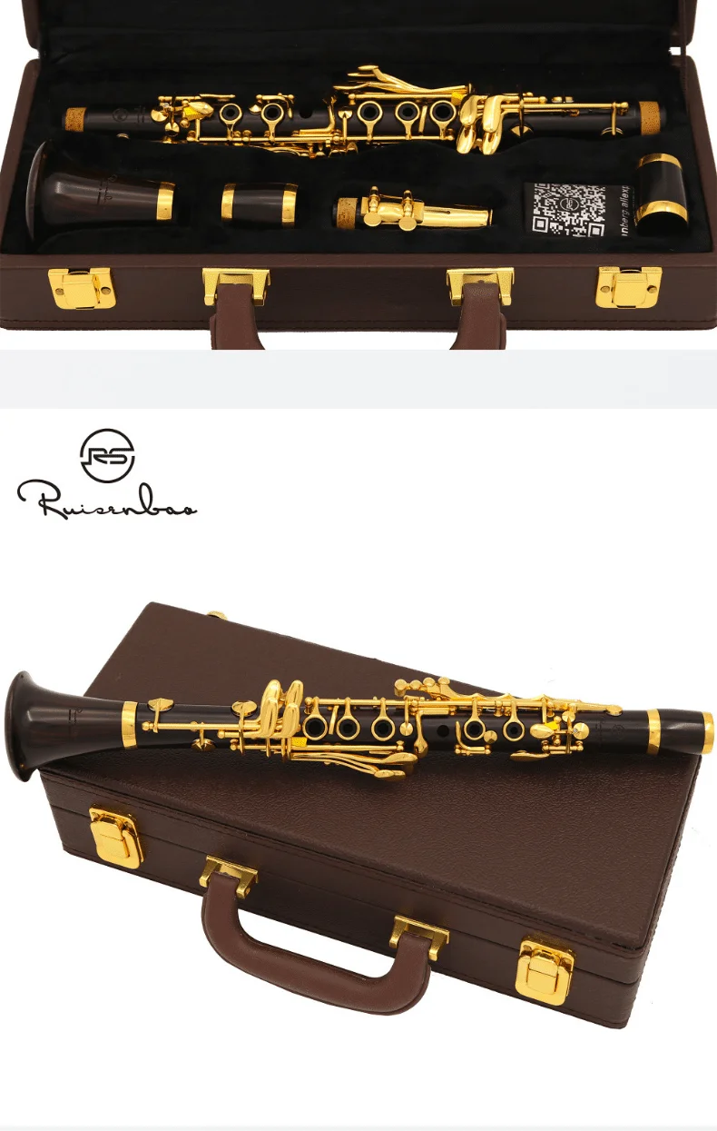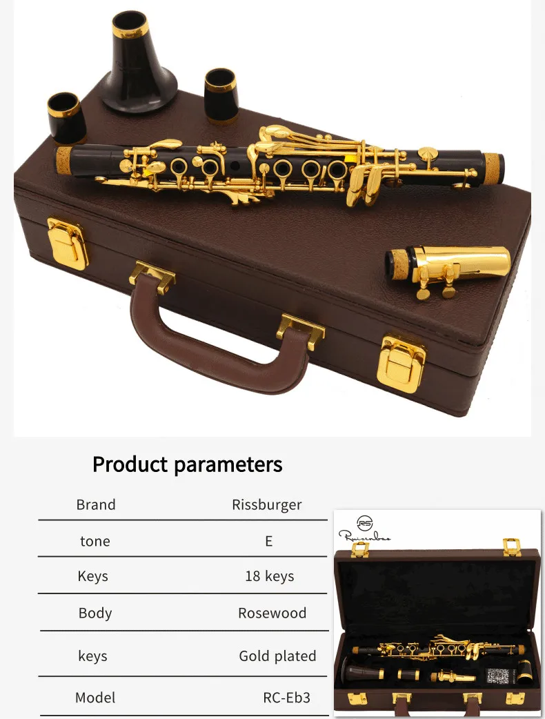Professional Eb 18 Keys Clarinet Ebony Wood Clarinet Gold Plated Key E fFat Sweet Tone