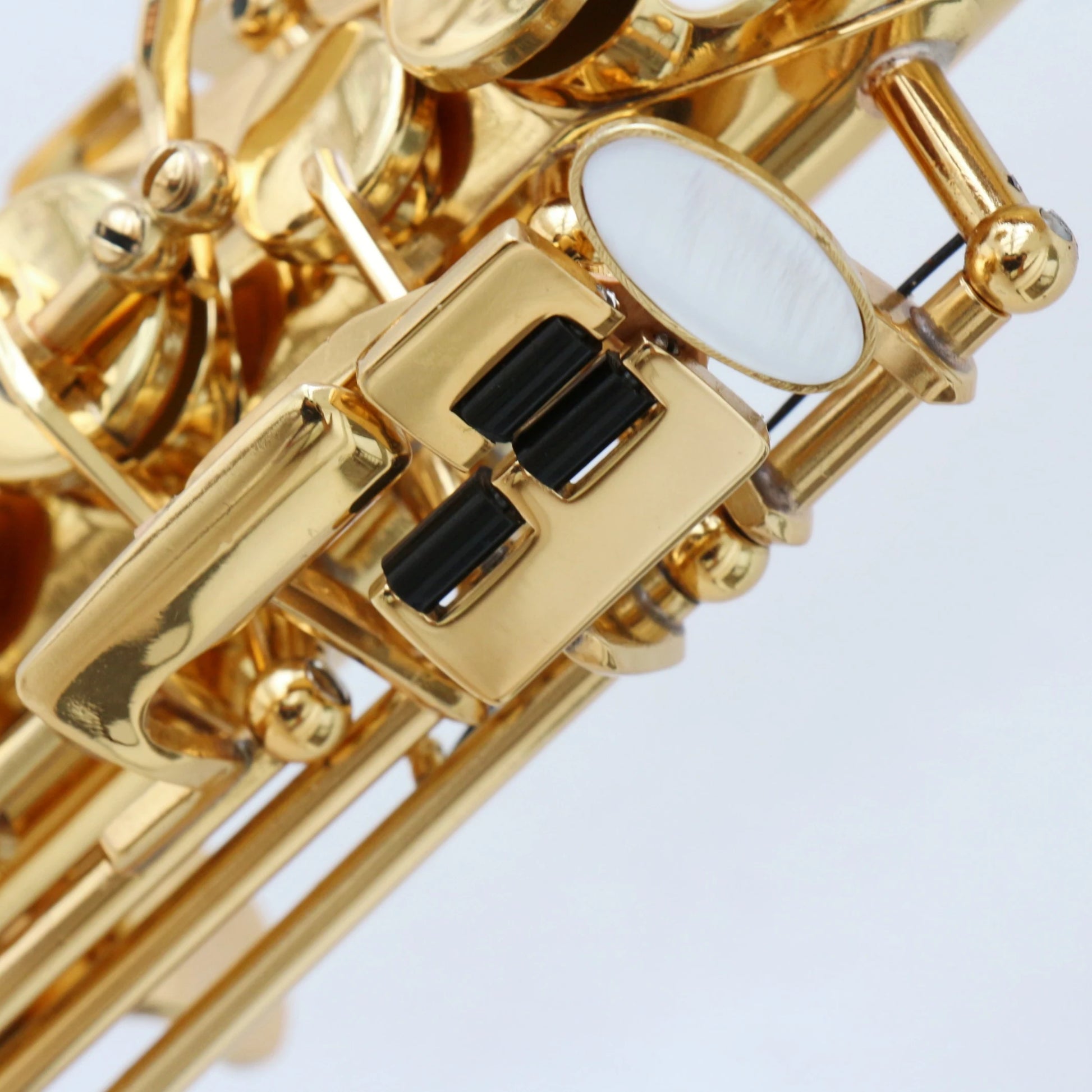 your saxophone with gold brush matte finish, durable and barely to fade;the bell mouth surface with beautiful carve patterns; and the white shell inlaid keys.