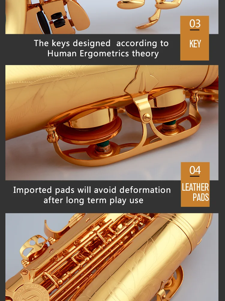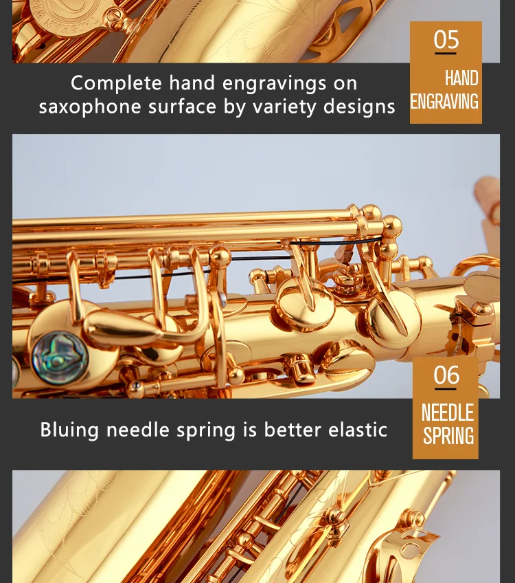 Professional Performance Grade Alto Saxophone Gold Lacquered Brass Eb Tone Alto sax