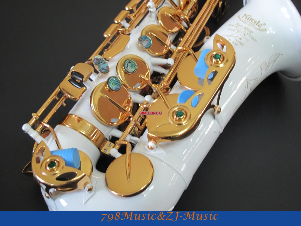 Professional White Lacquer Alto Saxophone Sax High F# Abalone Shell Key With Case
