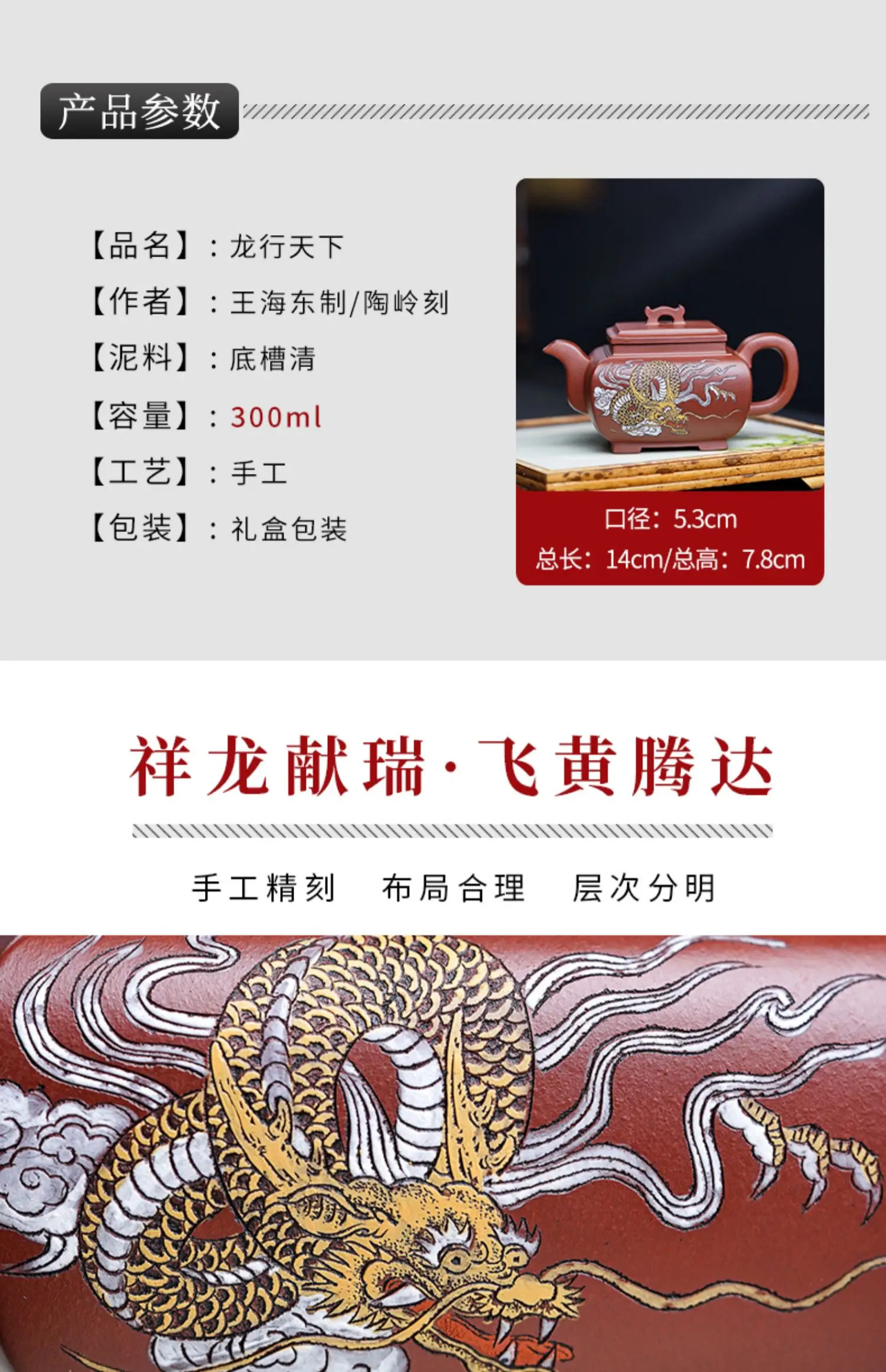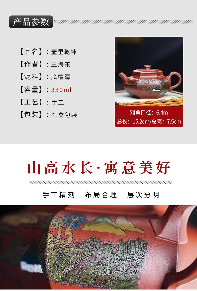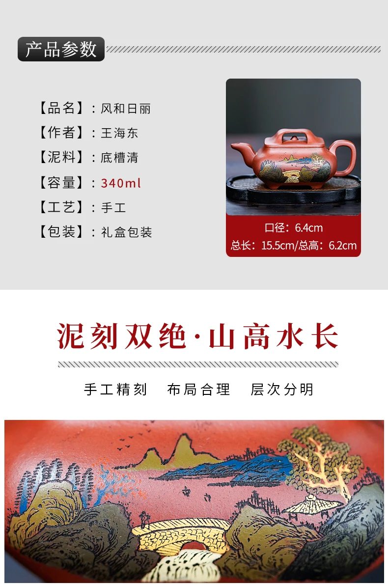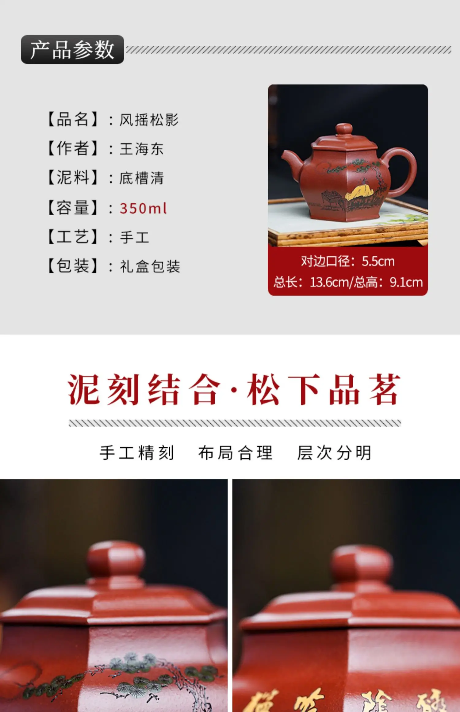 |pure manual famous hai-dong wang undressed ore mud cleaning bottom groove carved zisha teapot tea kungfu single pot