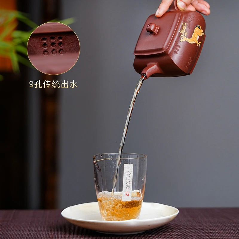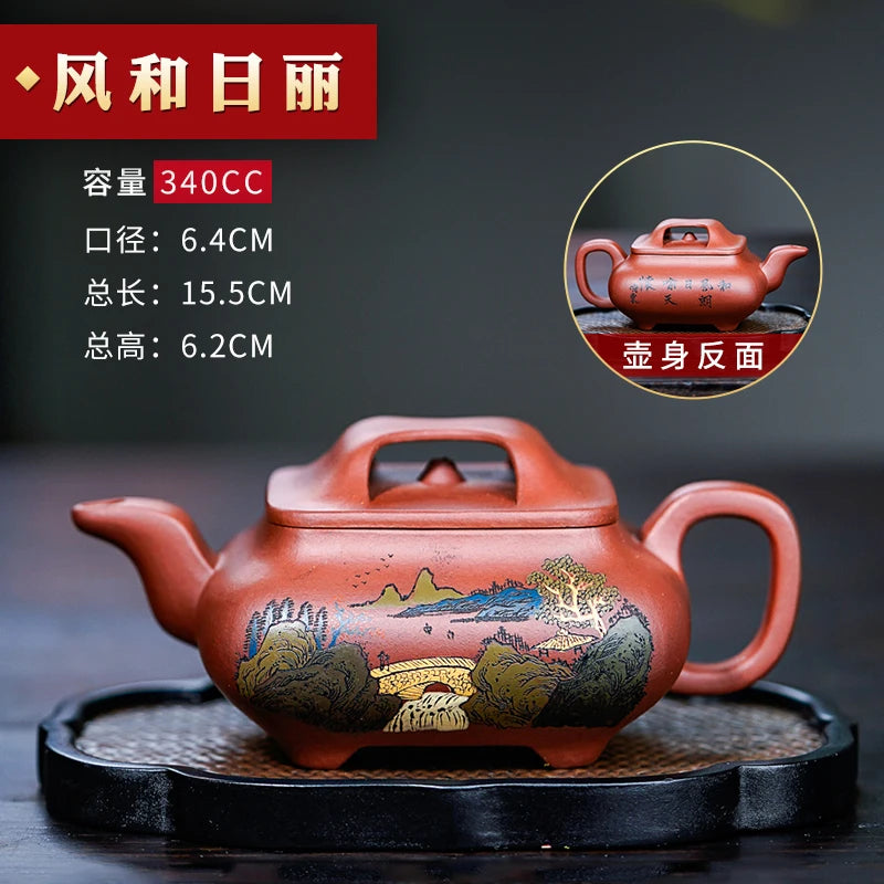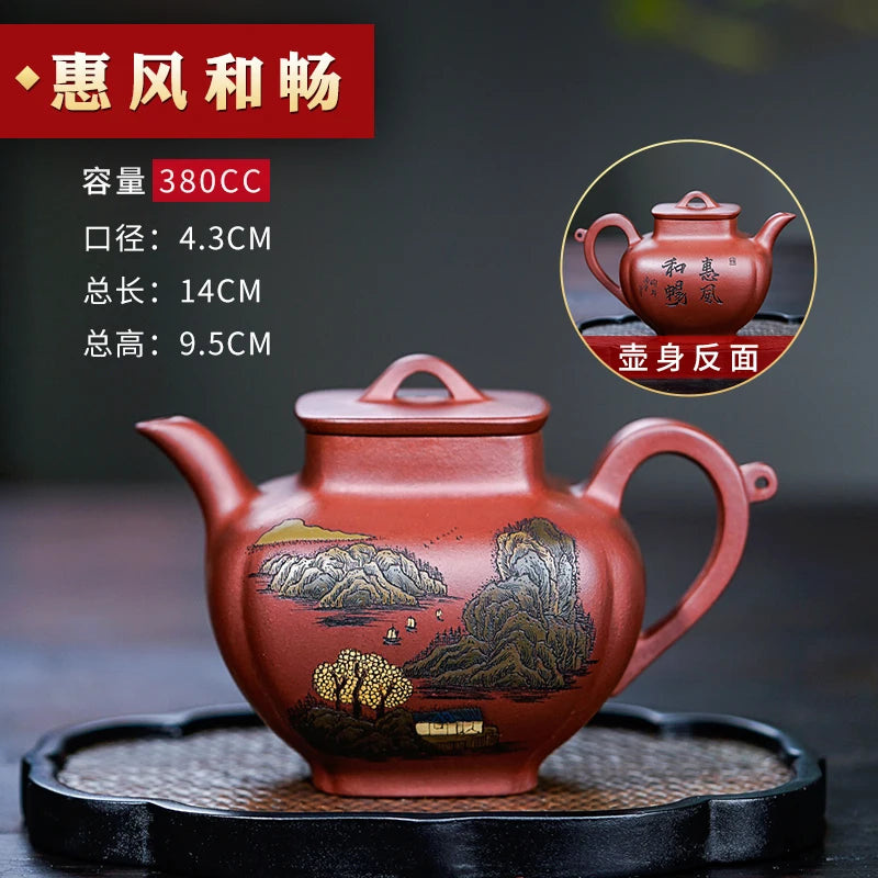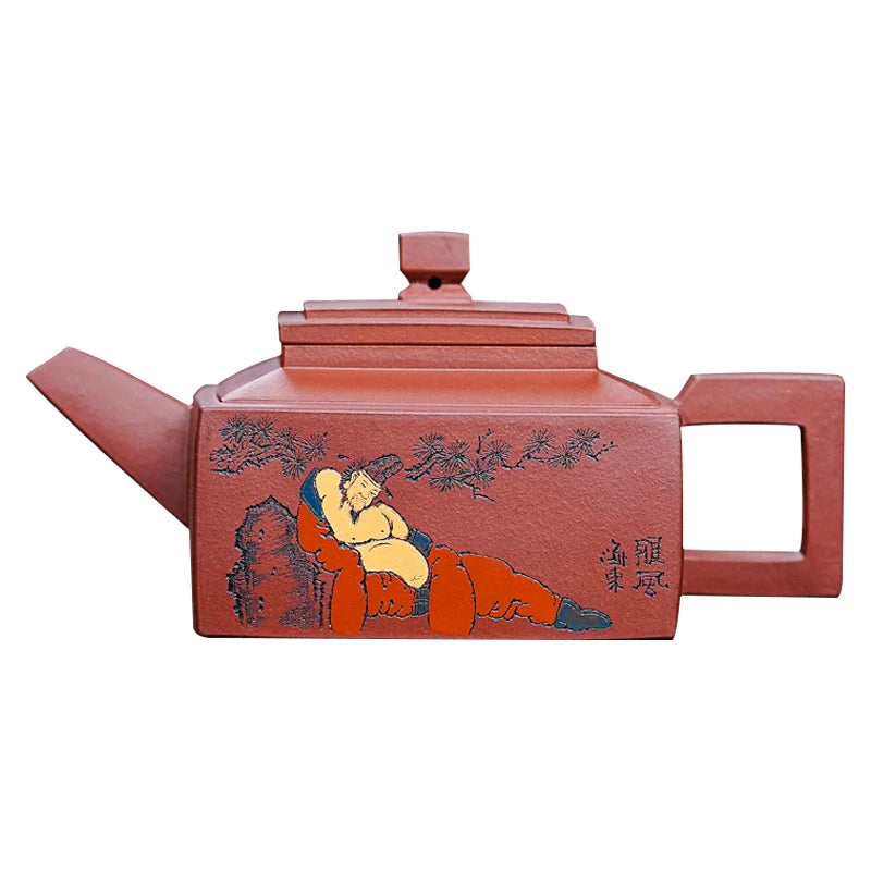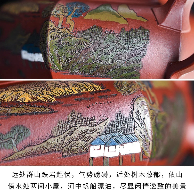 |pure manual famous hai-dong wang undressed ore mud cleaning bottom groove carved zisha teapot tea kungfu single pot