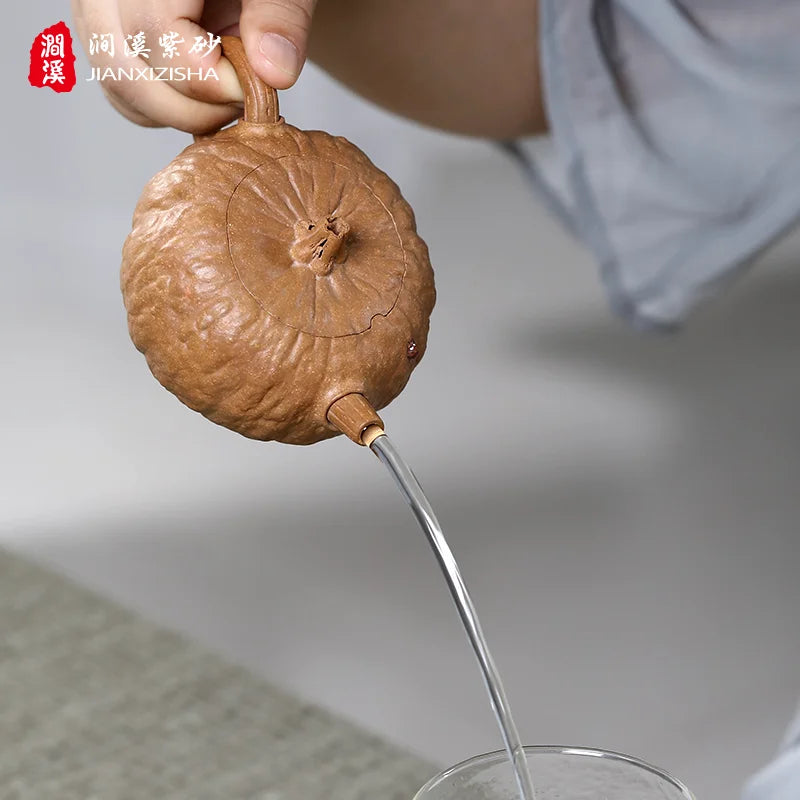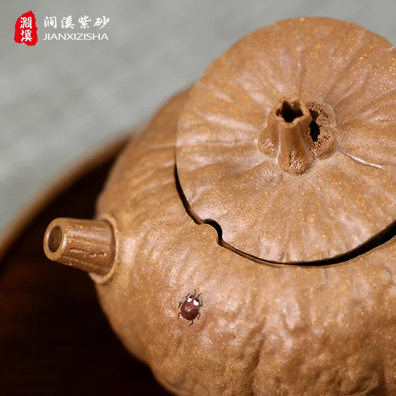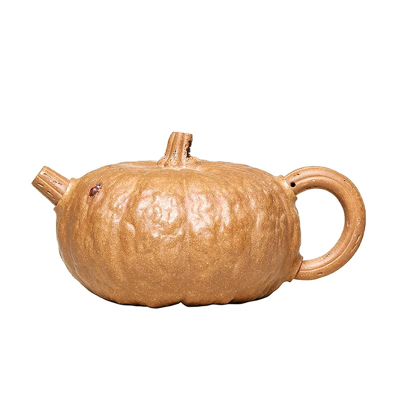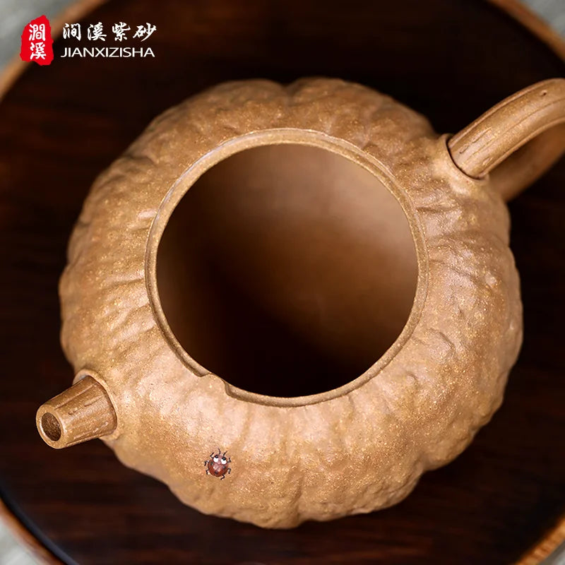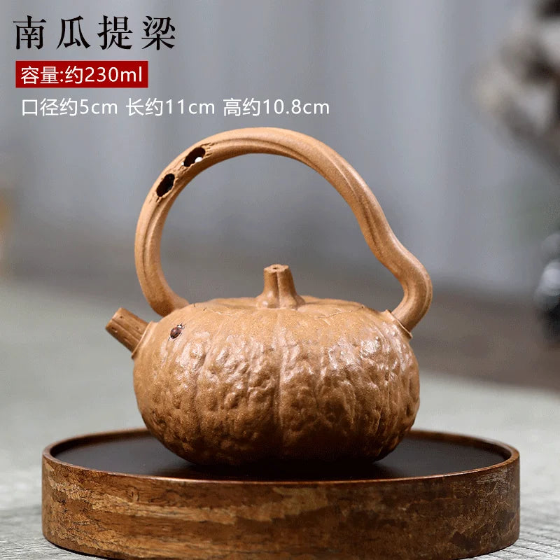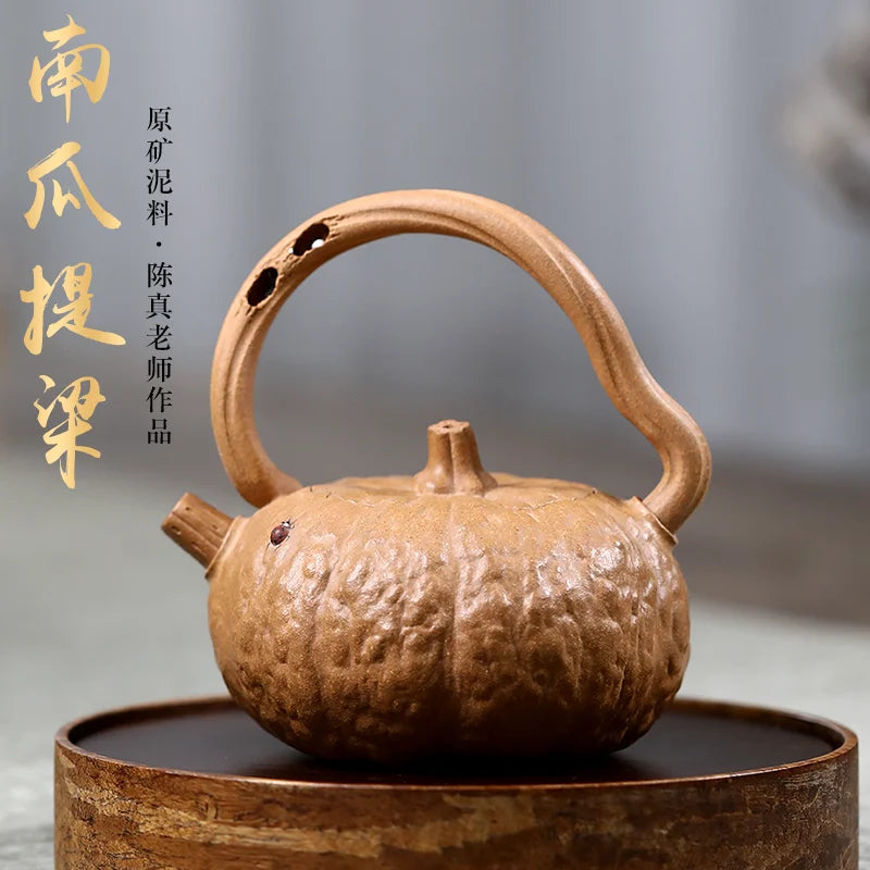 Qianxi Yixing Handmade Purple Clay Teapot Household Tea Set Chen Zhen Boutique Raw Ore Beige Clay Pumpkin Pot Loop-Handled Teapo