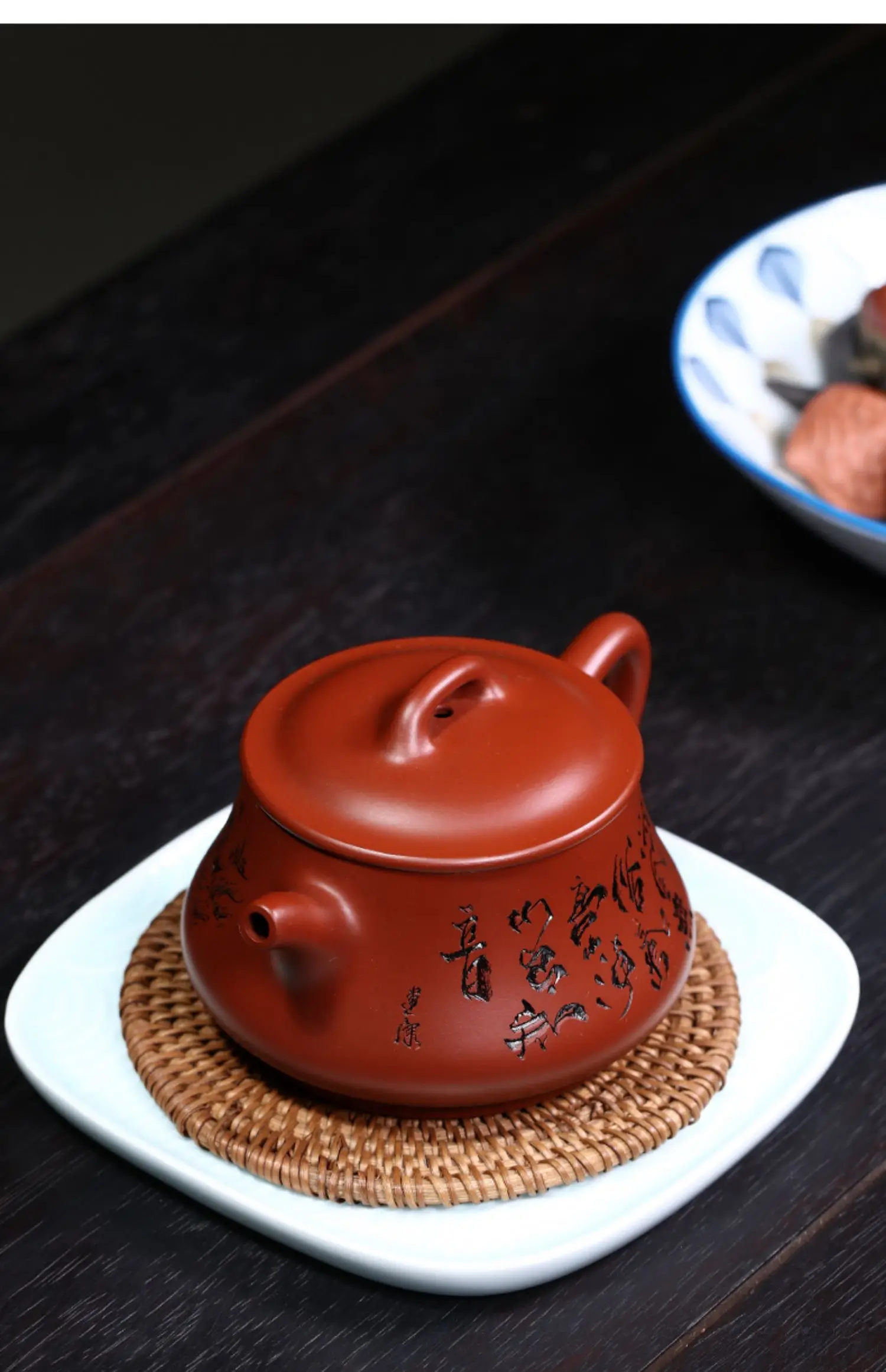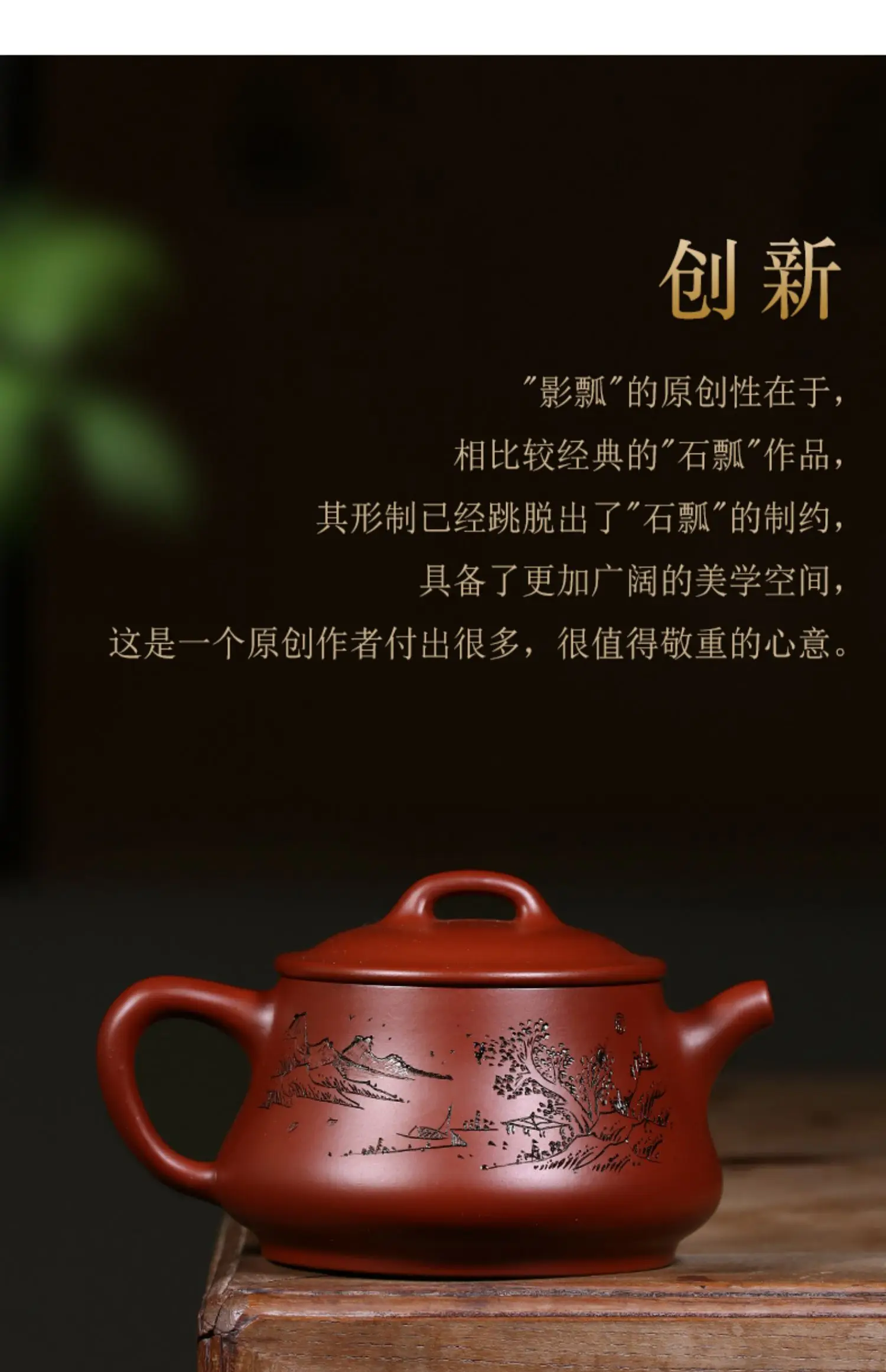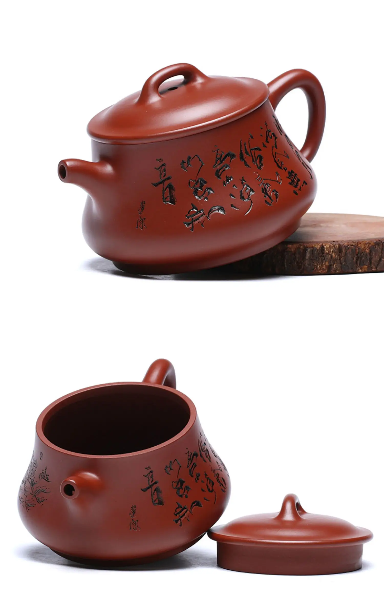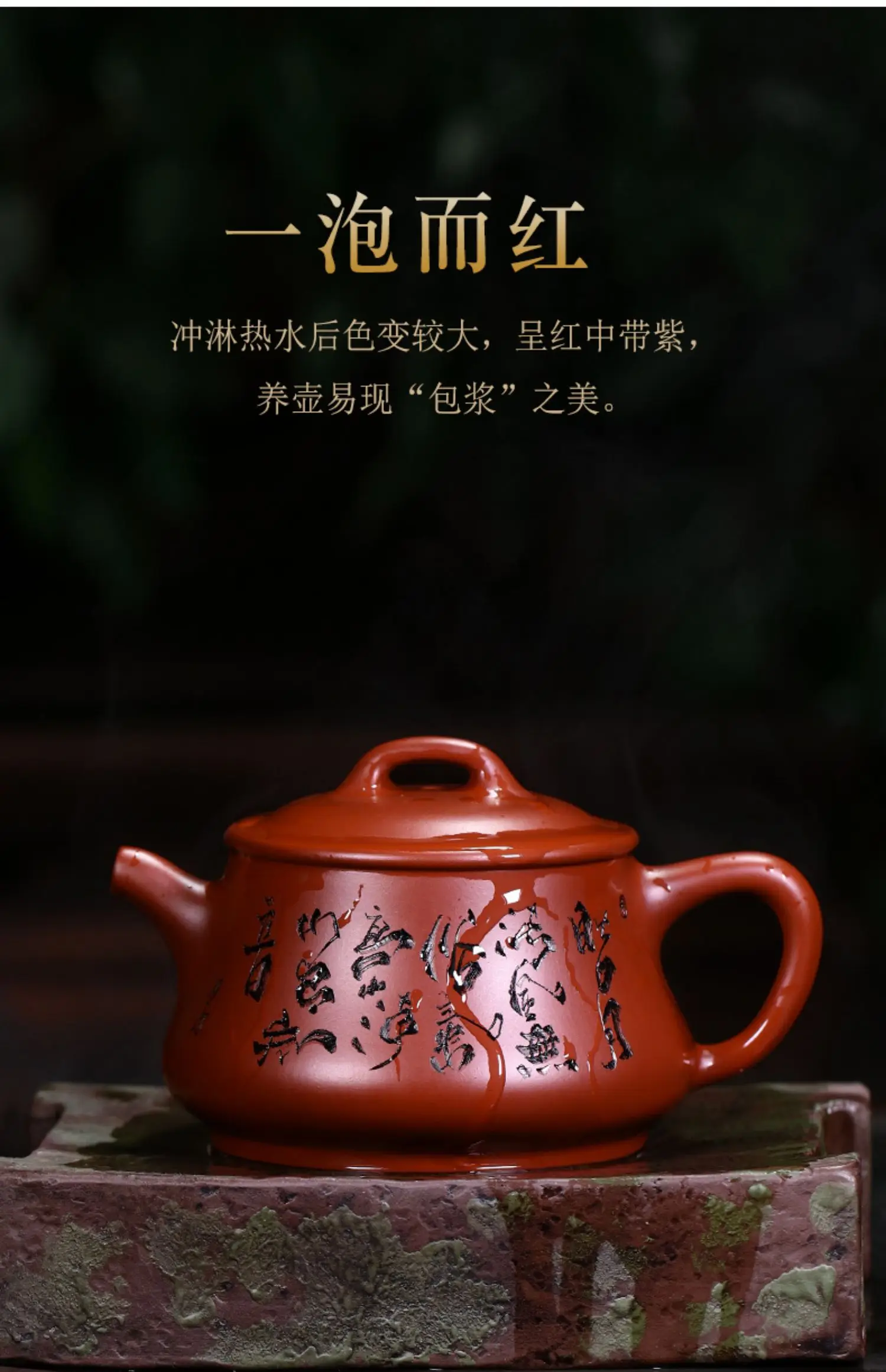 Recommended yixing all hand the high pure hand carved painting dahongpao 270 cc single pot teapot shadow gourd ladle