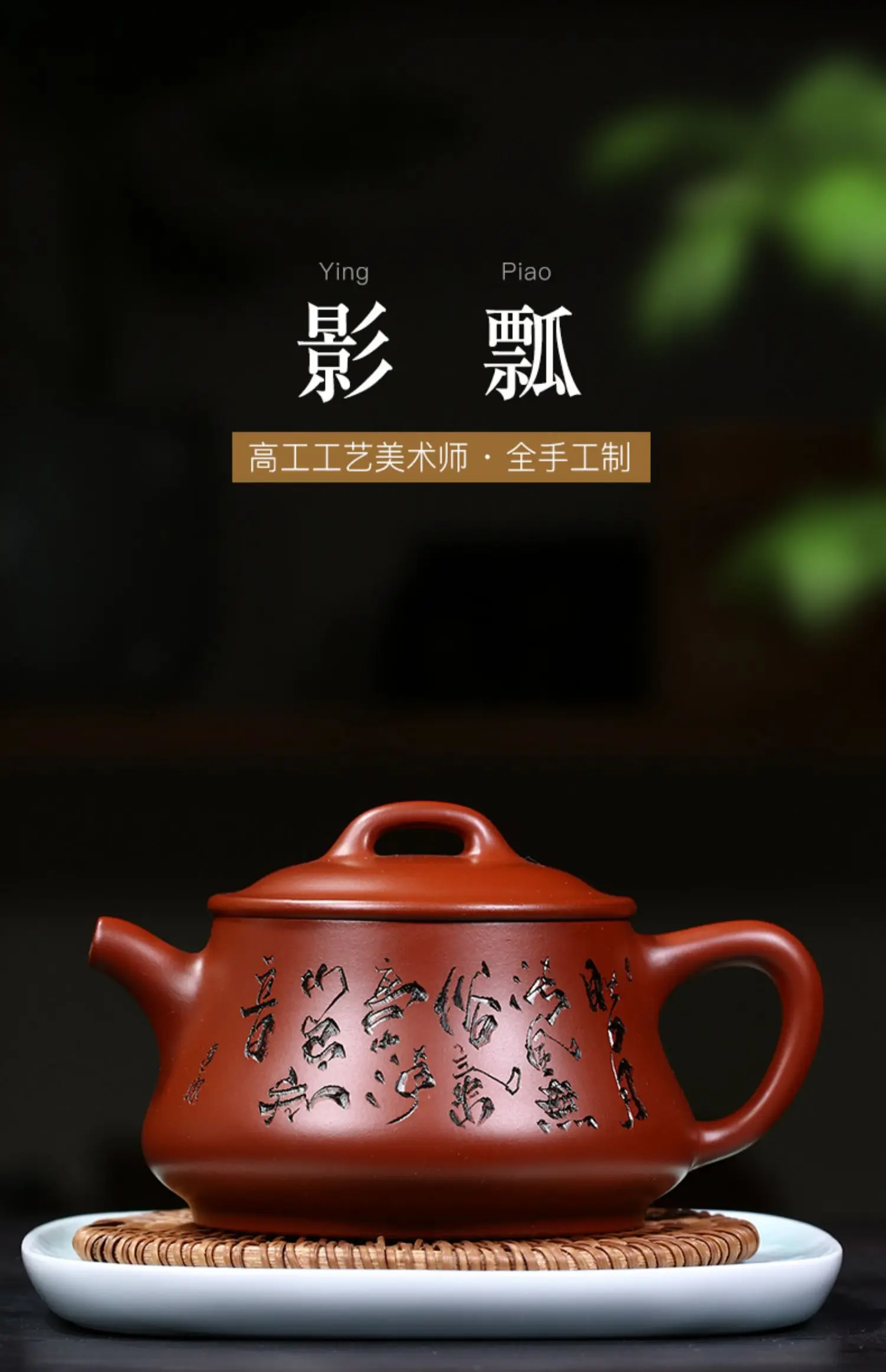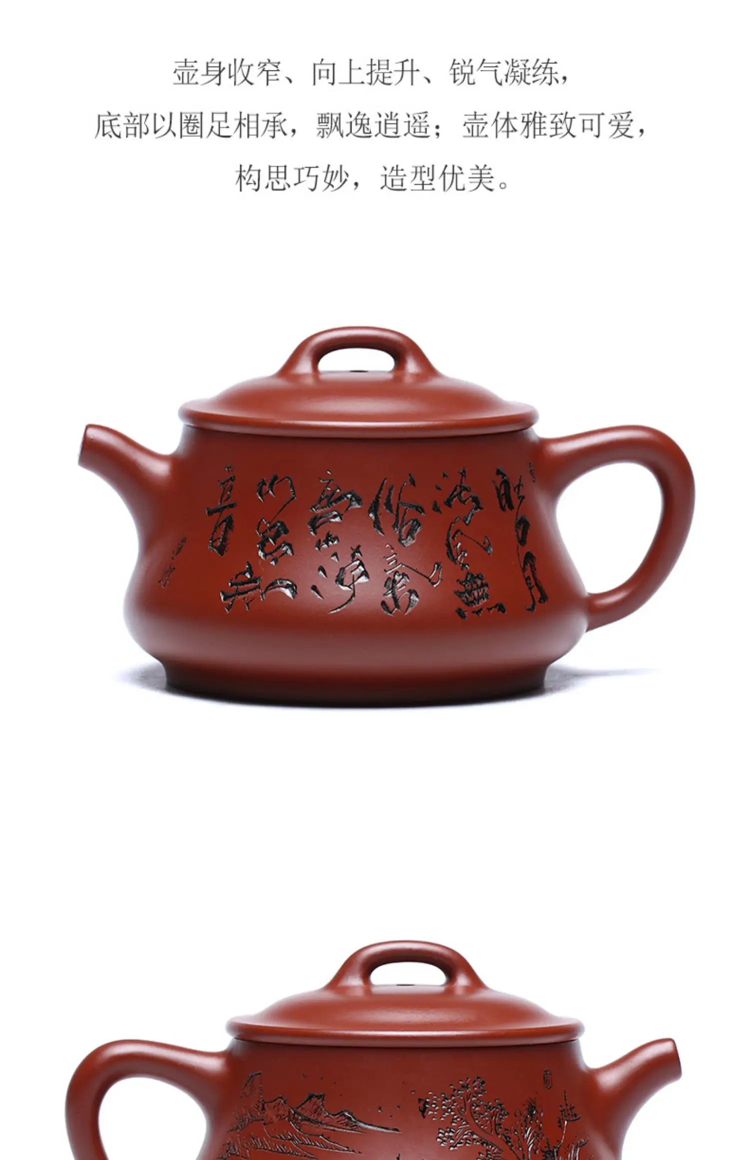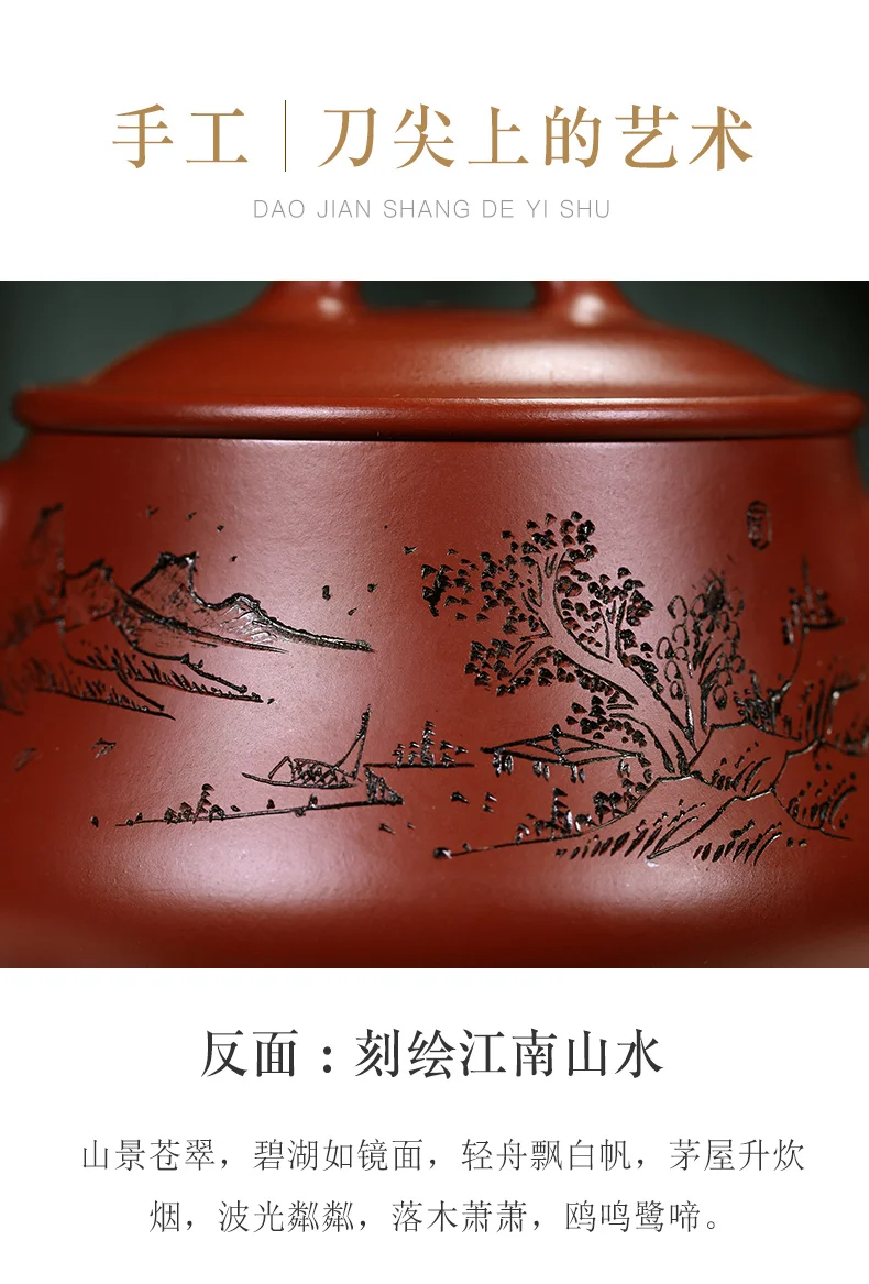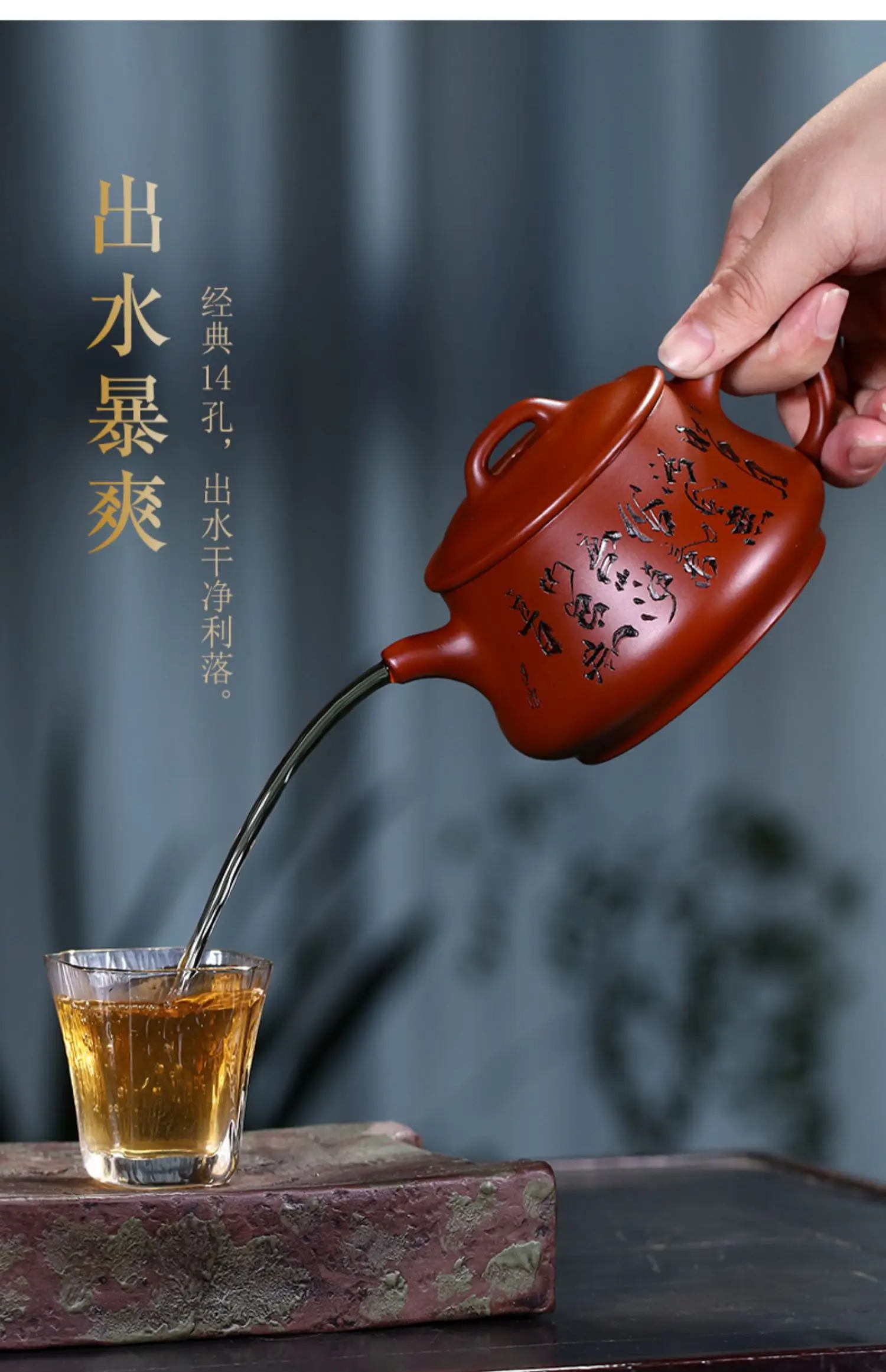 Recommended yixing all hand the high pure hand carved painting dahongpao 270 cc single pot teapot shadow gourd ladle