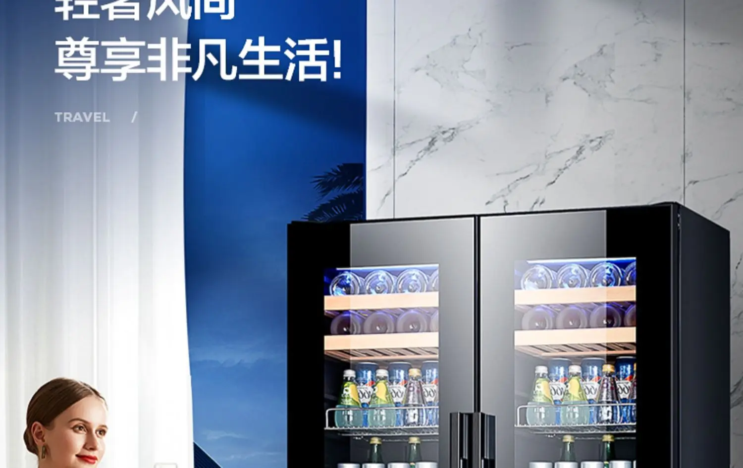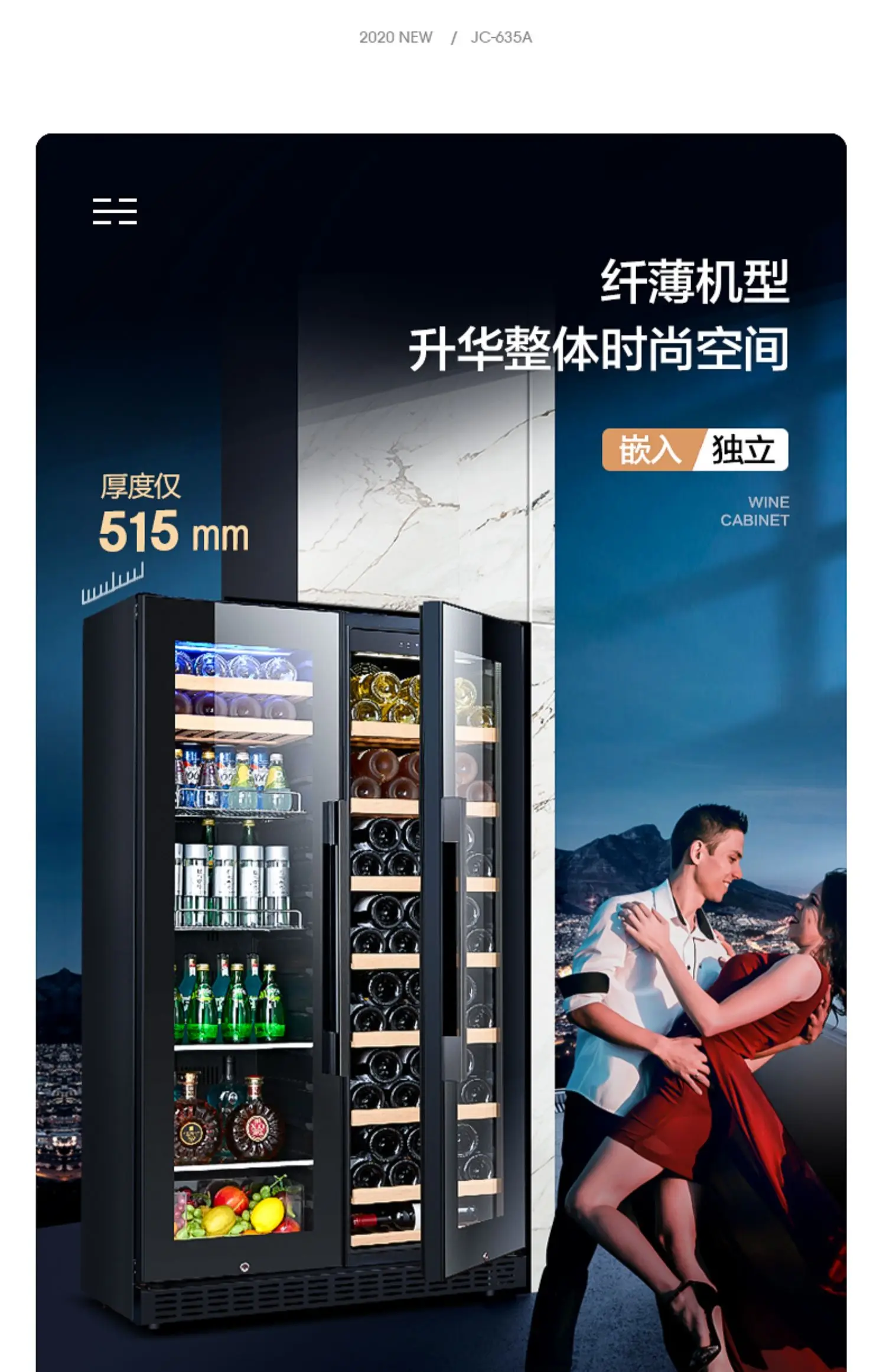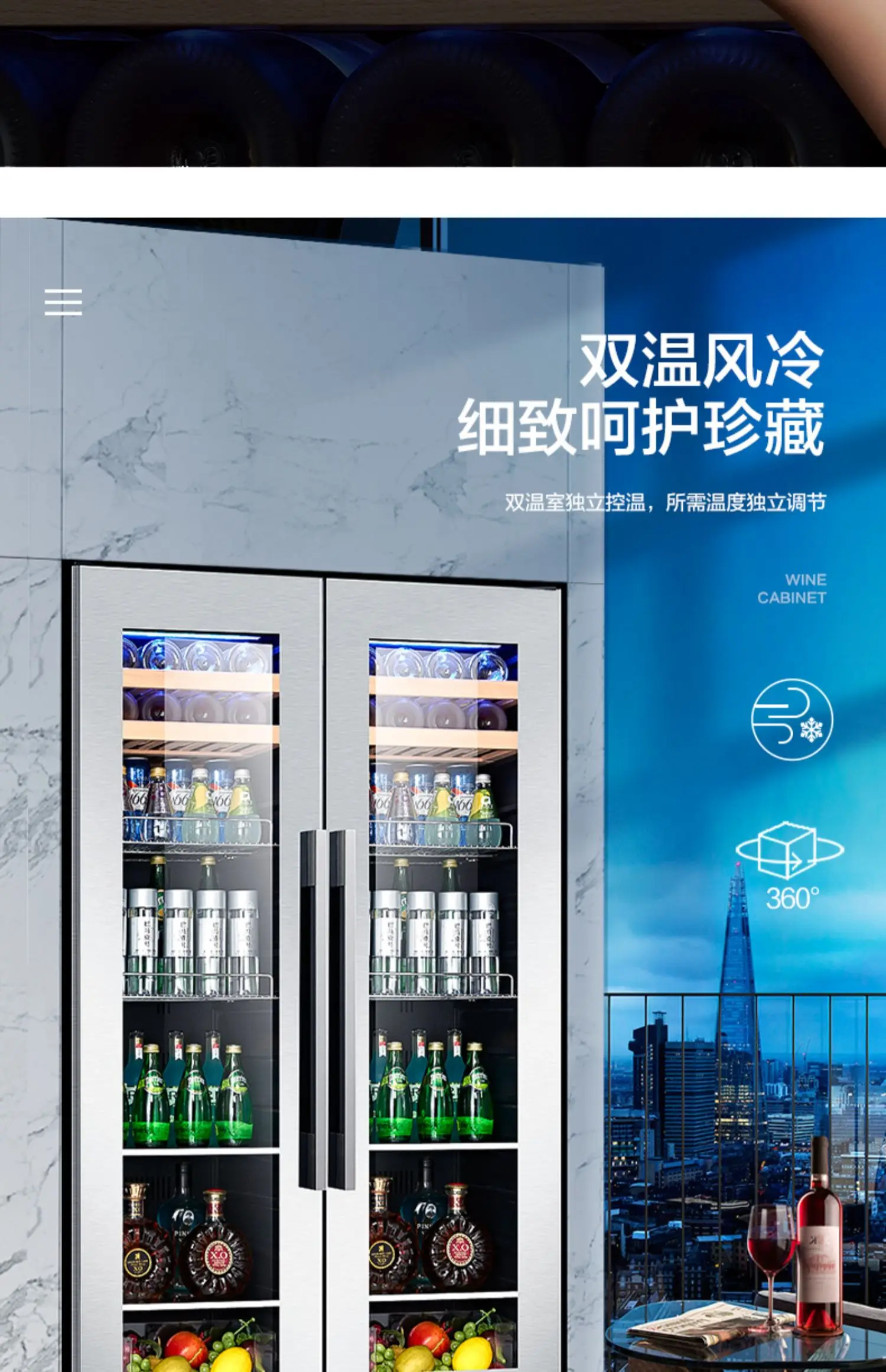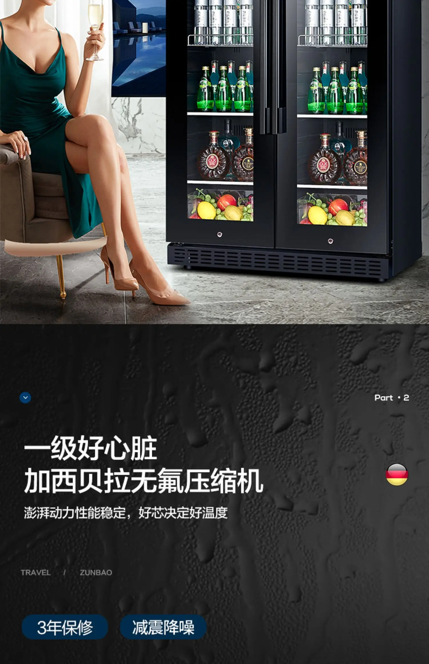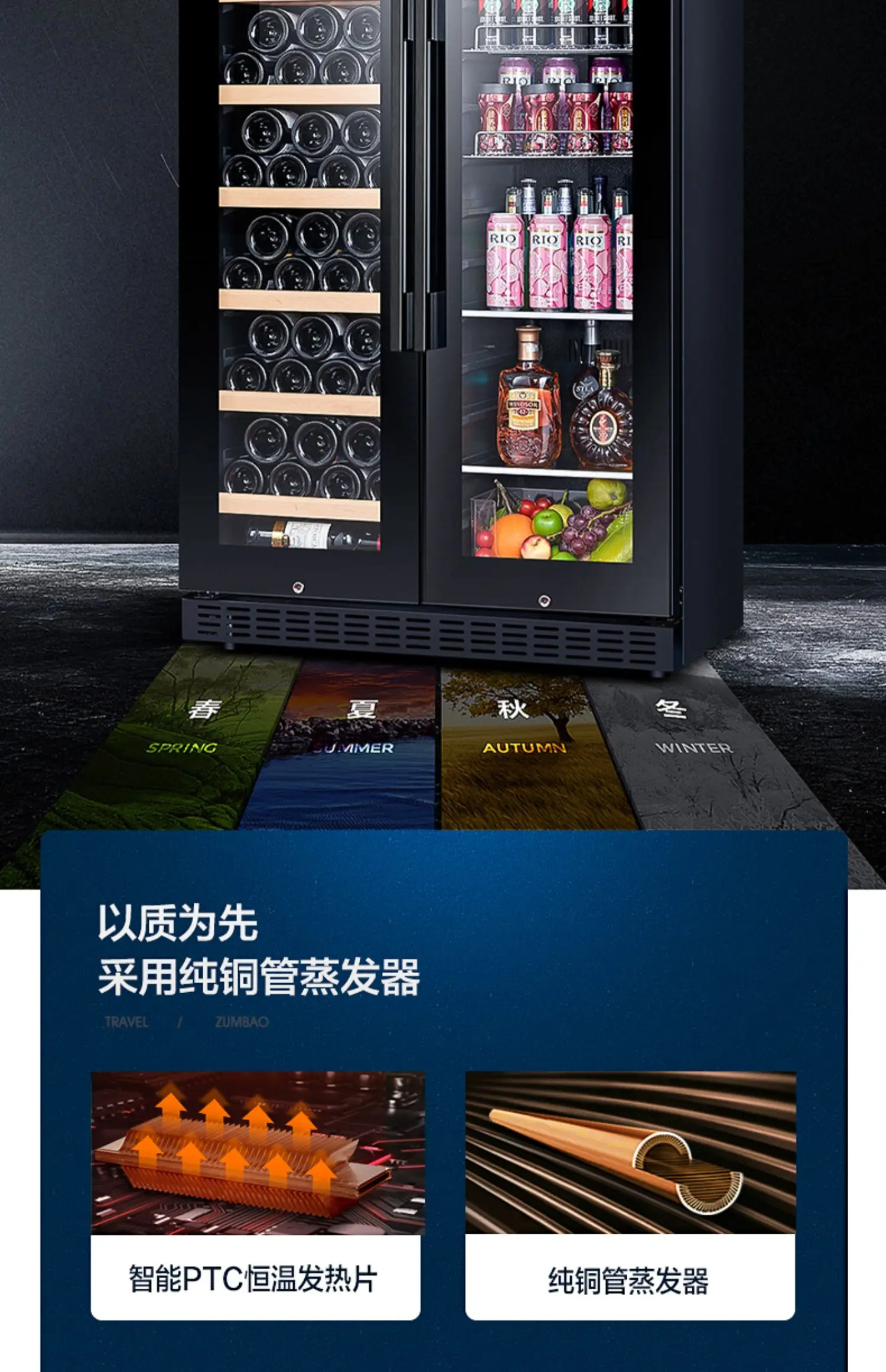 Red wine cabinet, constant temperature ice bar, double door household living room, air-cooled embedded refrigerated tea refriger