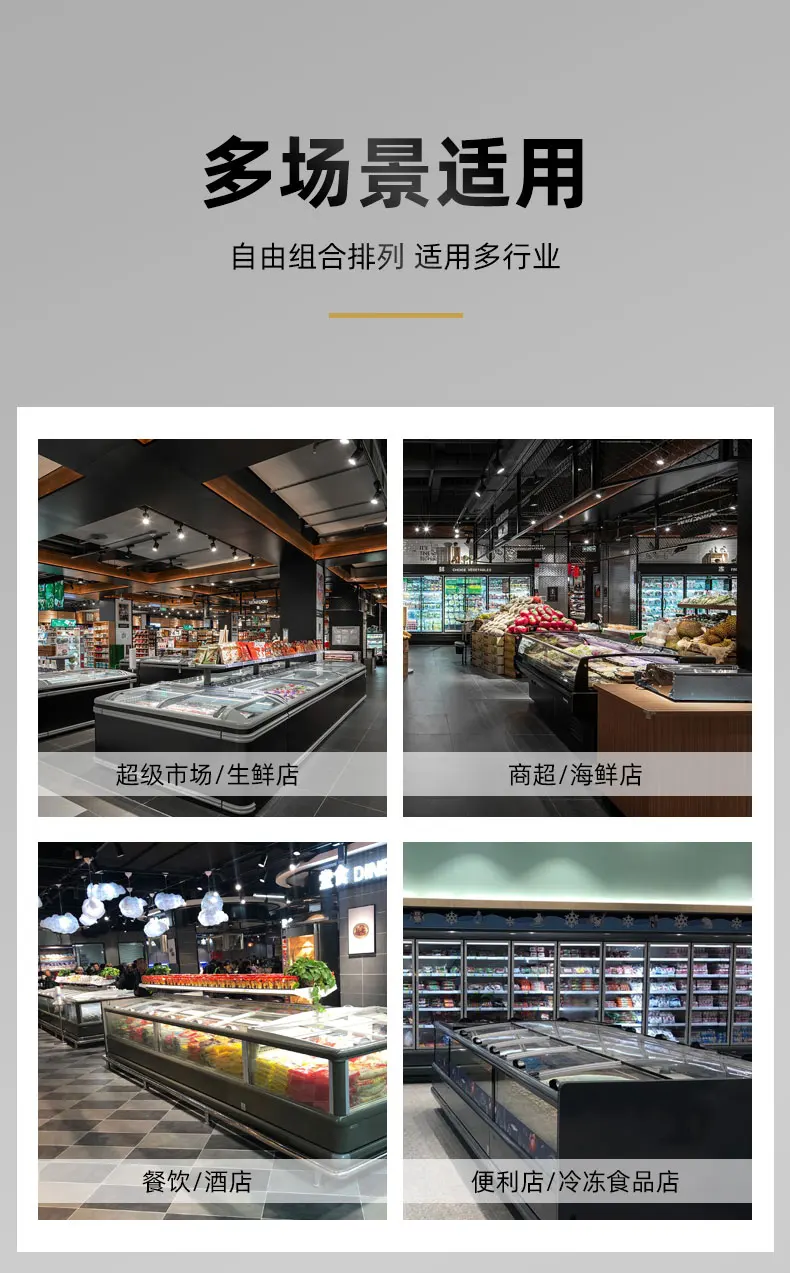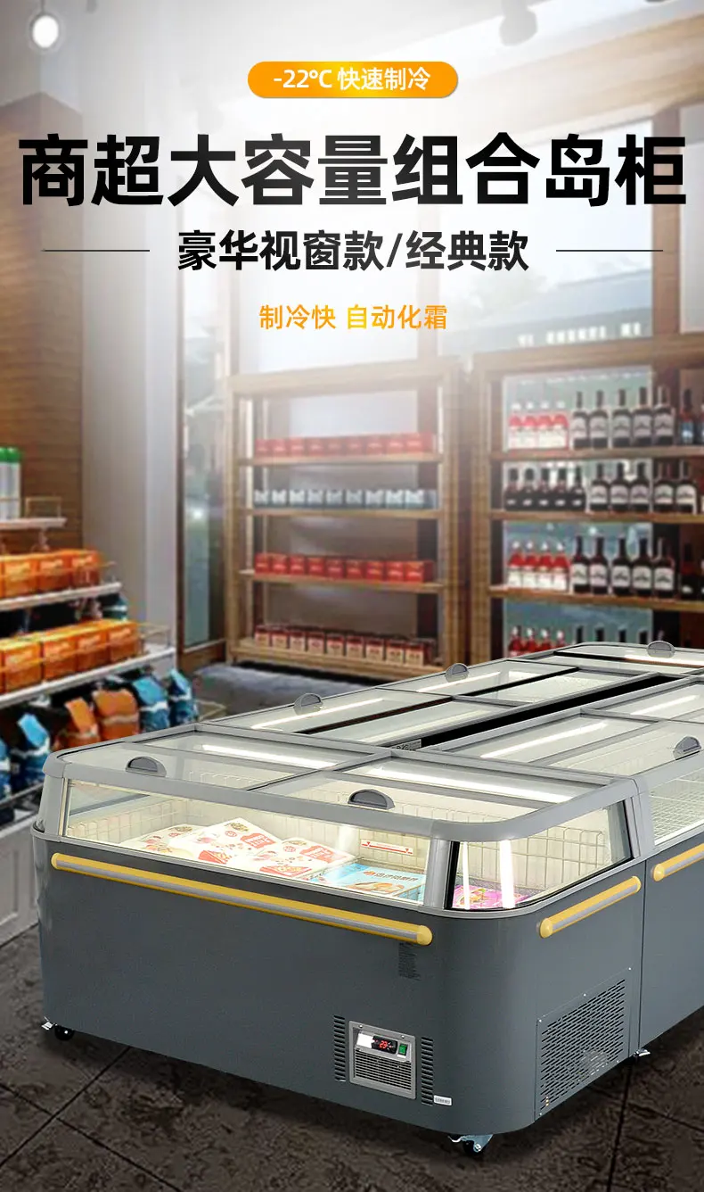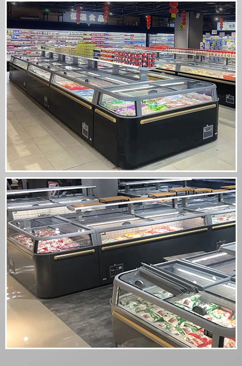 Refrigerator commercial combination island cabinet horizontal display freezer supermarket frost-free refrigerator transparent gl