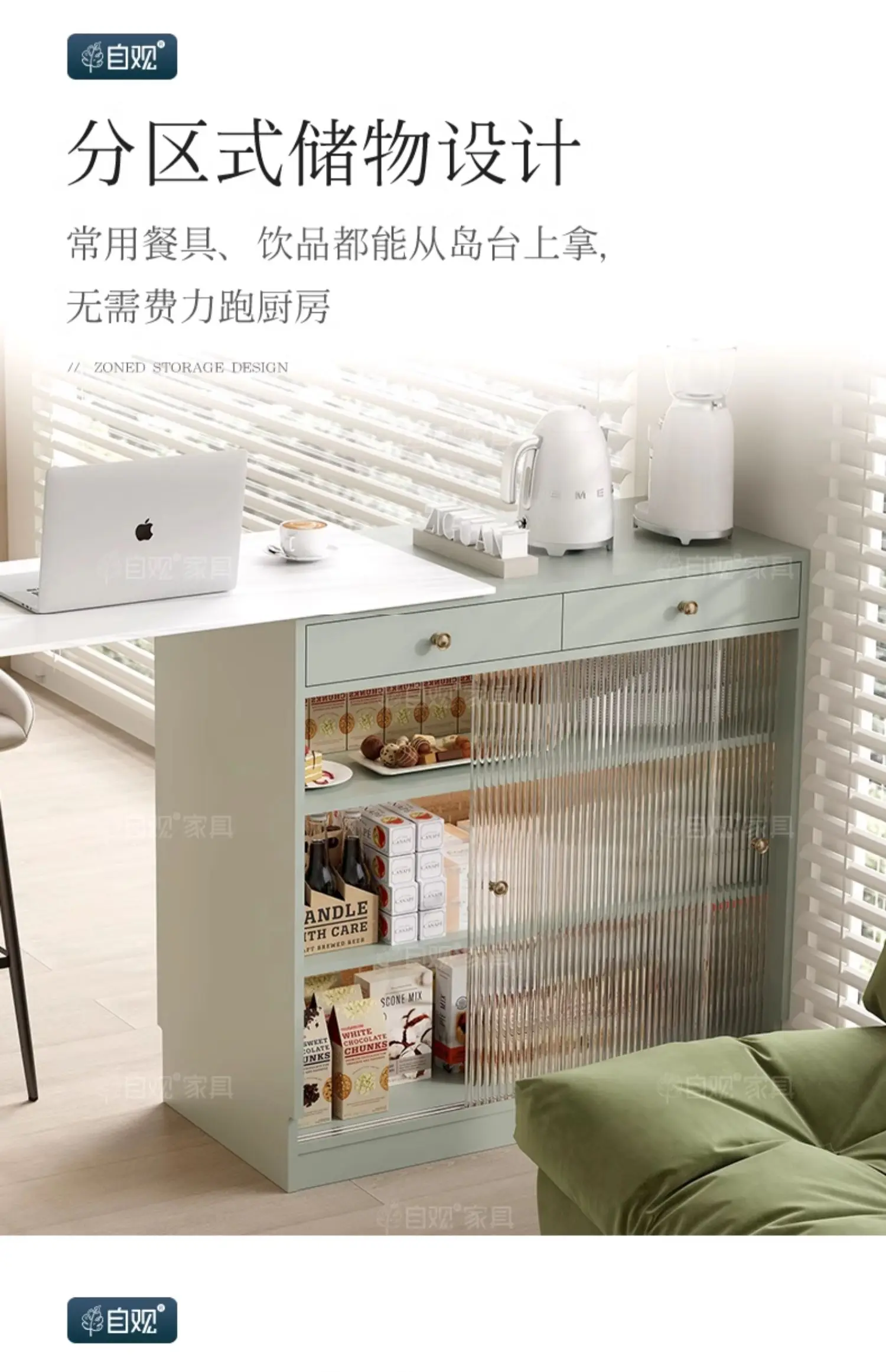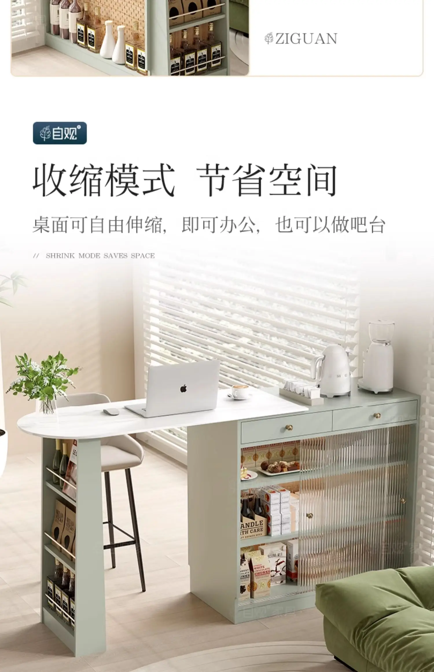MMOOKA Retractable European Stone Plate Sideboard Cabinet Green Dining Table Small Apartment Furniture