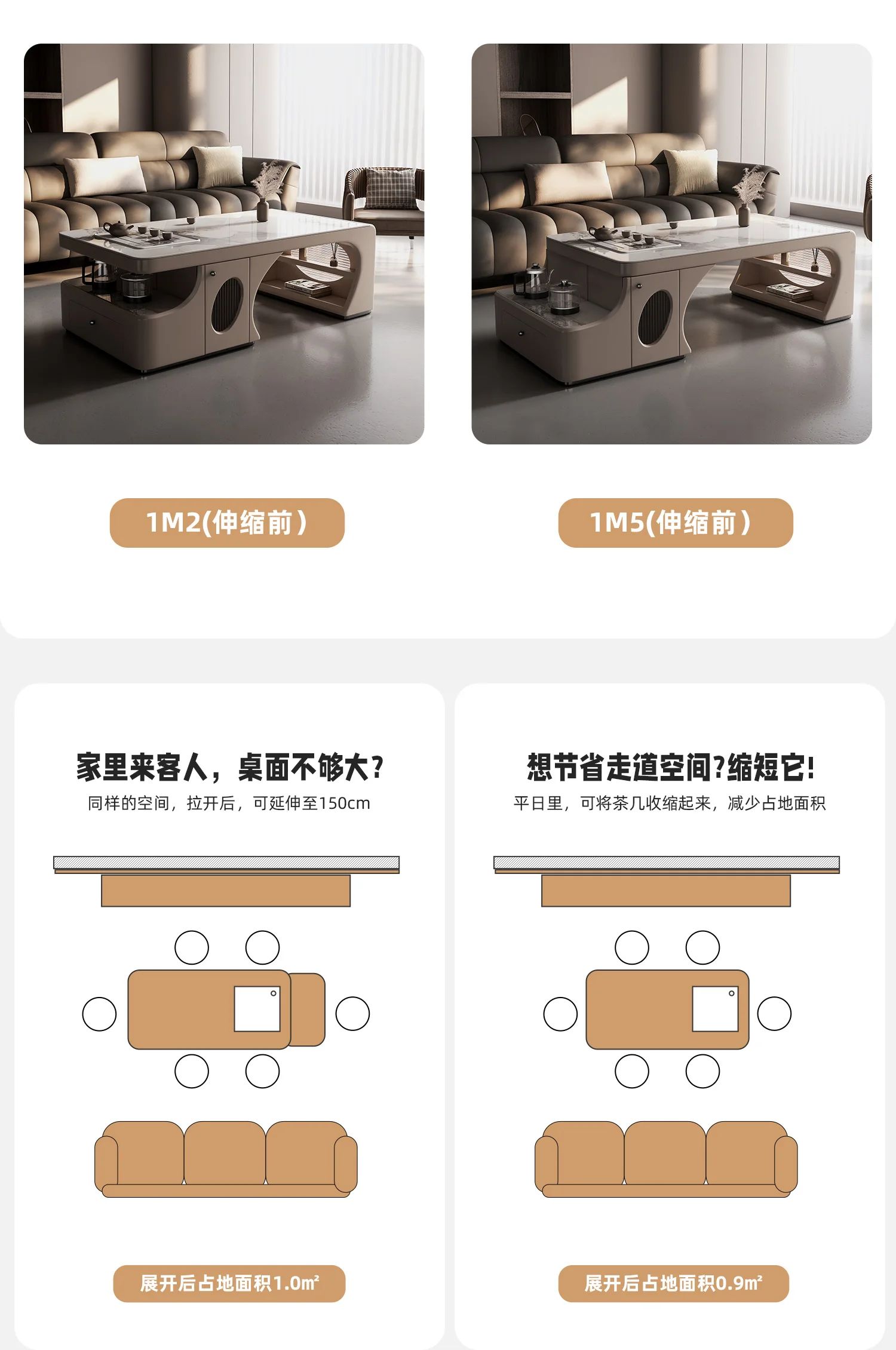 MMOOKA Retractable Kung Fu Tea Table Tea Table Integrated Living Room Tea Making Table