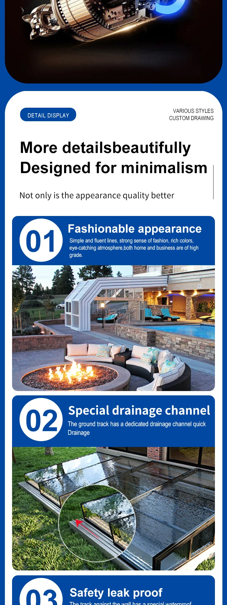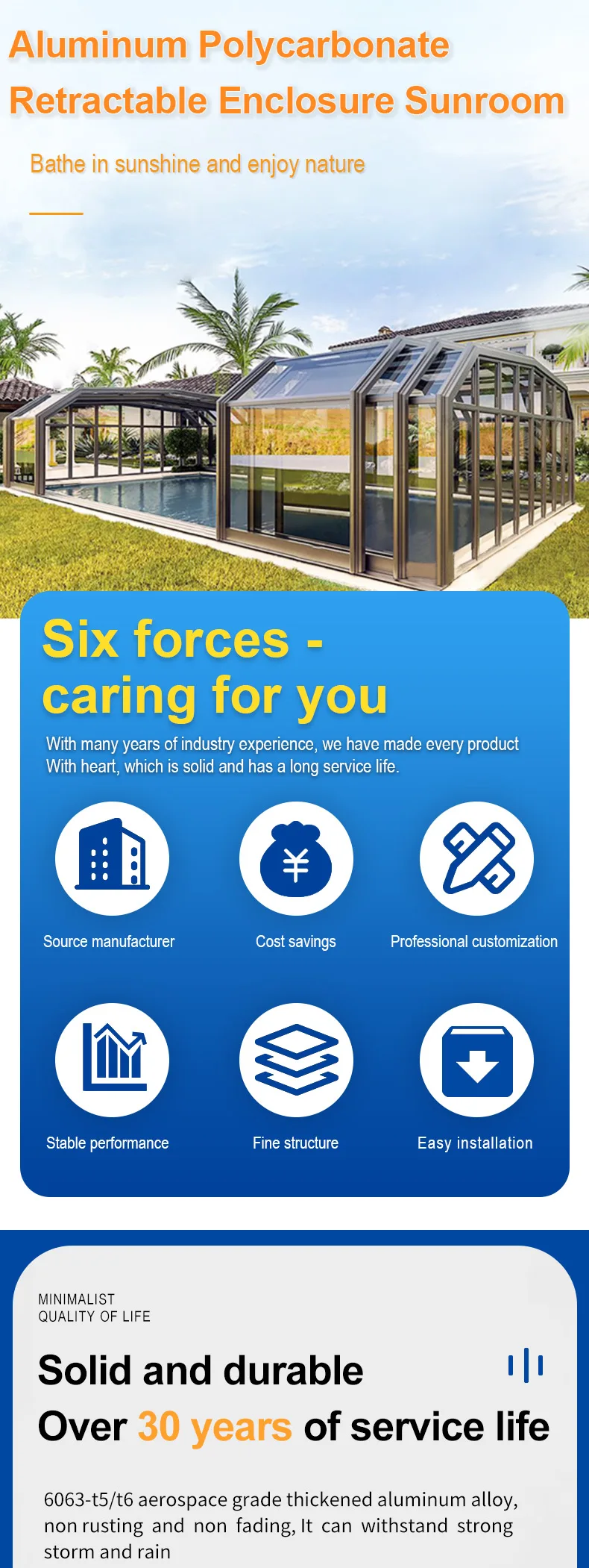 Retractable Roof Above Ground Patio Enclosures Outdoor Swimming Pool Covers Telescopic Customized Sunroom