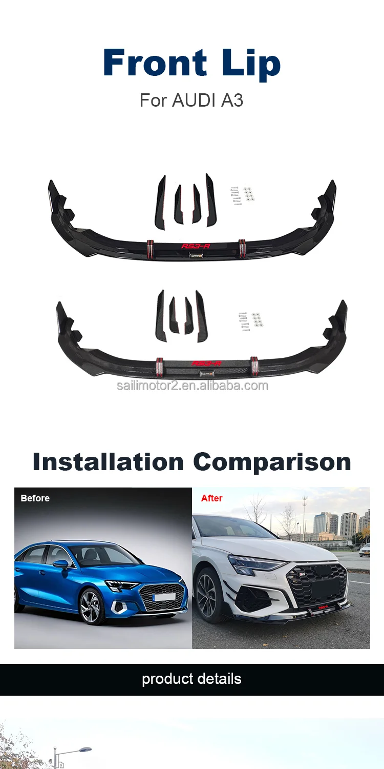 Retrofitted Sports Models All-In-One Special Three Compartments Front Bumper Lip For A3 2021-2022