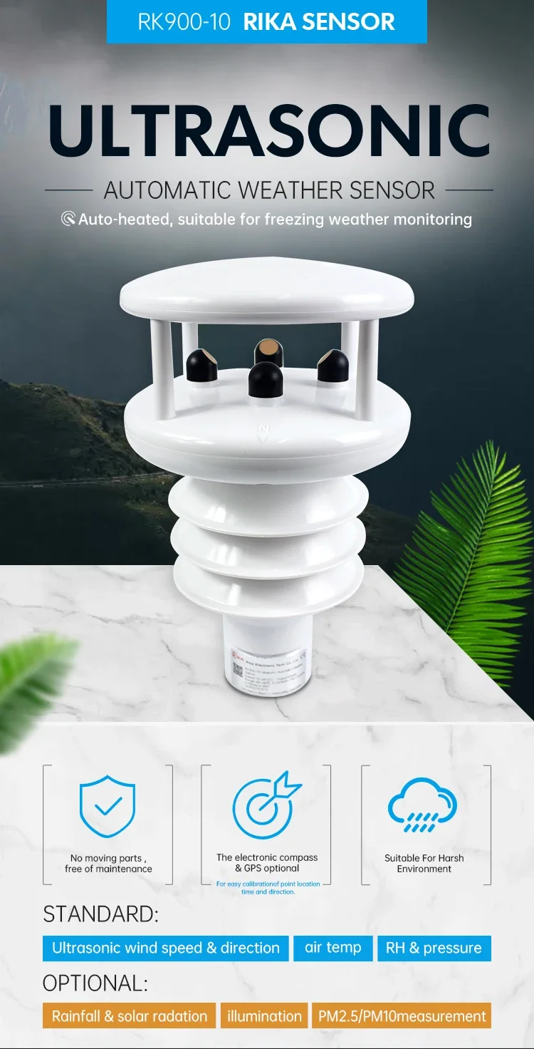 RIKA RK900-10 Integrated Wireless Ultrasonic Automatic Weather Station with Wind/Ambient Temperature Humidity/Solar/Rain