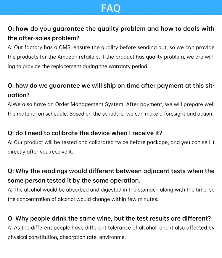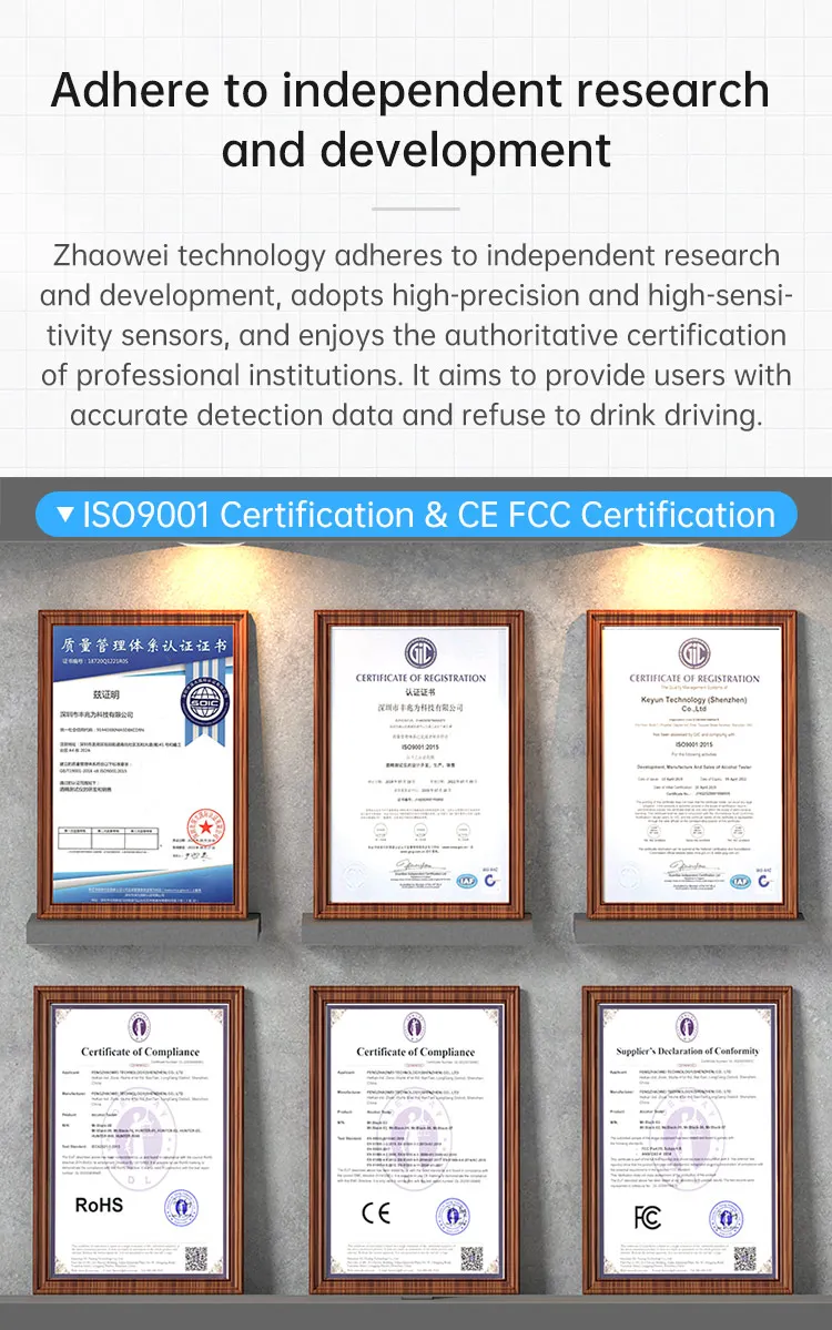 Our breathalyzer has undergone rigorous testing and also got the F-D-A/CE/FCC/RoHS approved.