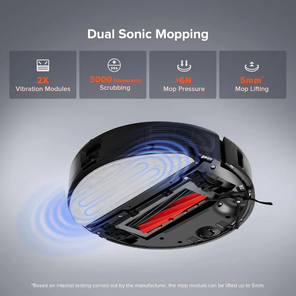 Upgraded VibraRise 2.0 Mopping System. The VibraRise 2.0 improves its vibration module from 1 area to 2 areas, providing a wider mopping zone, up to 3000 times/min high-speed scrubbing, and over 6N consistent mopping pressure, stains from soda to dried-on spills and more can be cleaned deeply and more effectively.