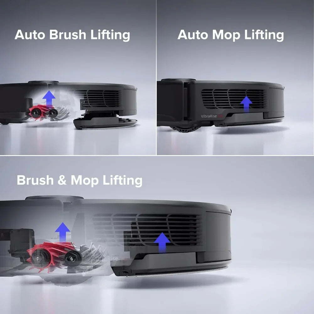 Liftable Brushes and Mop Offer You More. The liftable brushes and mop can separate vacuuming and mopping in a single clean, maximizes the cleaning effectiveness for different tasks such as carpets cleaning and hard floor cleaning, and avoids leaving stains after a clean. If an entrapping threshold is set in the app, the brushes and mop will both lift automatically and help the robot climb it more easily.