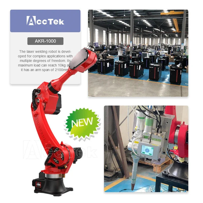 AccTek robot arm is a six axis robot for complex applications with multiple degrees of freedom. It has a 2100mm long arm span and a maximum load of 10kg. With six degrees of flexibility, it can handle scenarios such as welding, loading and unloading, and assembling.