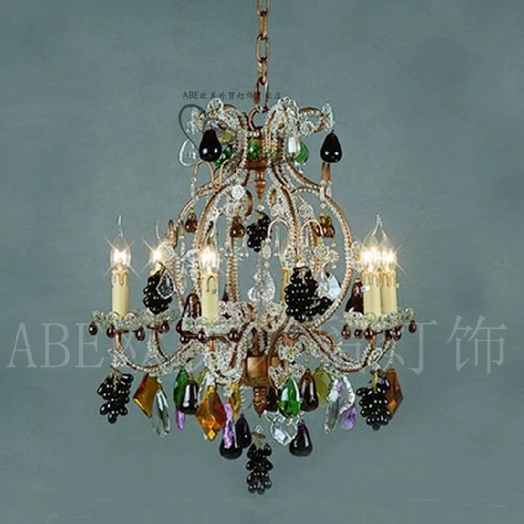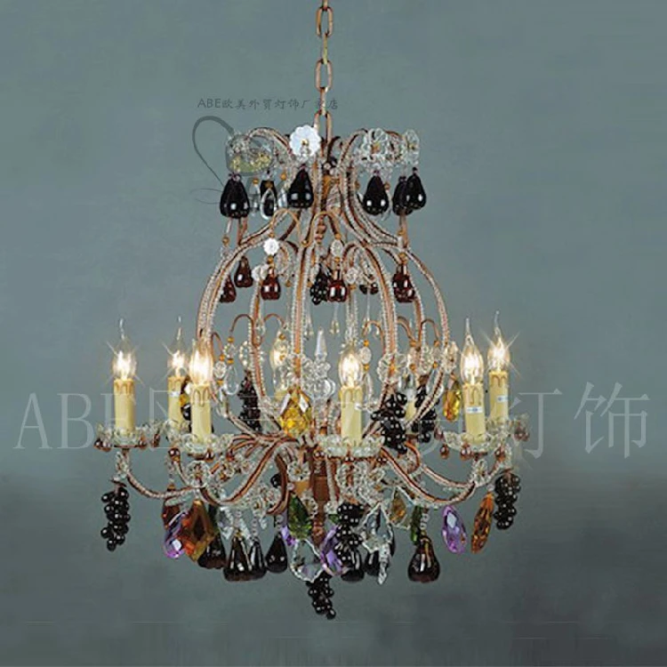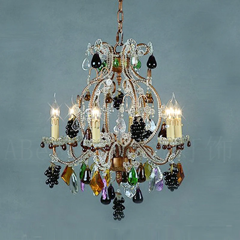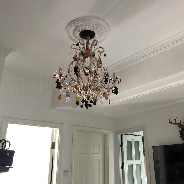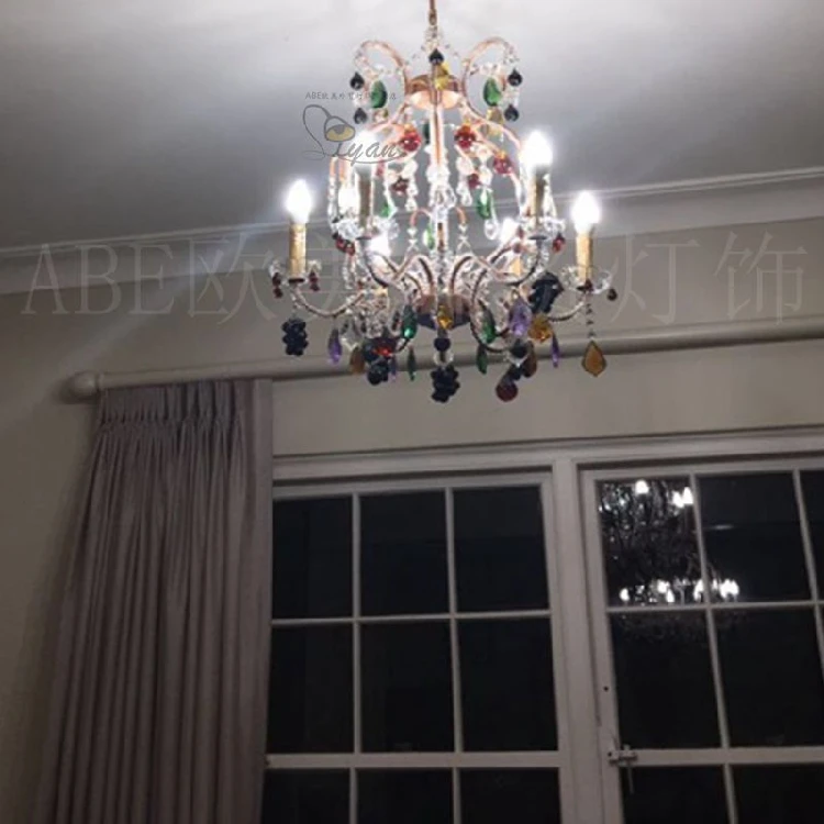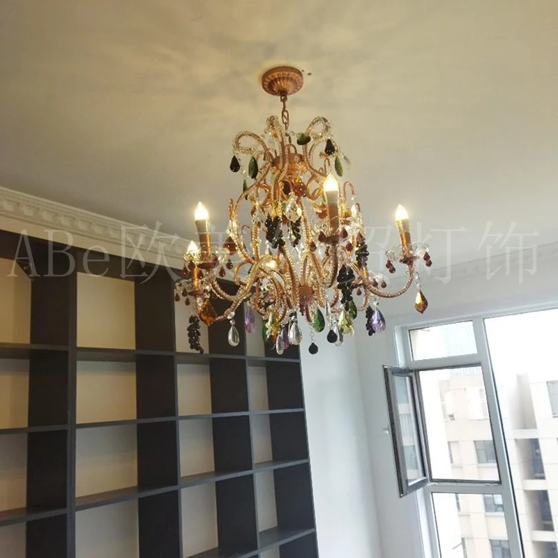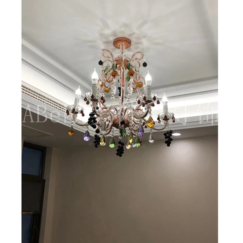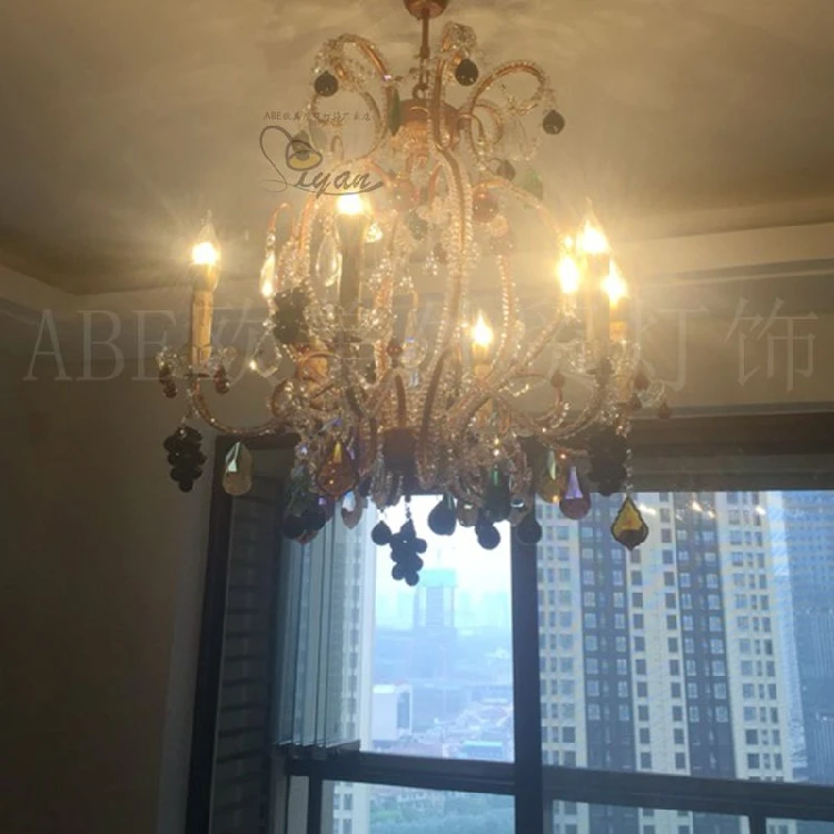 Romantic Color Crystal Chandelier Art European French Duplex Villa Living Room