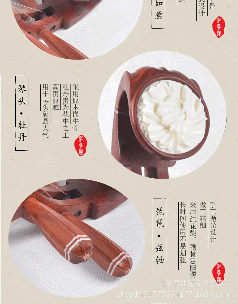 This selection of naturally dried Burmese imported mascarpian wood, hand-carved peony head flowers, beautiful and generous; Fujian Minnan bamboo products, professional piano master row, thousand-foot card position; handrails for Fujian Minnan bamboo polishing production, sound stability;