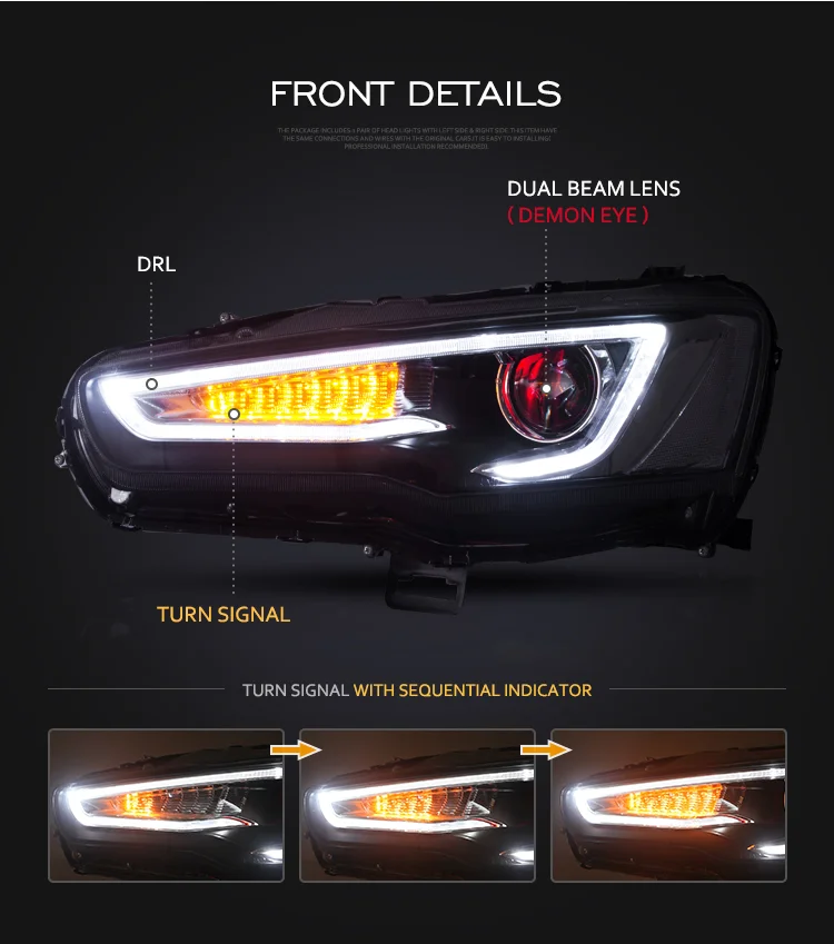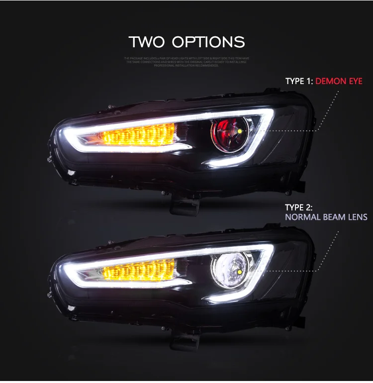 RTS LED Headlights For Mitsubishi Lancer EVO 2008-UP Dual Beam Headlights Assembly with Sequential Turn Signals For Lancer