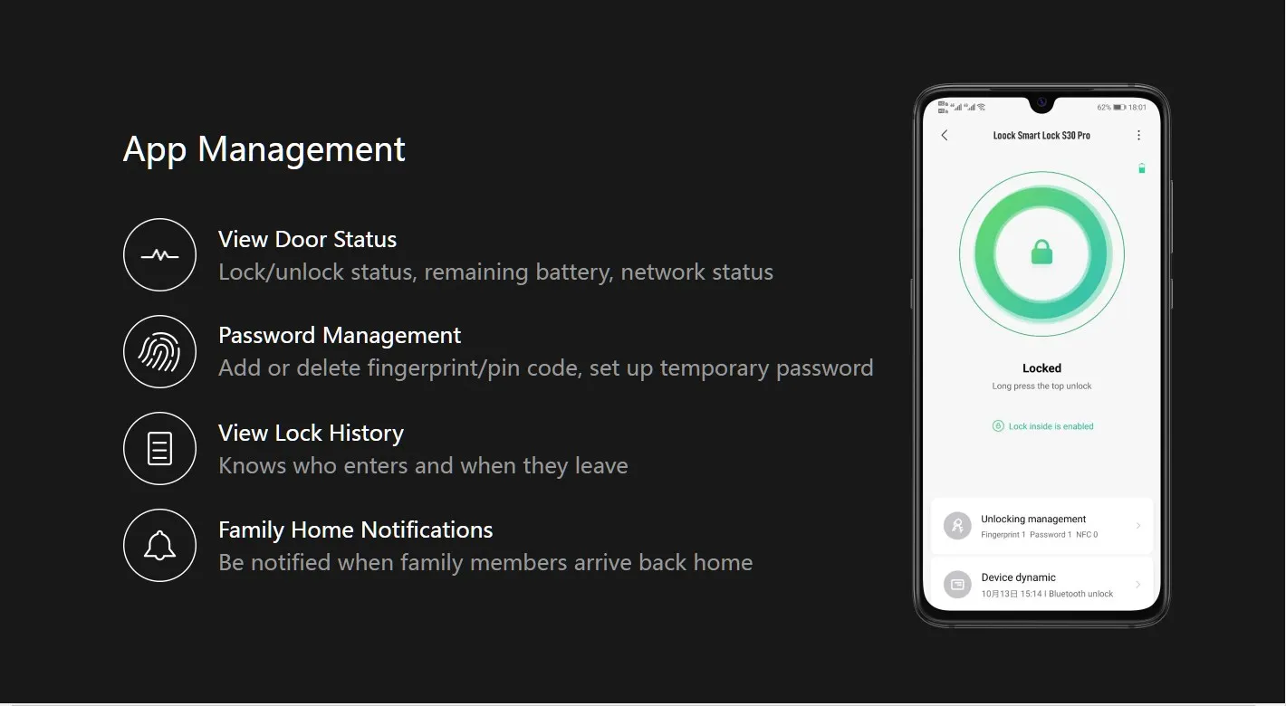 Unlock ways : Fingerprint/PIN code/NFC card/