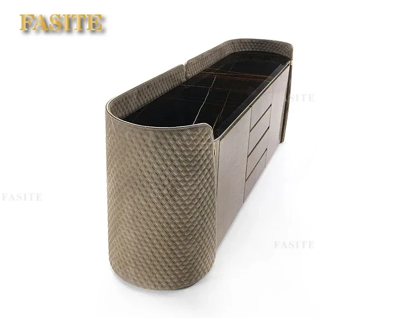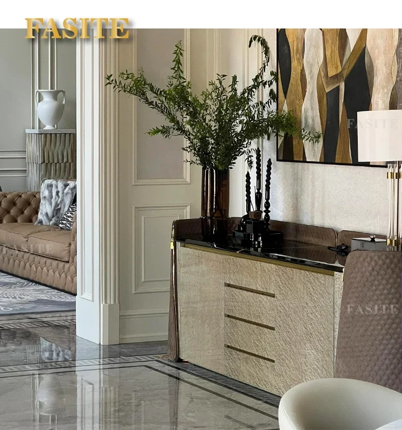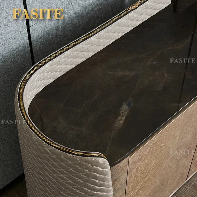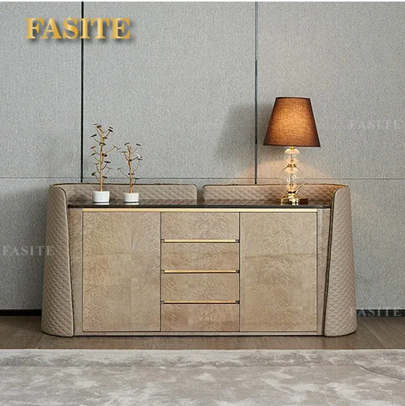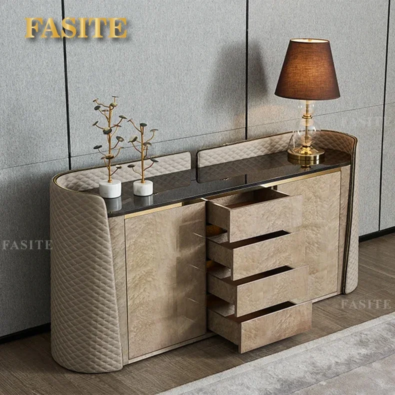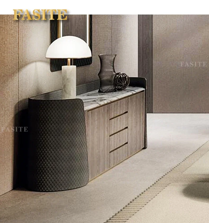 Sala da pranzo in marmo minimalista italiano, armadio d'ingresso in legno massello di lusso leggero, armadio foyer con