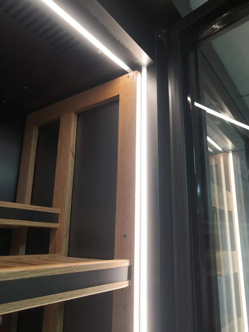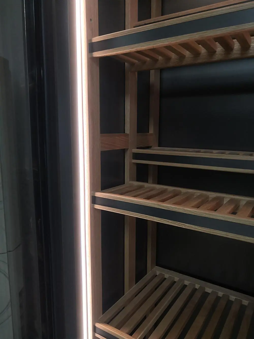 This LED line used Dotless Led Strip, 3000K. Very bright and luxurious. LED line can surround the entire wine cellar.