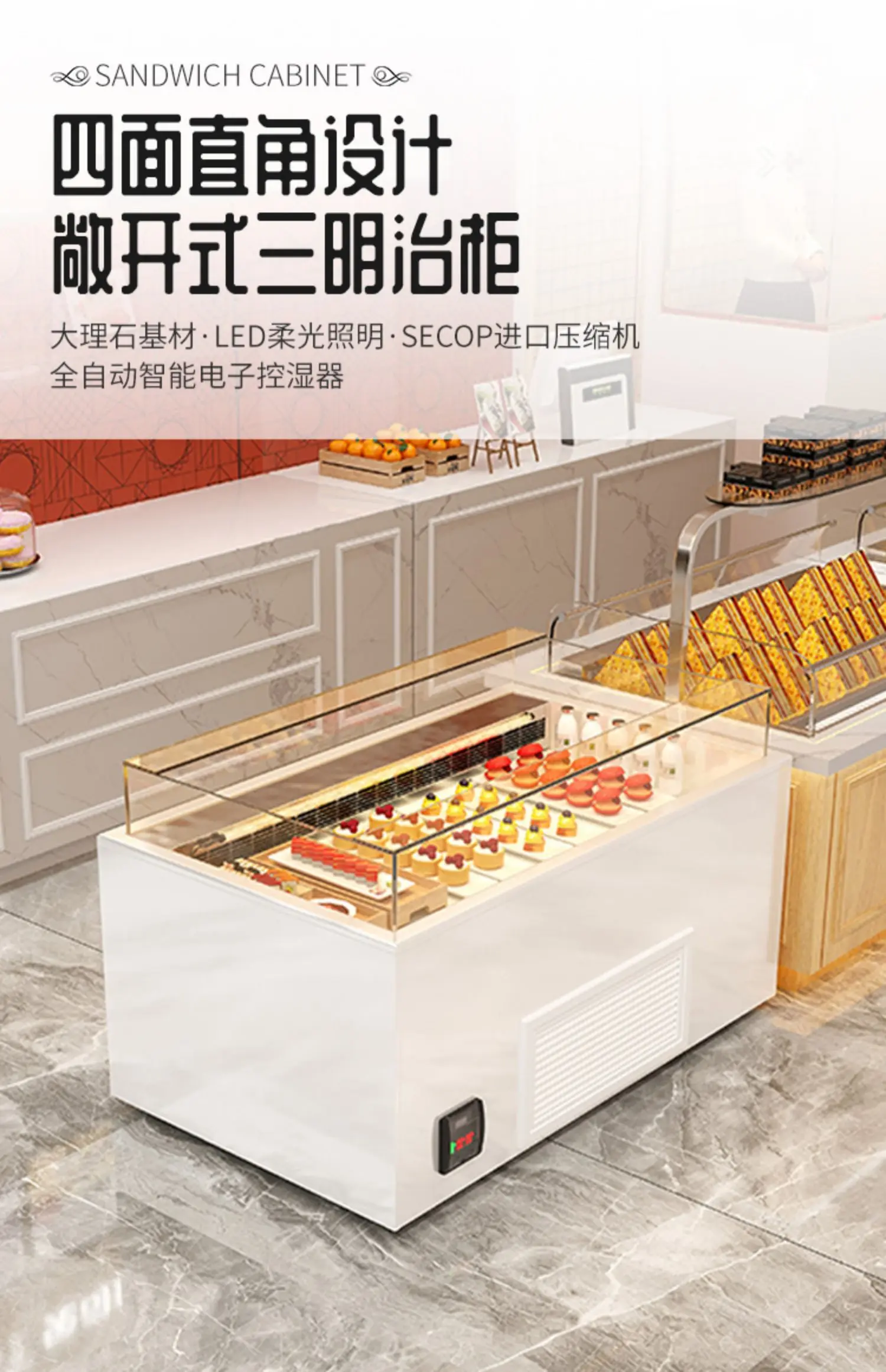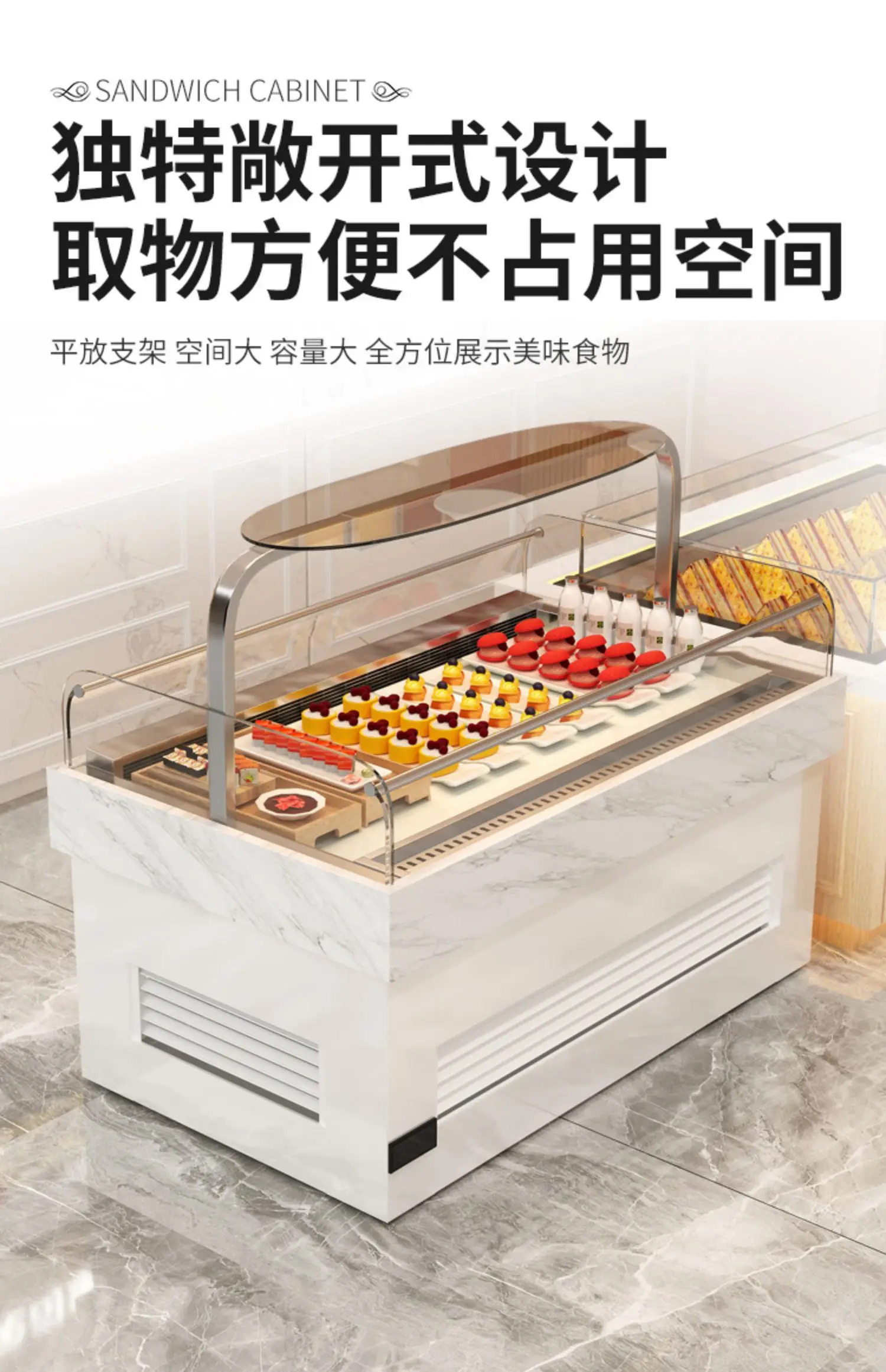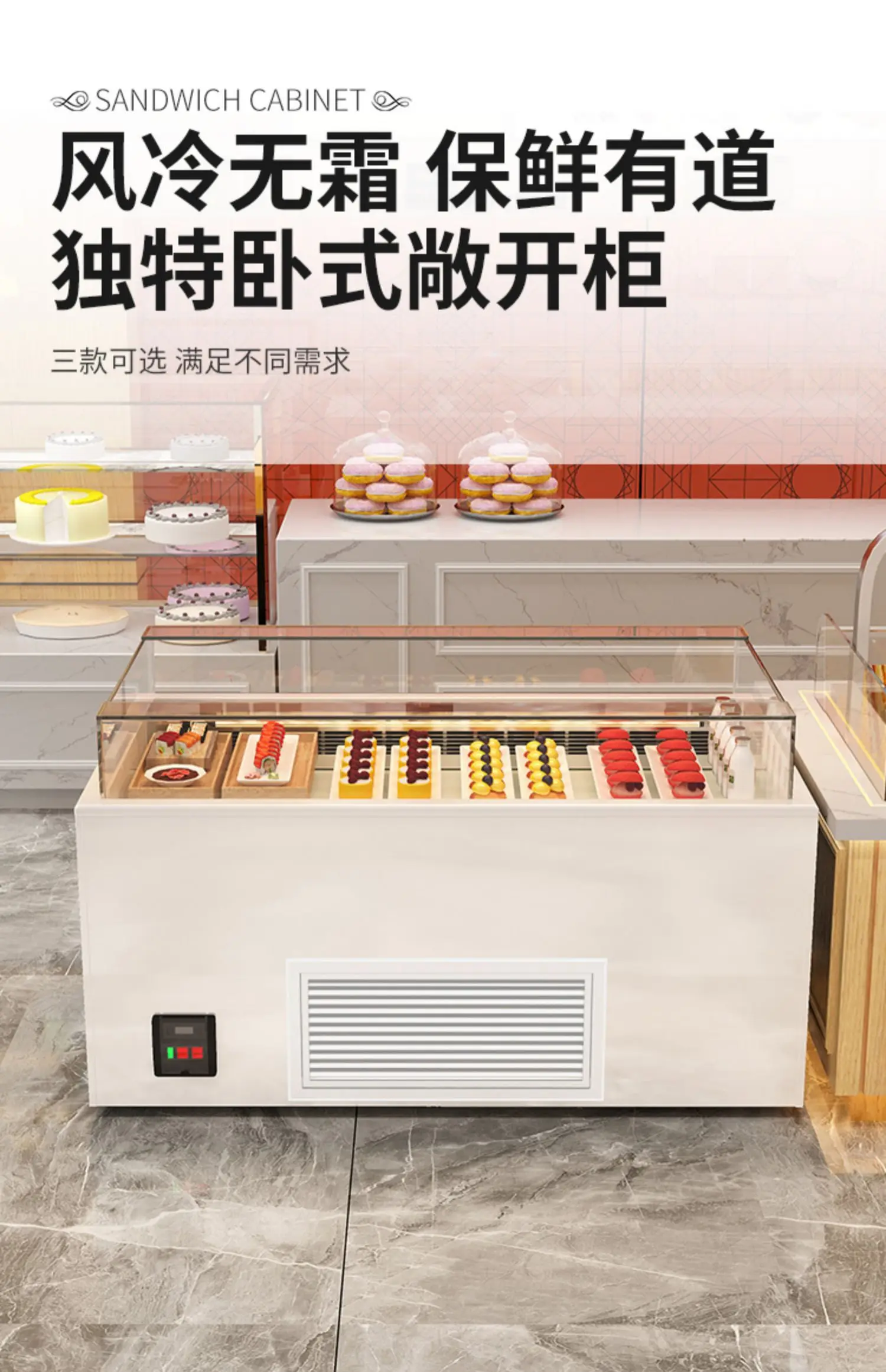 Sandwich cabinet, horizontal cake, dessert, refrigerated display island cabinet, fruit and sushi, open storage cabinet