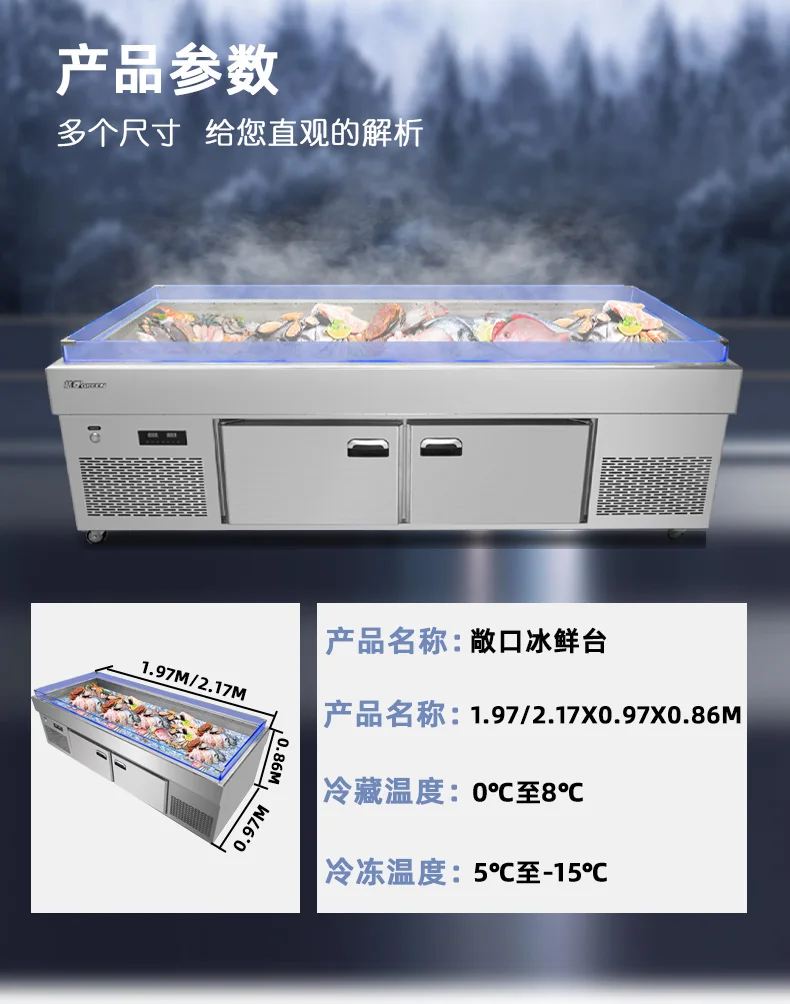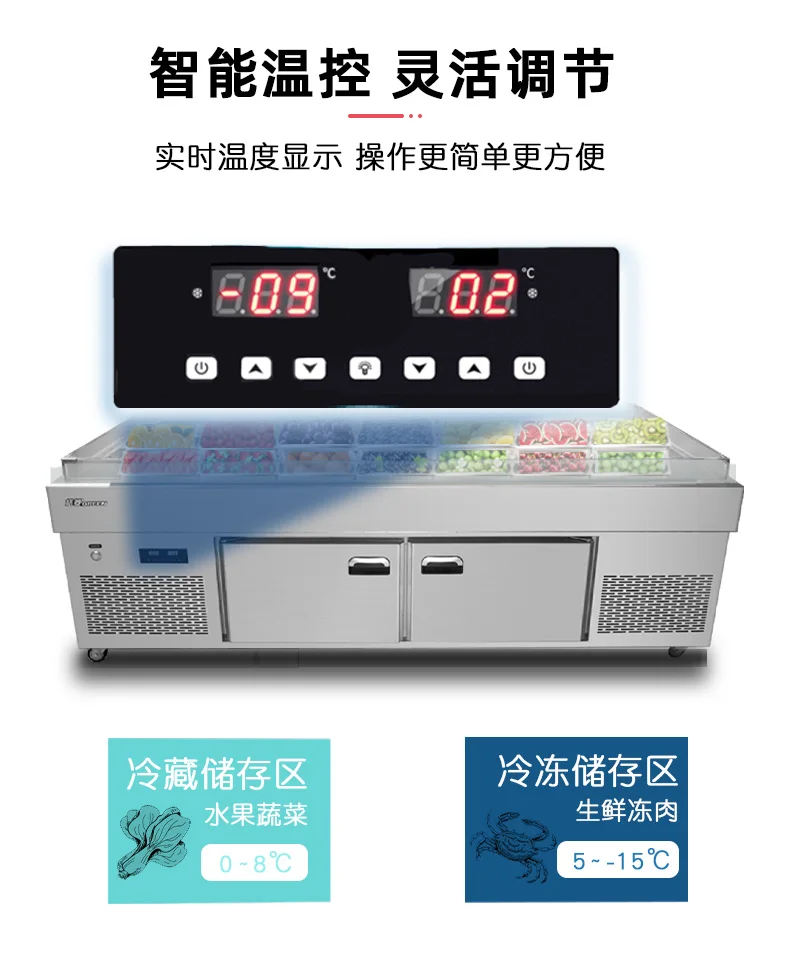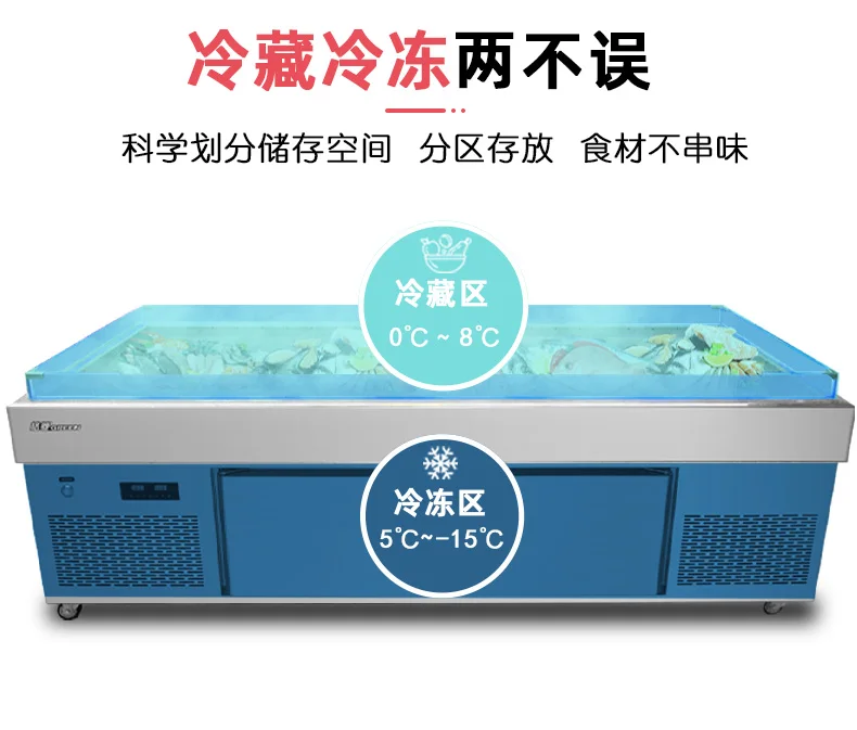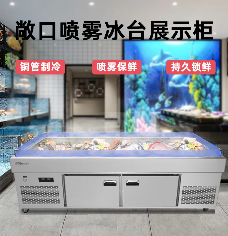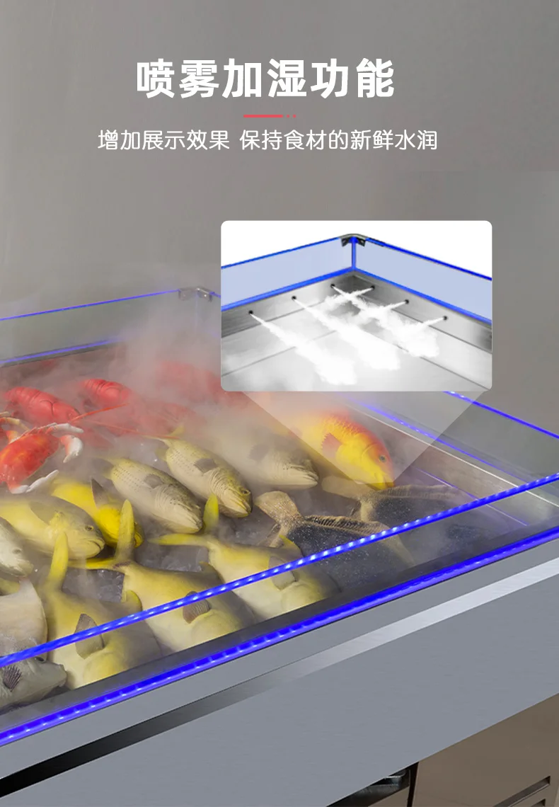 Seafood Ice Table Commercial refrigerated display cabinet Supermarket Hotel Cafeteria Double temperature spray Ice Table