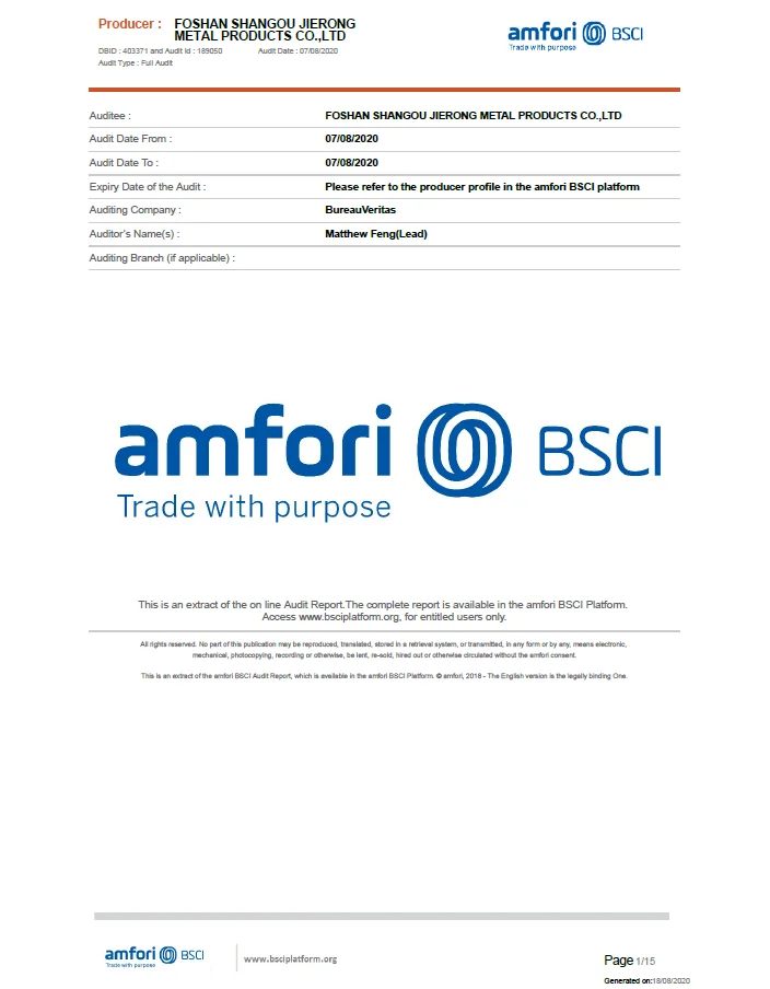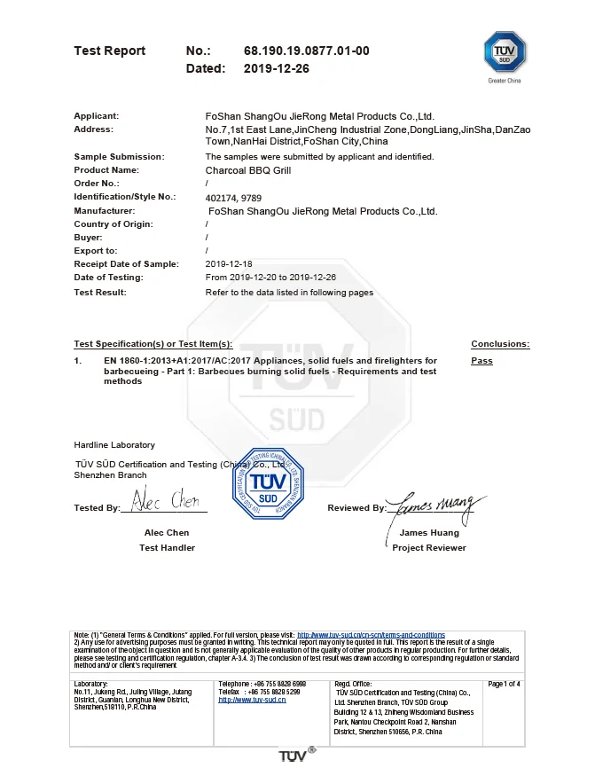 Specializing in producing Charcoal Grill, Smoker Grill, Fire Pit, Pizza Oven and BBQ accessories, etc, we are certified under LFGB(Germany), EN1860(Germany), FSC, RoHS(European) standards and are a BSCI qualified manufacturer.