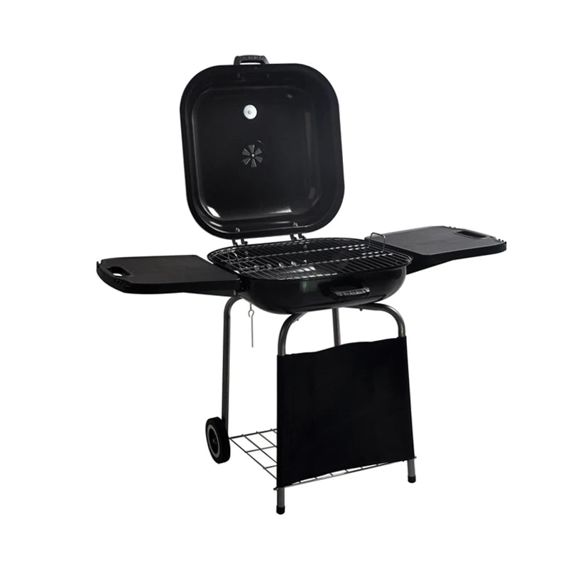 1. Made with a chrome-plated cooking grid and porcelain-coated steel hinged lid |