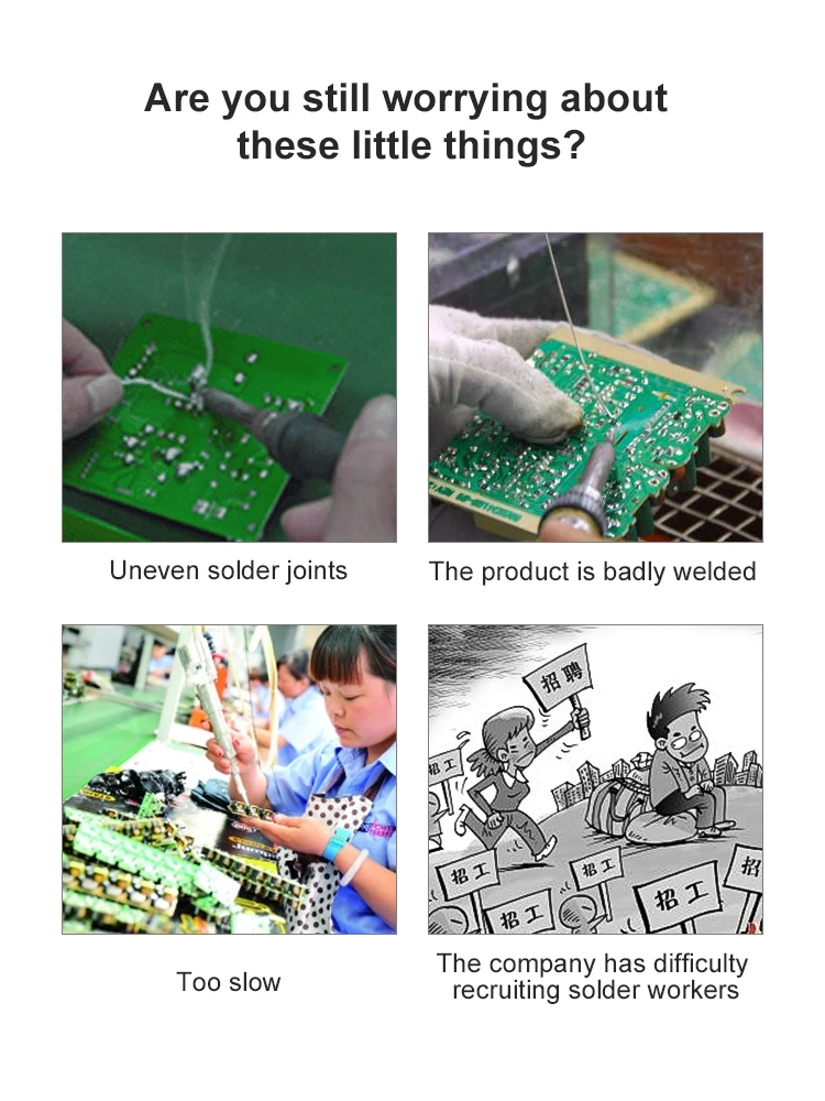 Are you worried because of uneven solder joints, poorly soldered products, too slow soldering efficiency, and inability to find a solderer?