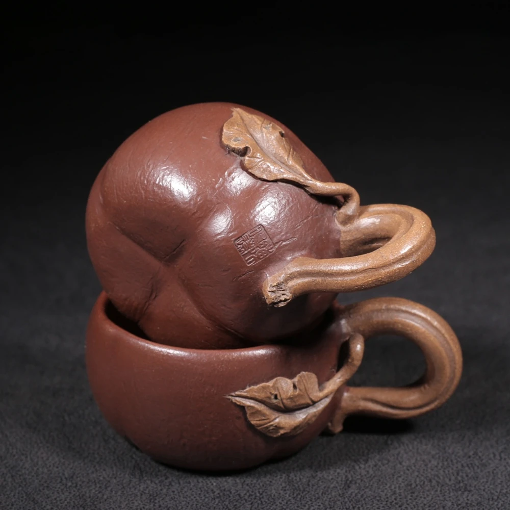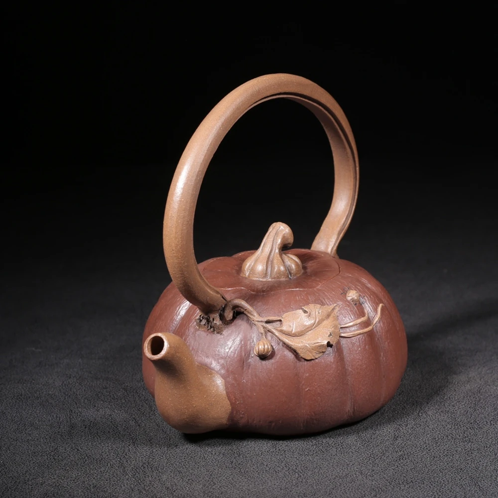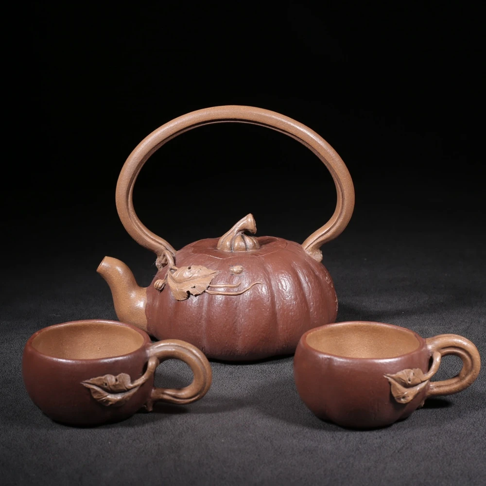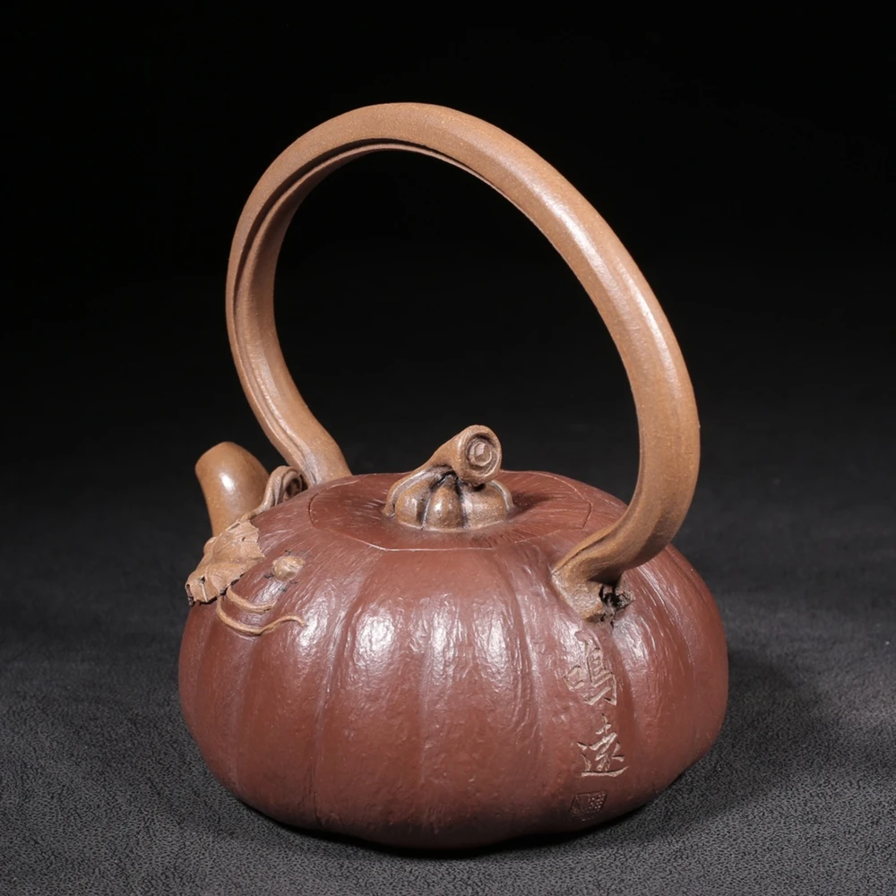 Set Chinese Yixing Zisha Clay Teapot Pumpkin lifting beam Pot Chen Mingyuan 260ml