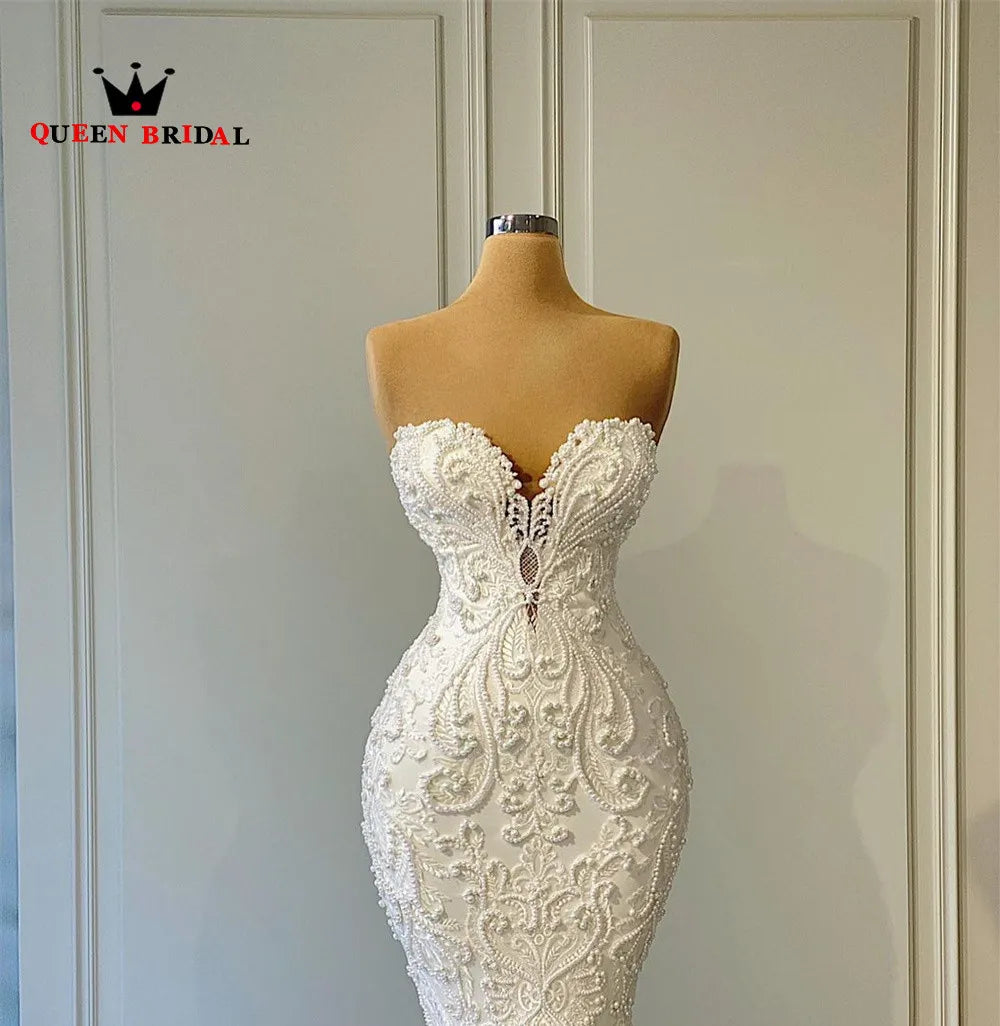 Sexy Wedding Dresses Mermaid Sweetheart Ruffle Train Tulle Lace Crystal Beaded Diamonds Luxurious Bridal Gown Custom Size DX24